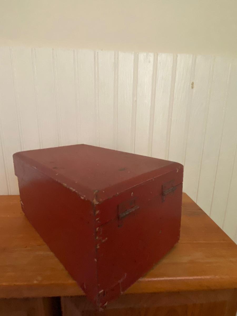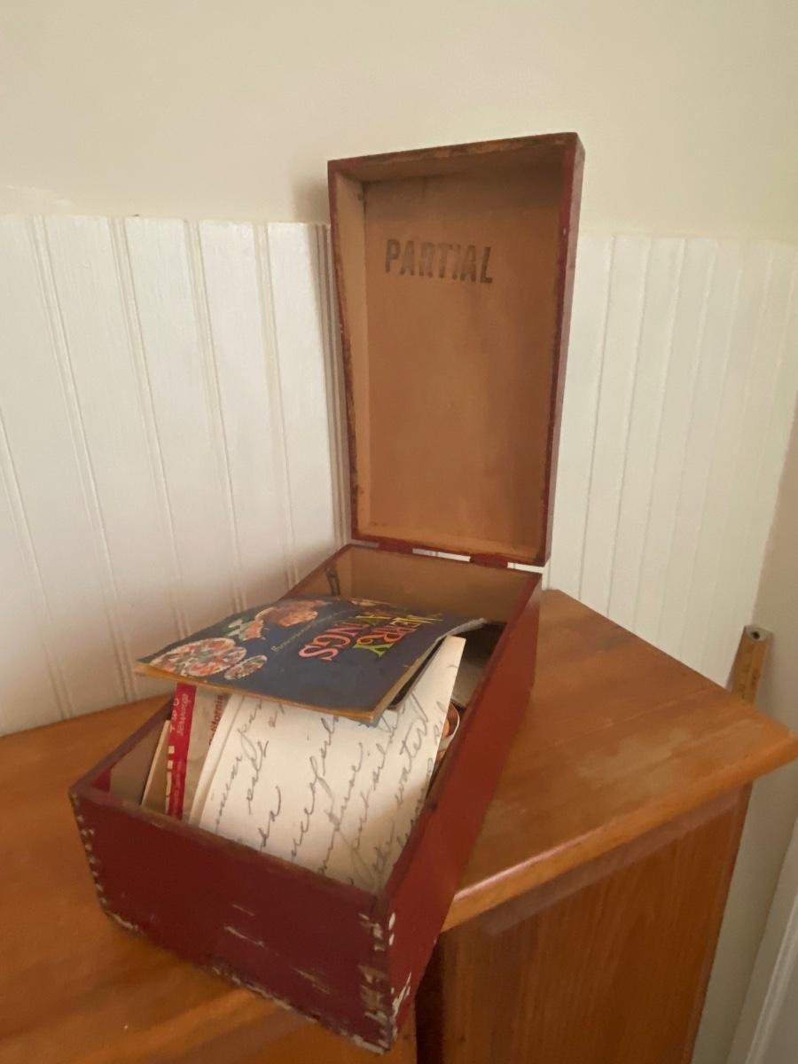 LOT 28G: Primitive Style Storage Cabinet, Recipe Box, Pitcher and more