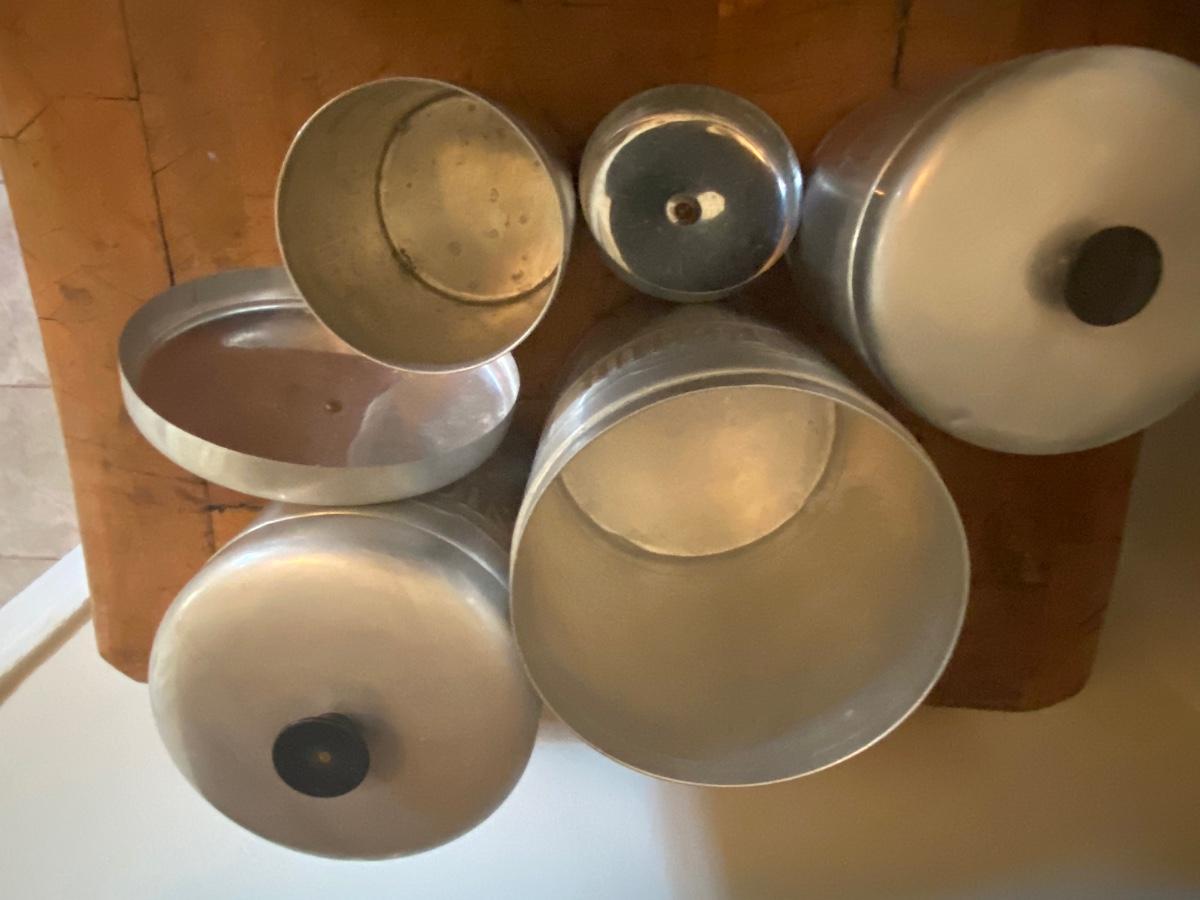 Set of 4 vintage Canisters. Made in Italy. Please see all pictures as they are the best representation of the items. The pictures show condition, measurements if taken, and what is included in the lot. Due to the large amount that we photograph and the time frame, we are not always able to take measurements. All items unless noted, are pre-owned and have been used. If you purchased furniture, you must bring help. We do not allow one person to carry large furniture out on their own. Bring help, tools and a truck for the safety of our client’s homes, and your personal safety. Any damages that result to the property including walls, and floors due to moving of the furniture will be charged to the buyer. Company policy. Thank you.