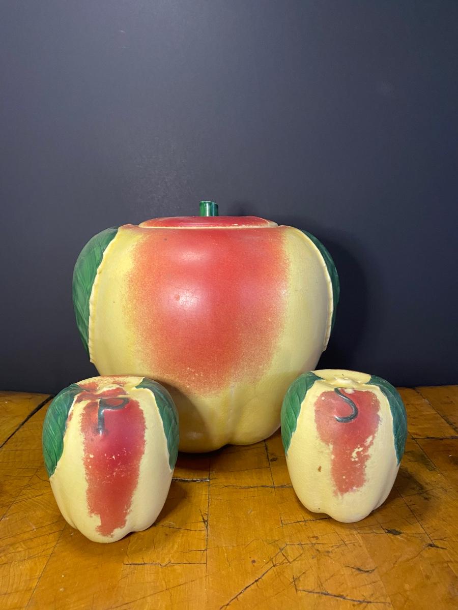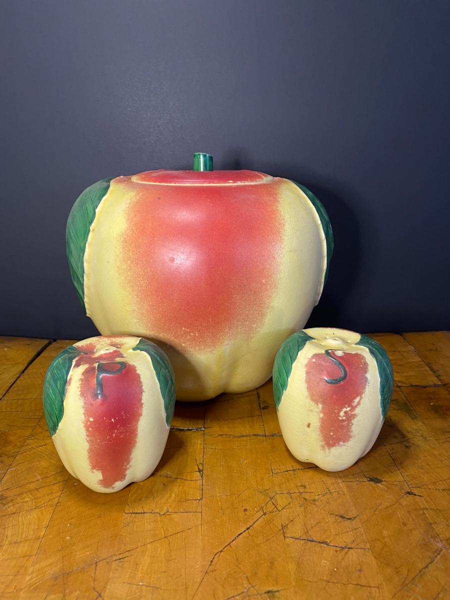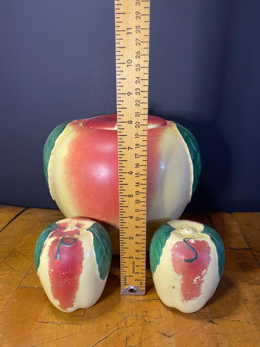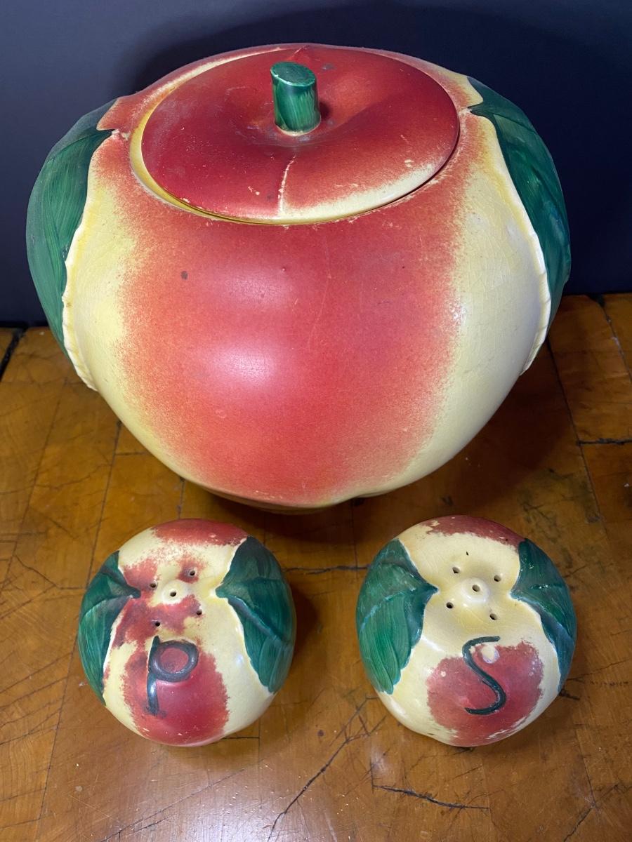 Vintage cookie jar and matching salt and pepper shakers. Please see all pictures as they are the best representation of the items. The pictures show condition, measurements if taken, and what is included in the lot. Due to the large amount that we photograph and the time frame, we are not always able to take measurements. All items unless noted, are pre-owned and have been used. If you purchased furniture, you must bring help. We do not allow one person to carry large furniture out on their own. Bring help, tools and a truck for the safety of our client’s homes, and your personal safety. Any damages that result to the property including walls, and floors due to moving of the furniture will be charged to the buyer. Company policy. Thank you.