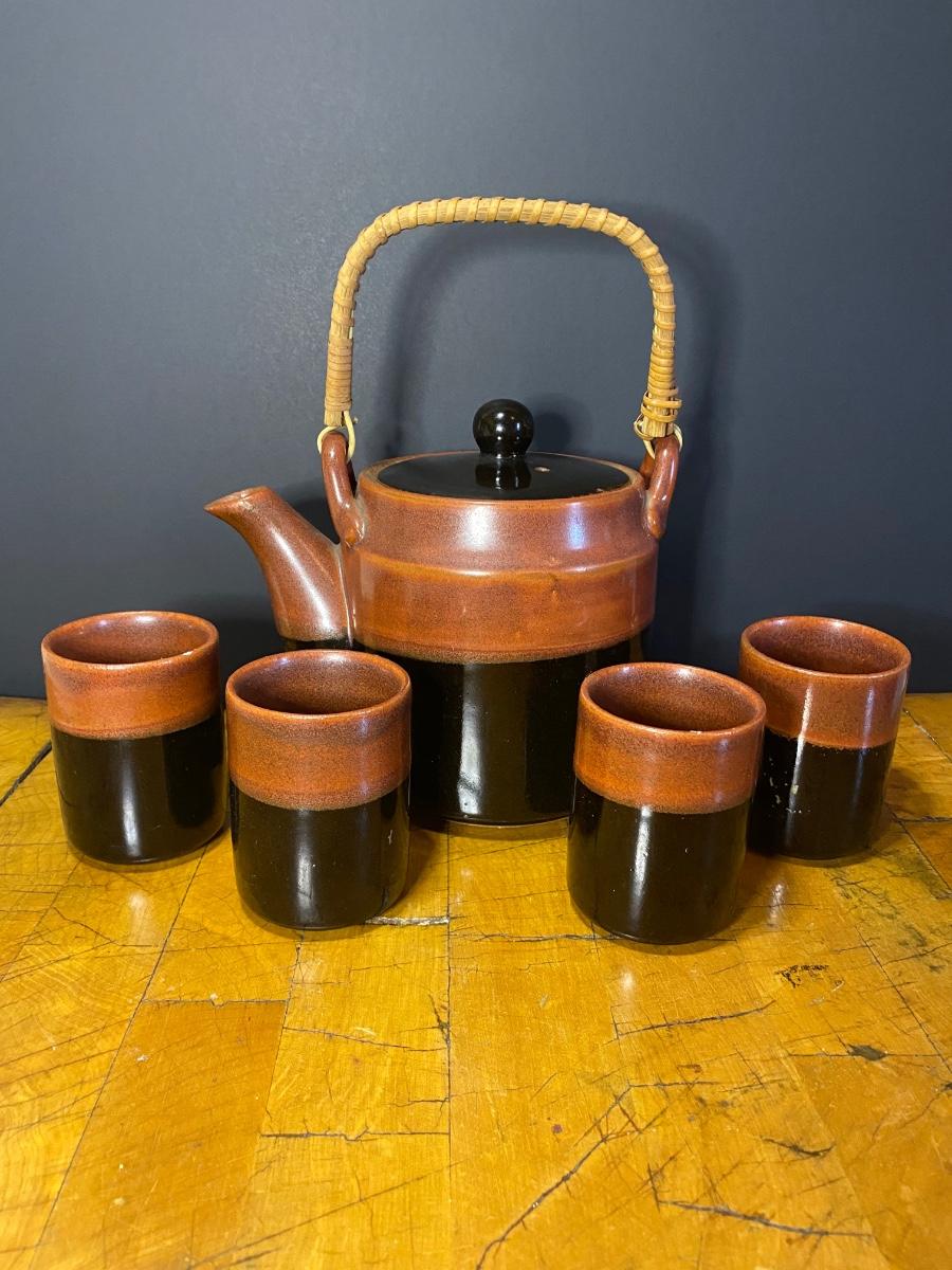 LOT: 36G: Vintage Made In Japan Pottery Teapot & Tea Cups