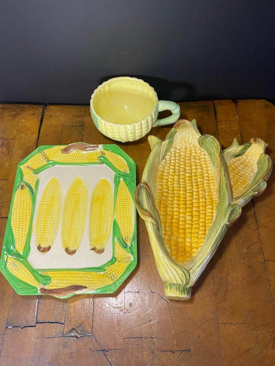 Three pieces of vintage corn plates and cup. Please see all pictures as they are the best representation of the items. The pictures show condition, measurements if taken, and what is included in the lot. Due to the large amount that we photograph and the time frame, we are not always able to take measurements. All items unless noted, are pre-owned and have been used. If you purchased furniture, you must bring help. We do not allow one person to carry large furniture out on their own. Bring help, tools and a truck for the safety of our client’s homes, and your personal safety. Any damages that result to the property including walls, and floors due to moving of the furniture will be charged to the buyer. Company policy. Thank you.