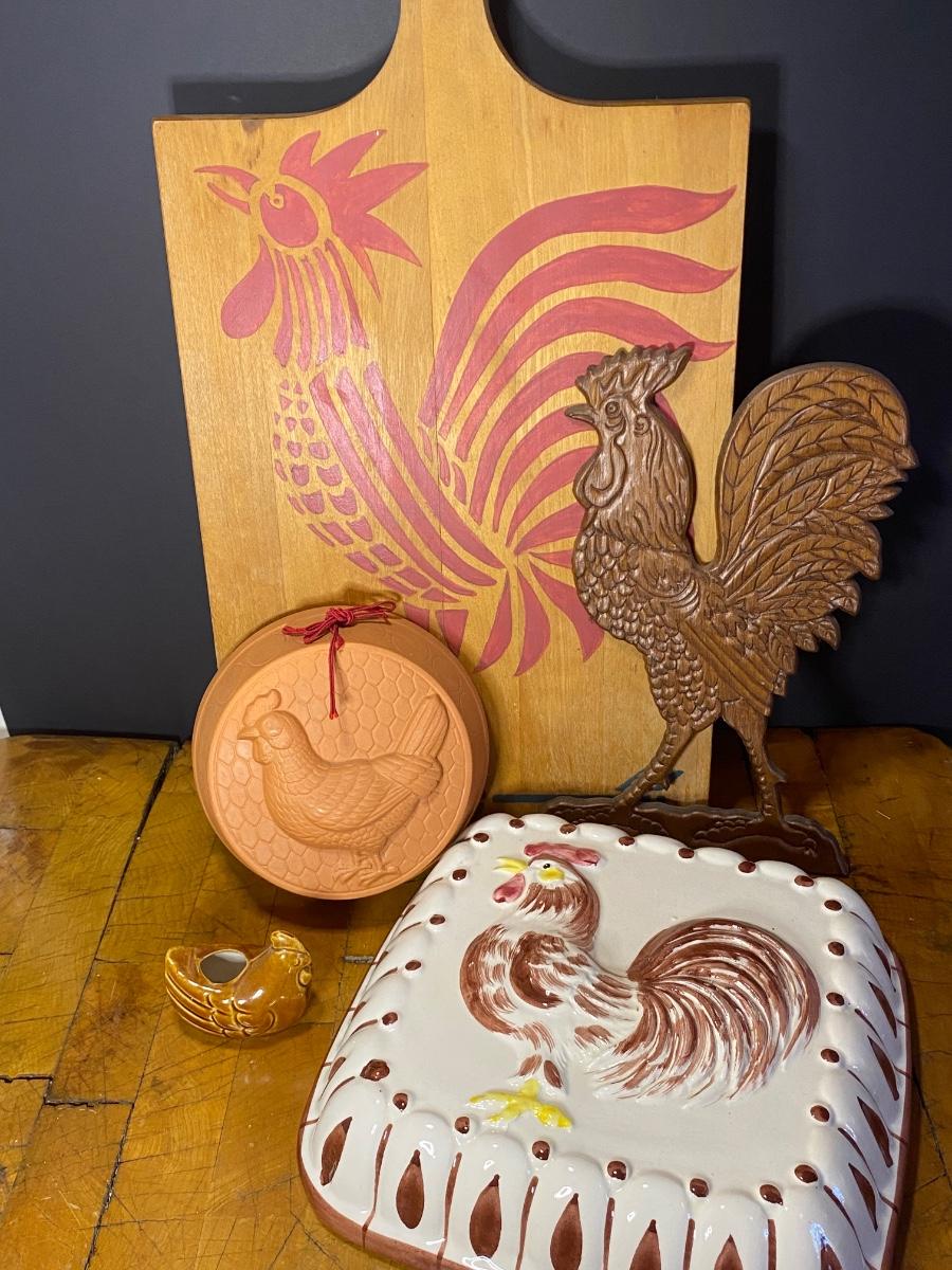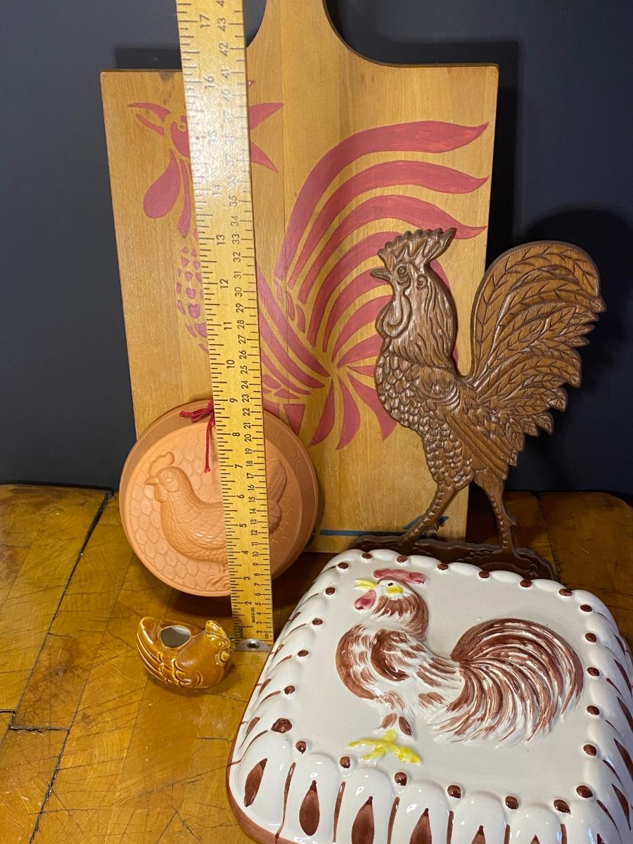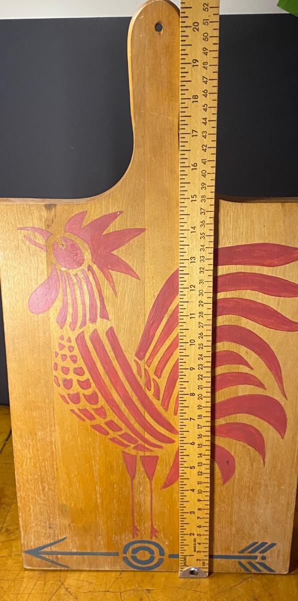 Hand Painted Rooster cutting/knife storage hanging board and kitchen decor. Please see all pictures as they are the best representation of the items. The pictures show condition, measurements if taken, and what is included in the lot. Due to the large amount that we photograph and the time frame, we are not always able to take measurements. All items unless noted, are pre-owned and have been used. If you purchased furniture, you must bring help. We do not allow one person to carry large furniture out on their own. Bring help, tools and a truck for the safety of our client’s homes, and your personal safety. Any damages that result to the property including walls, and floors due to moving of the furniture will be charged to the buyer. Company policy. Thank you.