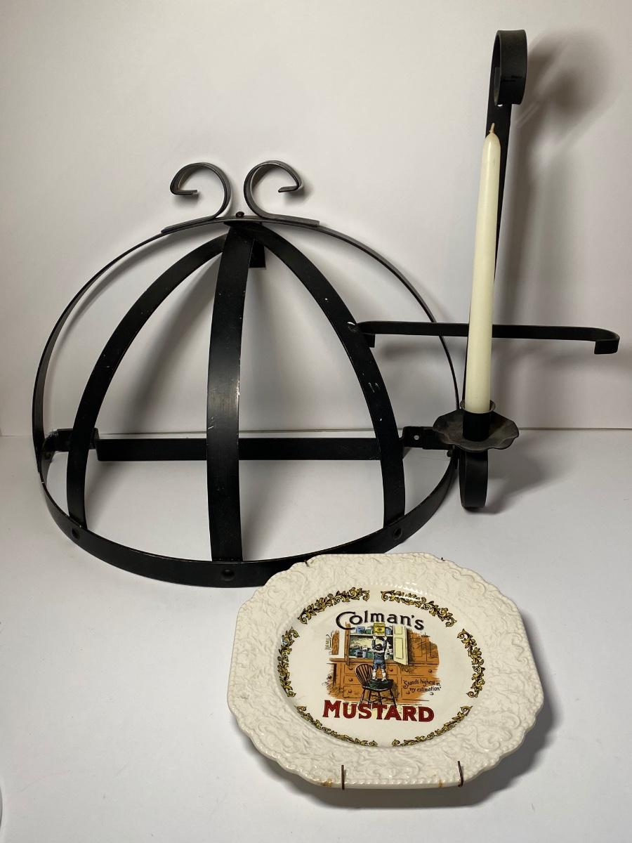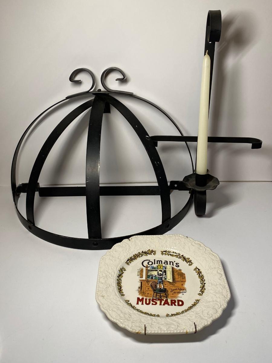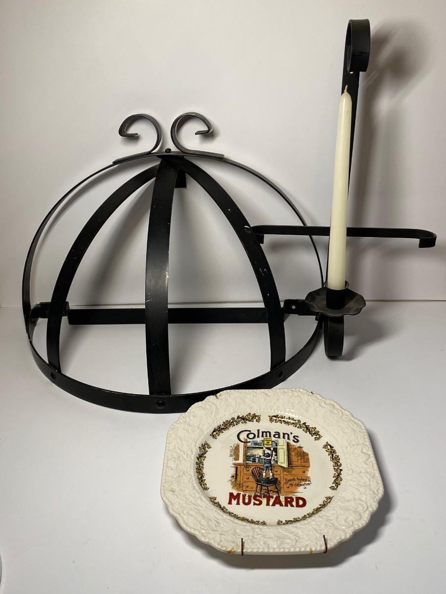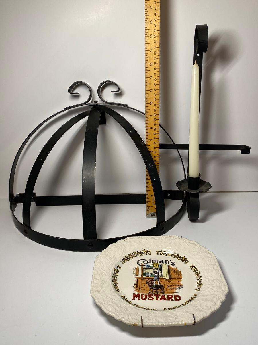 Collection includes metal pot/utensil hanger & wall sconce and with a vintage Lord Nelson Pottery Plate
