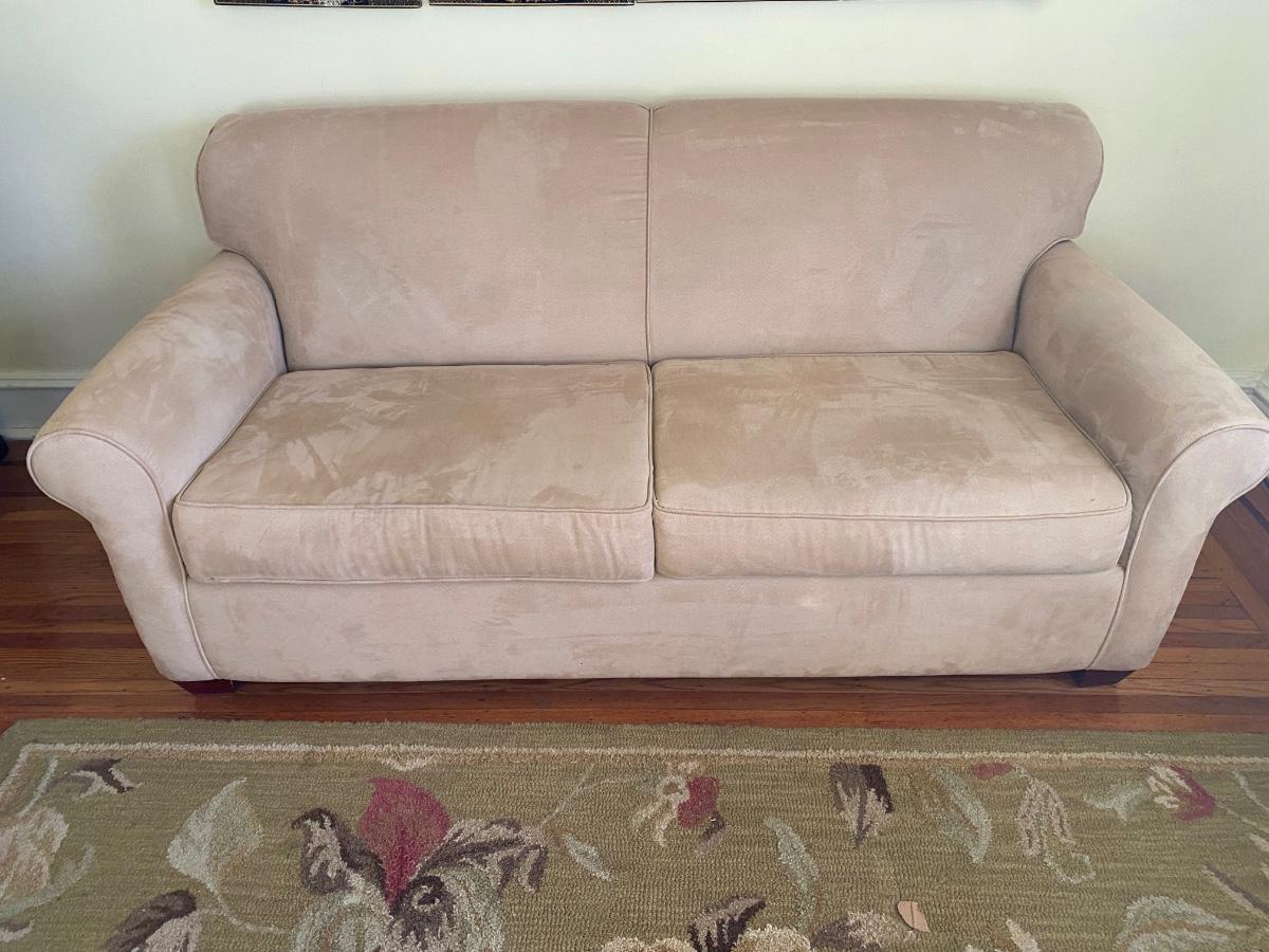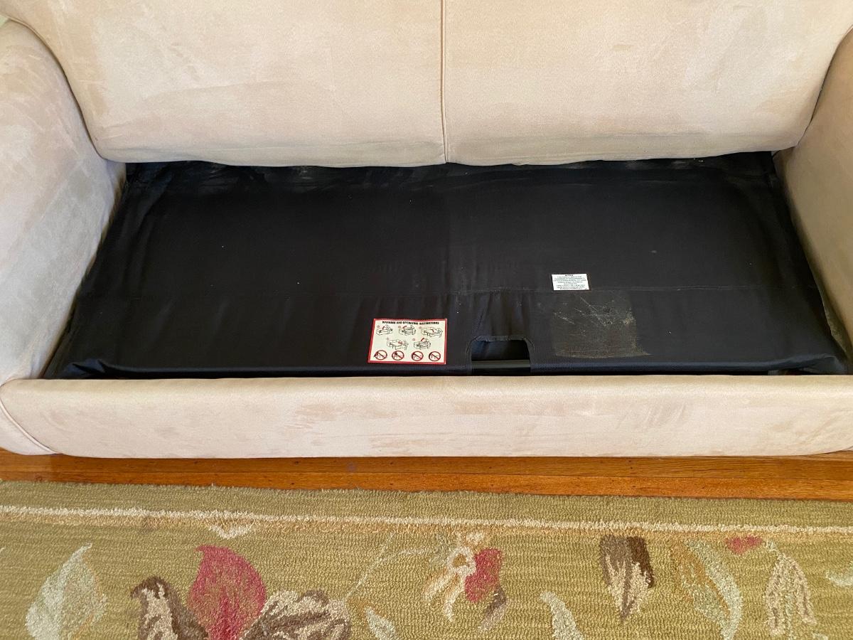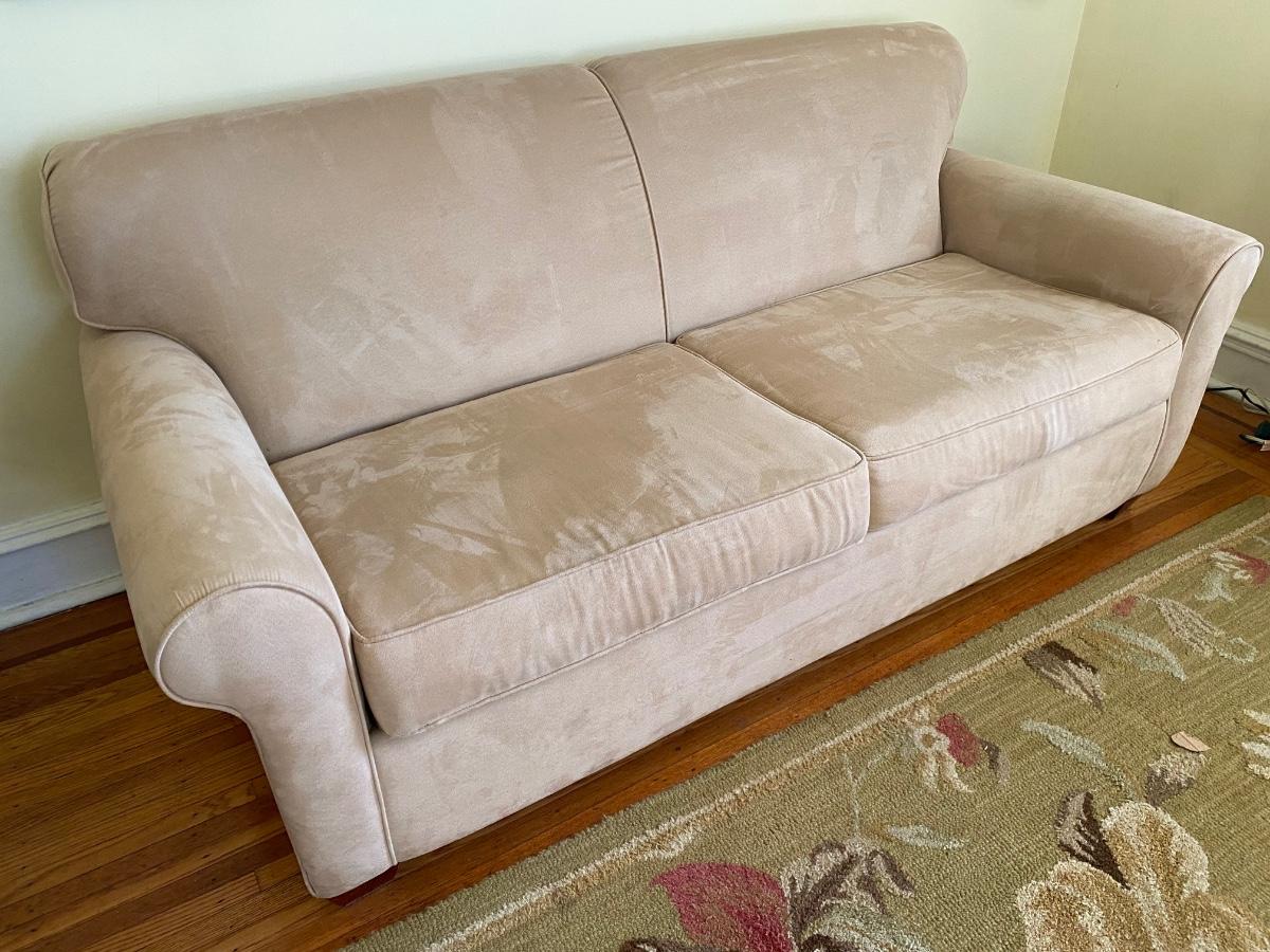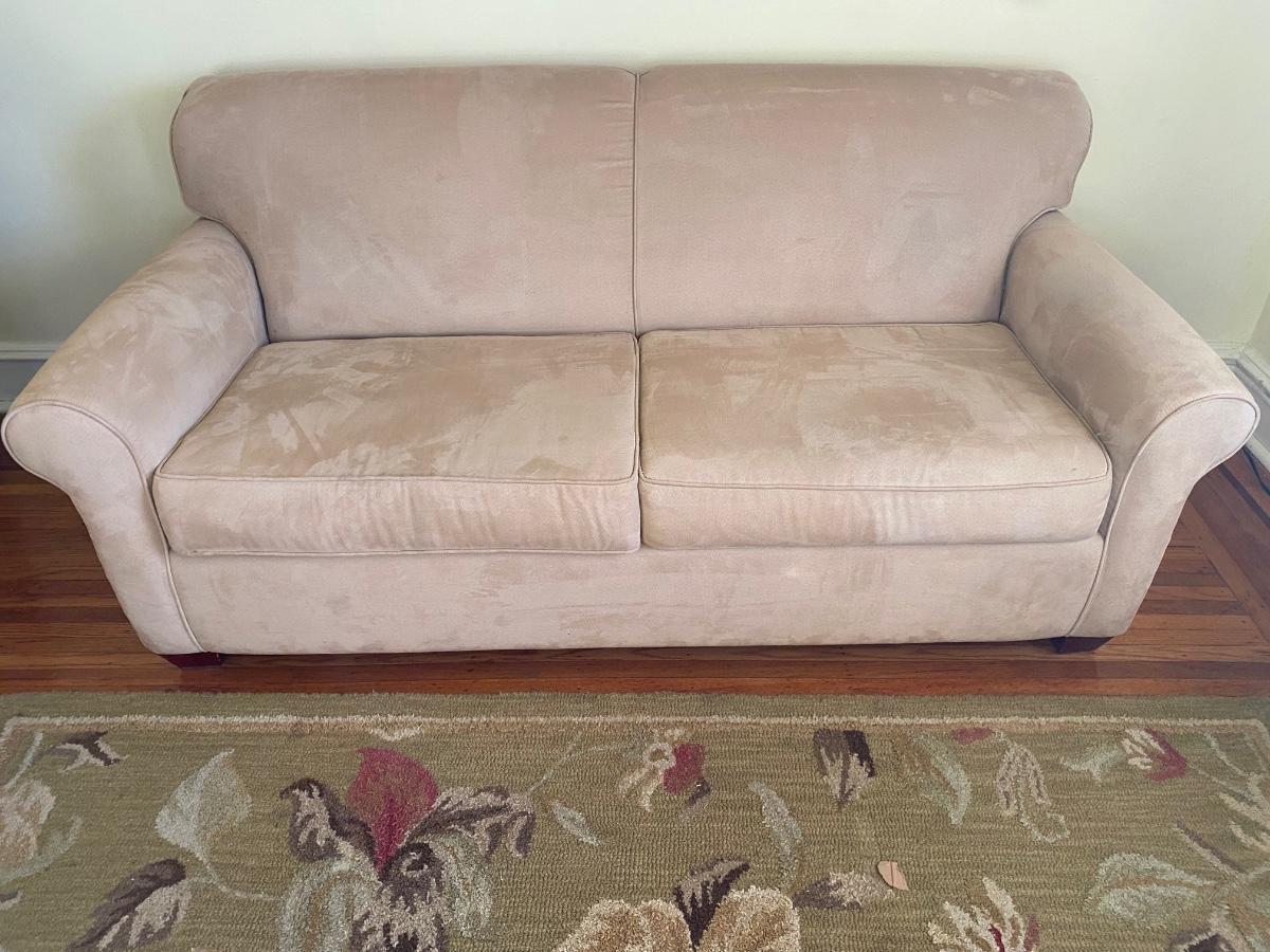 Clean & comfortable sleeper loveseat. This is located on the second floor and you will have to move down a set of stairs. Please bring help to move! Please see all pictures as they are the best representation of the items. The pictures show condition, measurements if taken, and what is included in the lot. Due to the large amount that we photograph and the time frame, we are not always able to take measurements. All items unless noted, are pre-owned and have been used. If you purchased furniture, you must bring help. We do not allow one person to carry large furniture out on their own. Bring help, tools and a truck for the safety of our client’s homes, and your personal safety. Any damages that result to the property including walls, and floors due to moving of the furniture will be charged to the buyer. Company policy. Thank you.