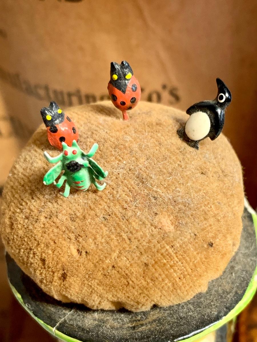 This collection has a lot of treasures including a hand painted figure pin cushion with tiny animal pins, wooden spools, buttons, Needle threader Boyle needle holders etc. Please see all pictures as they are the best representation of the items. The pictures show condition, measurements if taken, and what is included in the lot. Due to the large amount that we photograph and the time frame, we are not always able to take measurements. All items unless noted, are pre-owned and have been used. If you purchased furniture, you must bring help. We do not allow one person to carry large furniture out on their own. Bring help, tools and a truck for the safety of our client’s homes, and your personal safety. Any damages that result to the property including walls, and floors due to moving of the furniture will be charged to the buyer. Company policy. Thank you.