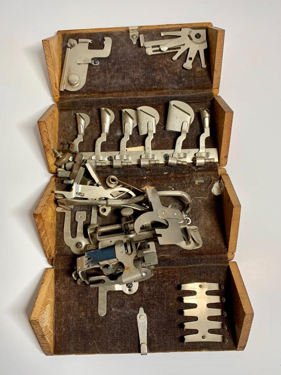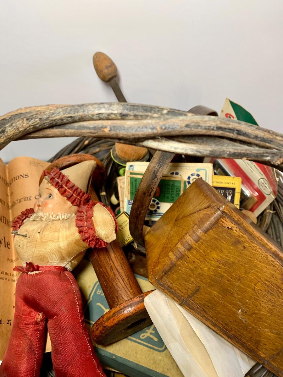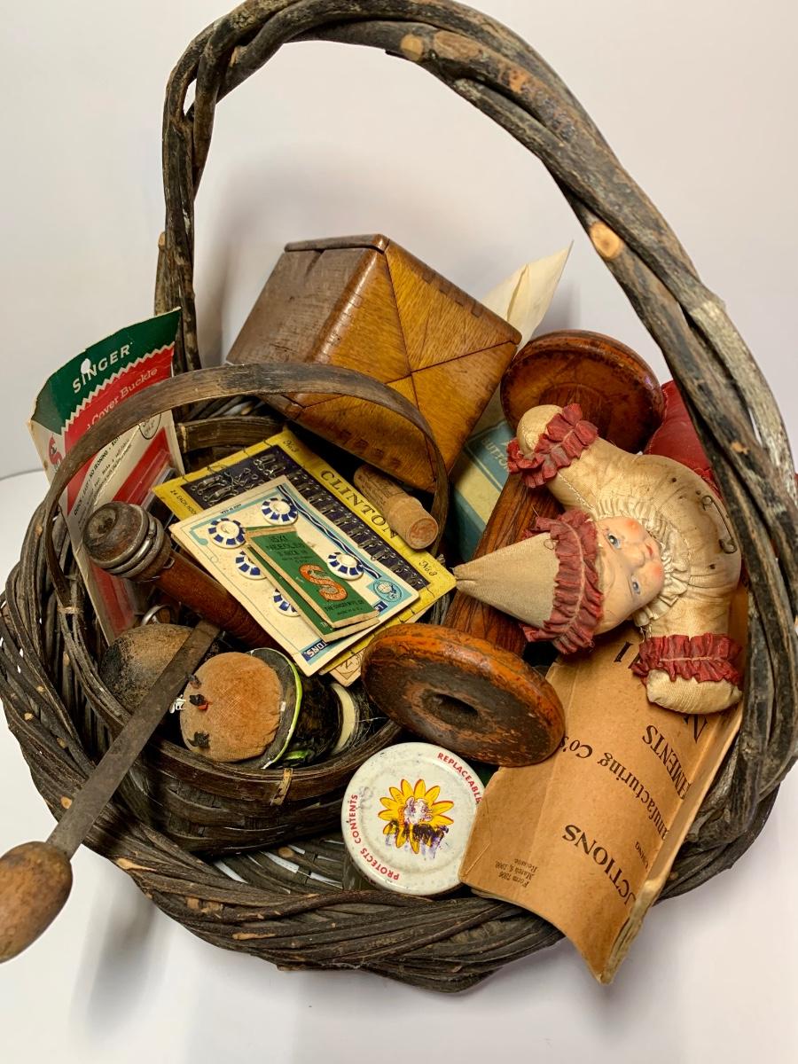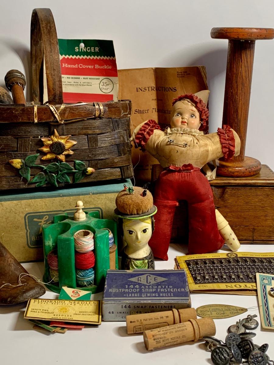 LOT 2R: Unique Antique & Vintage Sewing Notions, Folding Oak Parts Box & More