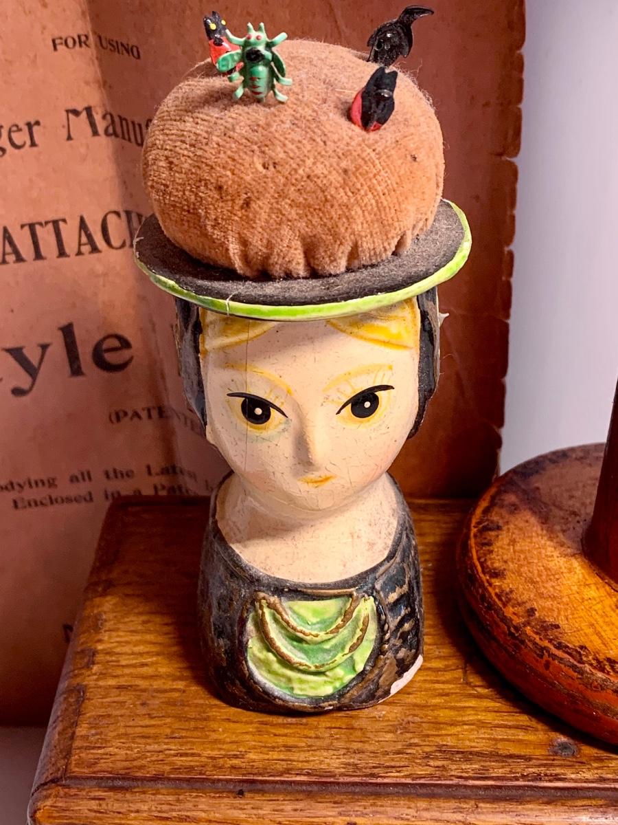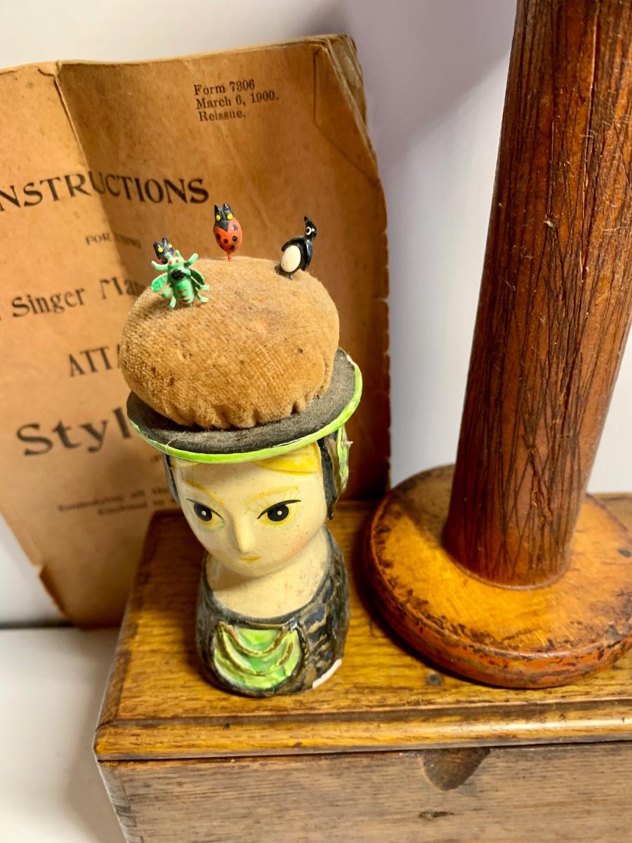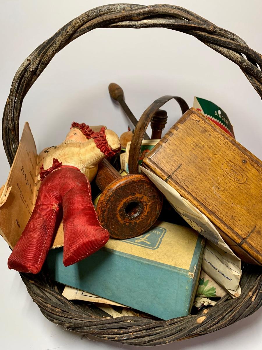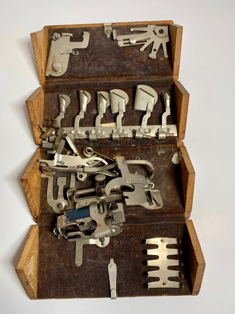 LOT 2R: Unique Antique & Vintage Sewing Notions, Folding Oak Parts Box & More