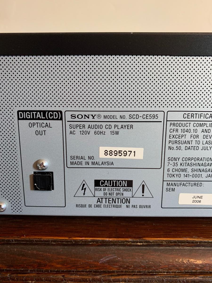 LOT 6R: Sony Super Audio CD Player Model SCD-CE595