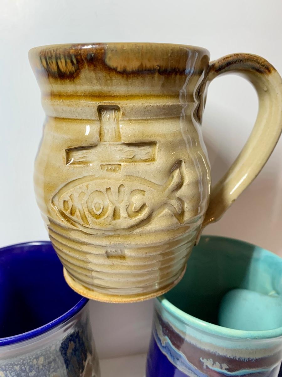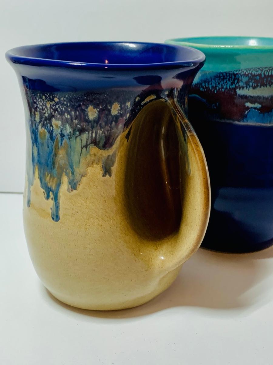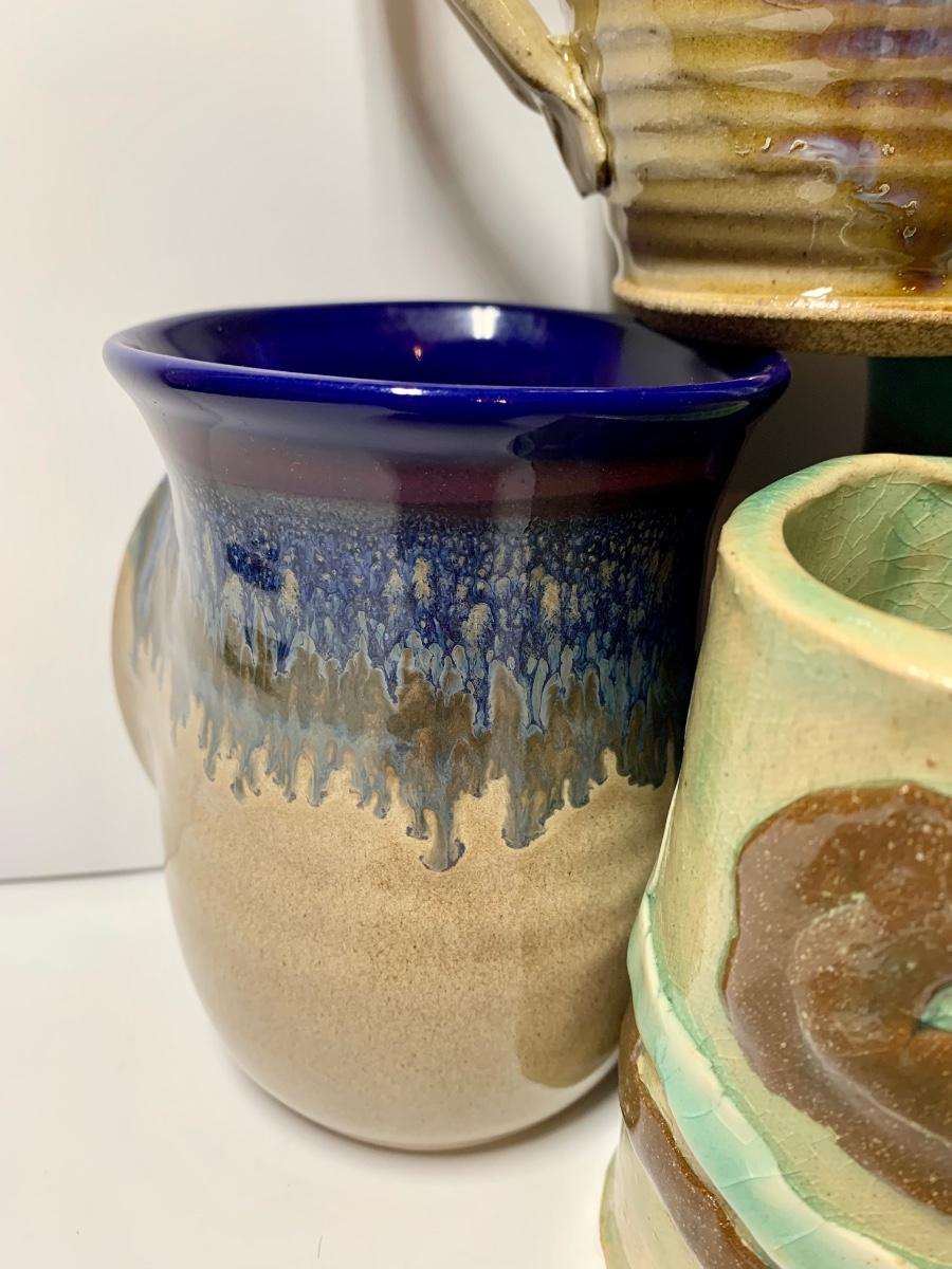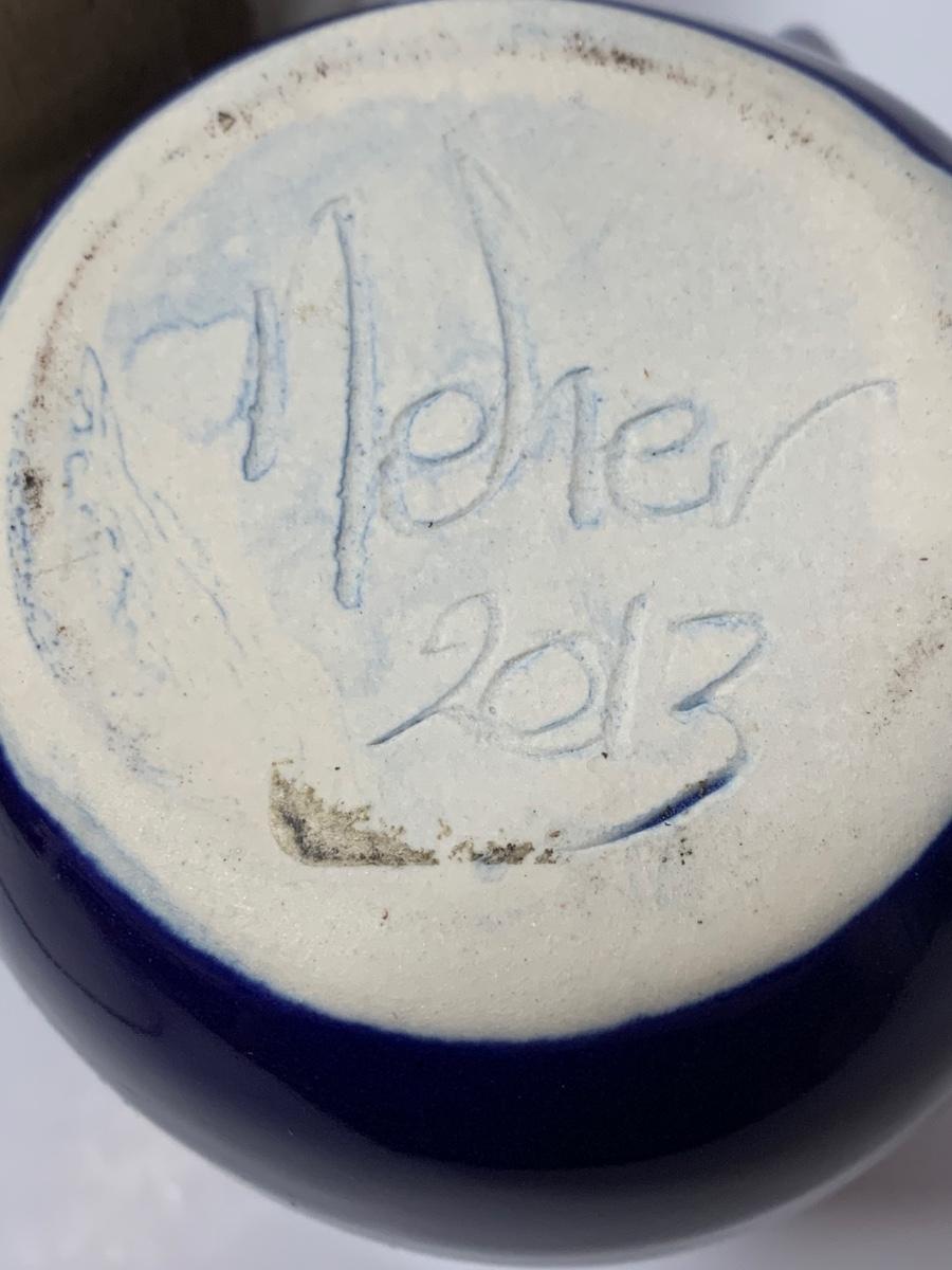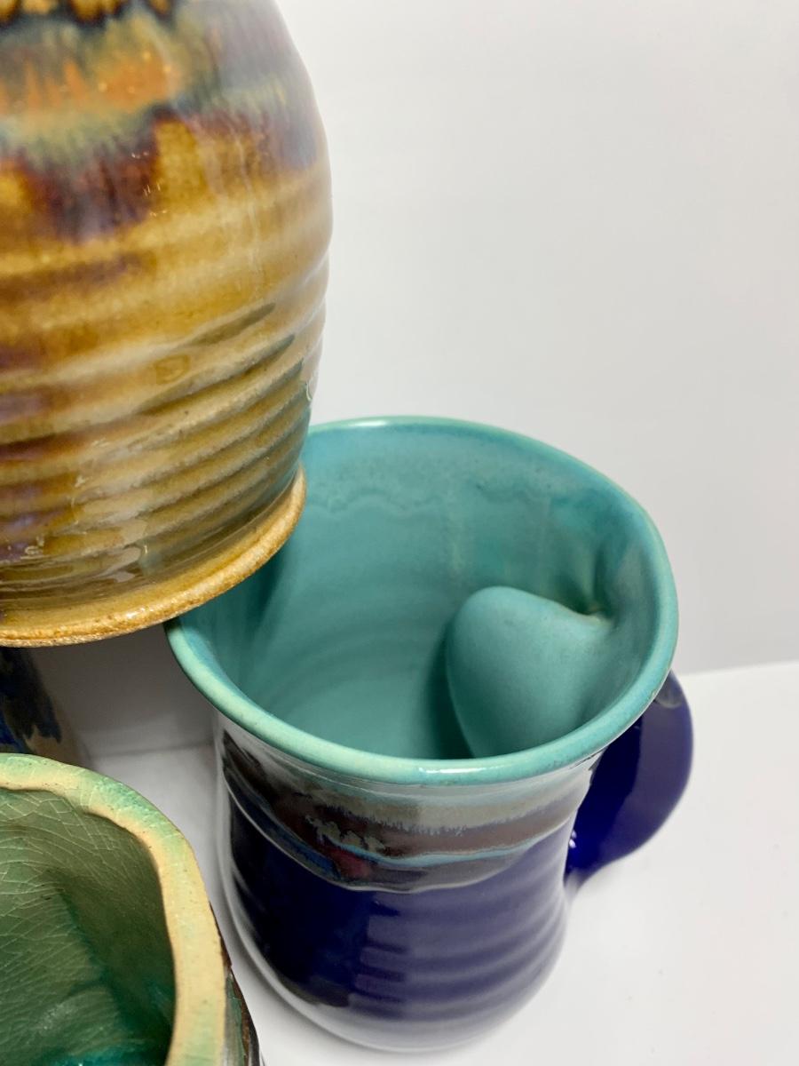 LOT 14R: Signed Pottery Mugs: Pocket/Hand Warmer Mugs w/others