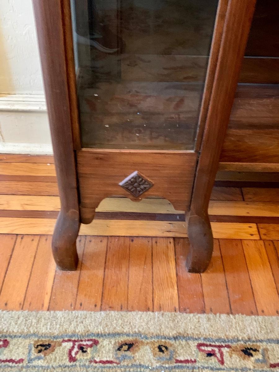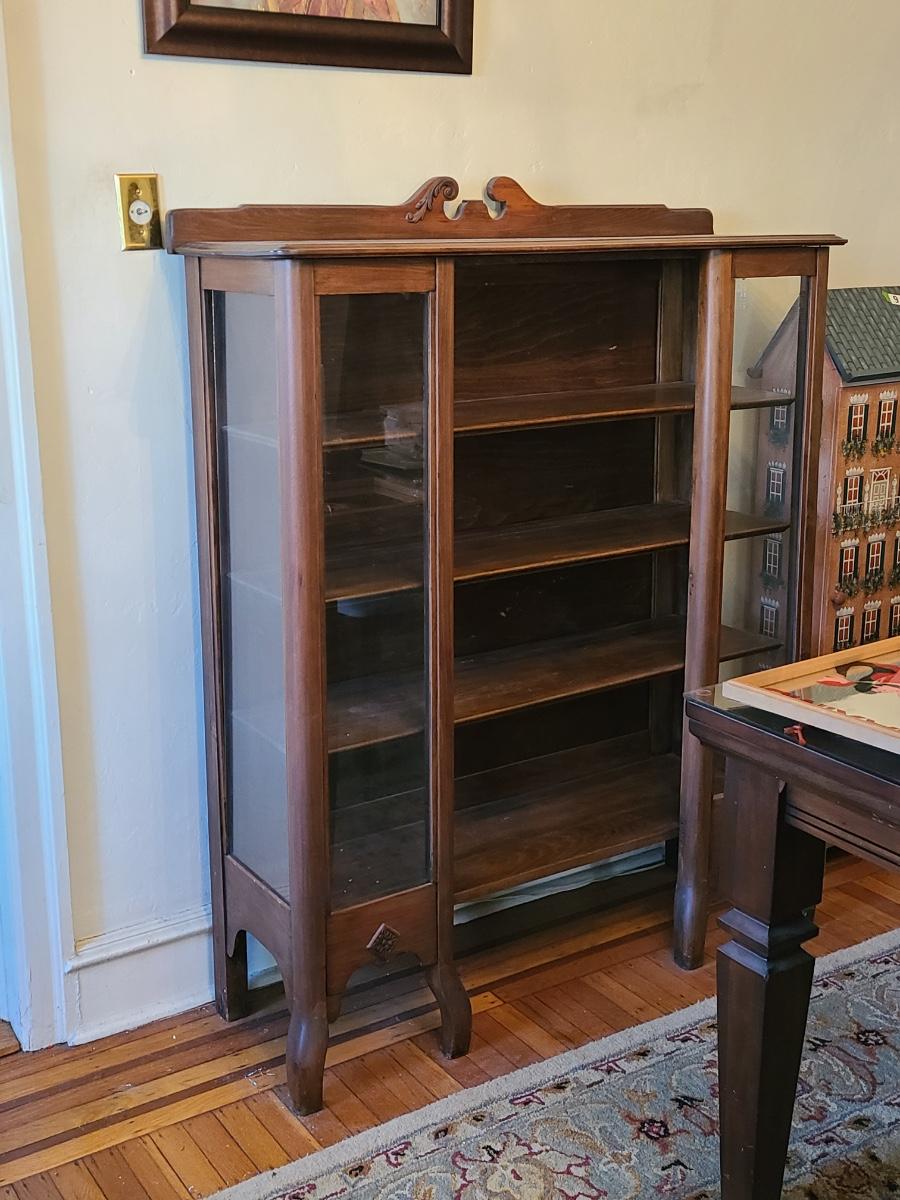 Vintage cabinet used to display pottery: 46 x 15 x 57 overall height. Would make an excellent Bookshelf, or cabinet for display. Please see all pictures as they are the best representation of the items. The pictures show condition, measurements if taken, and what is included in the lot. Due to the large amount that we photograph and the time frame, we are not always able to take measurements. All items unless noted, are pre-owned and have been used. If you purchased furniture, you must bring help. We do not allow one person to carry large furniture out on their own. Bring help, tools and a truck for the safety of our client’s homes, and your personal safety. Any damages that result to the property including walls, and floors due to moving of the furniture will be charged to the buyer. Company policy. Thank you.