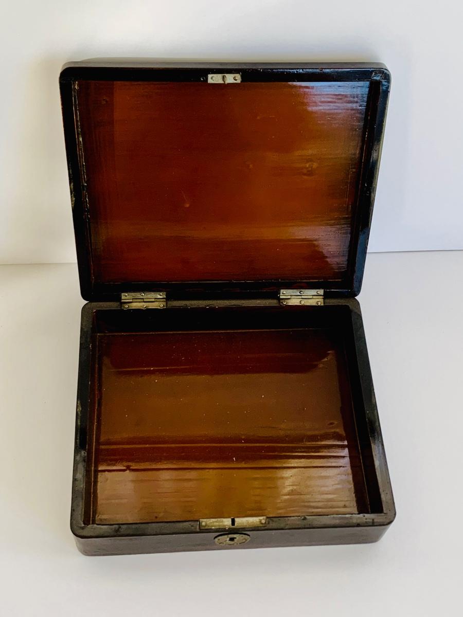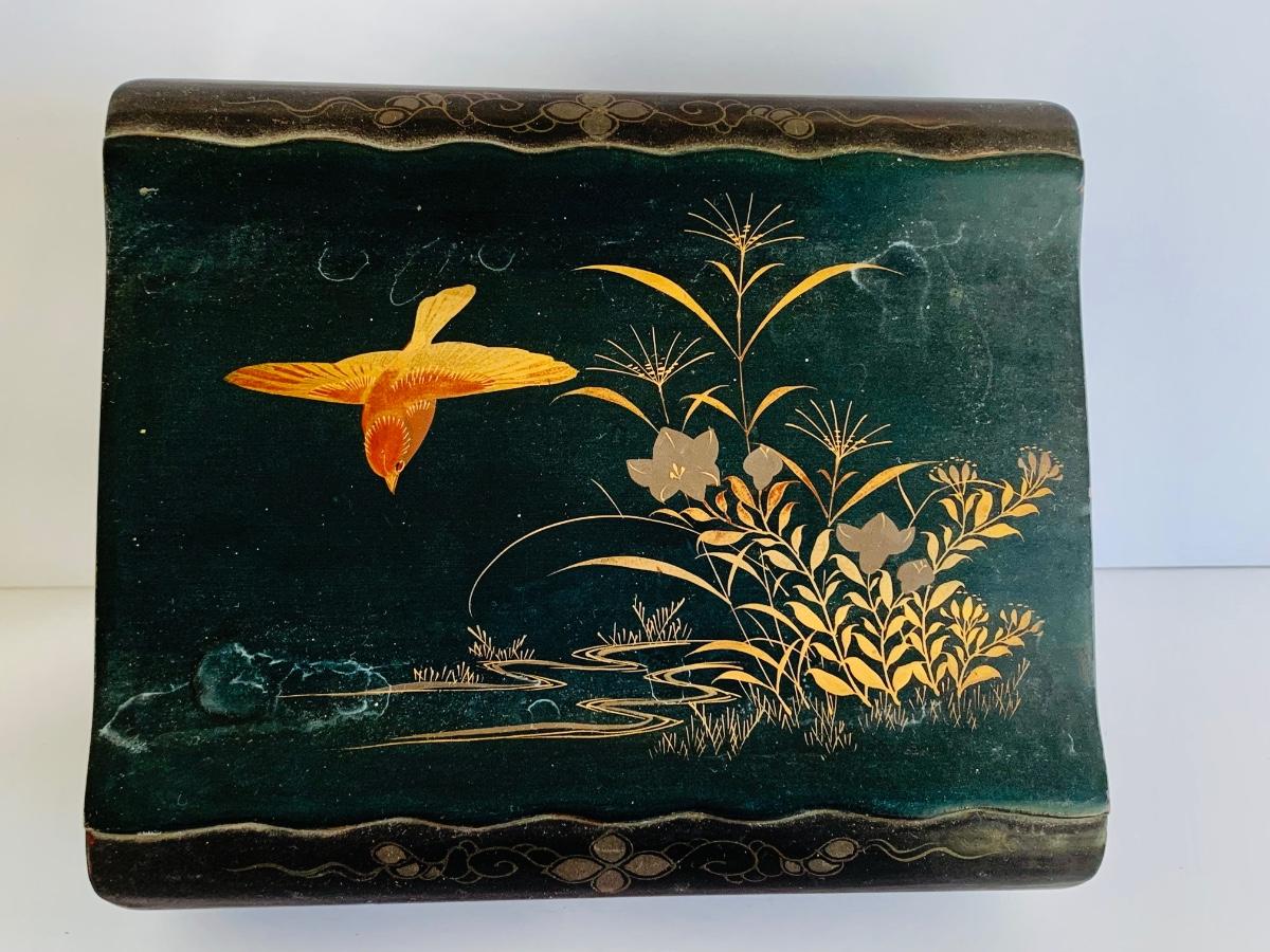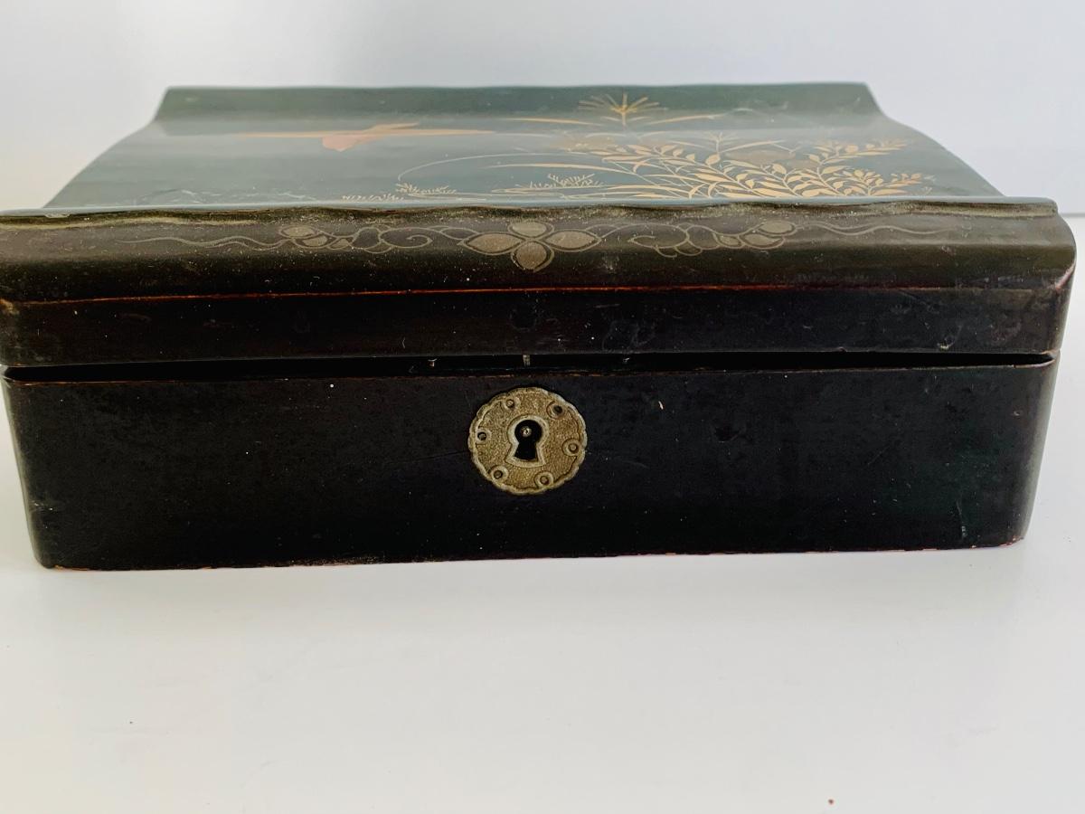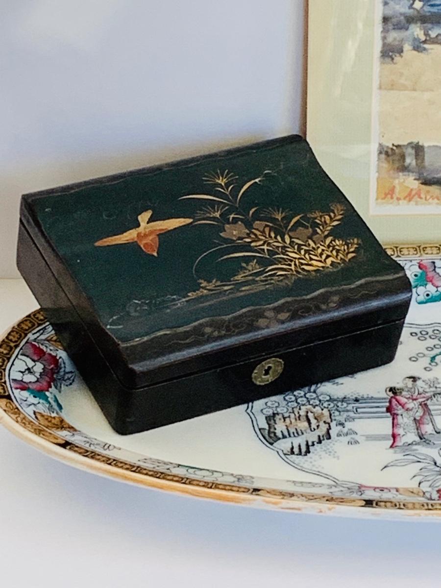 Beautiful platter and art along with a black jewelry box with inlay scene