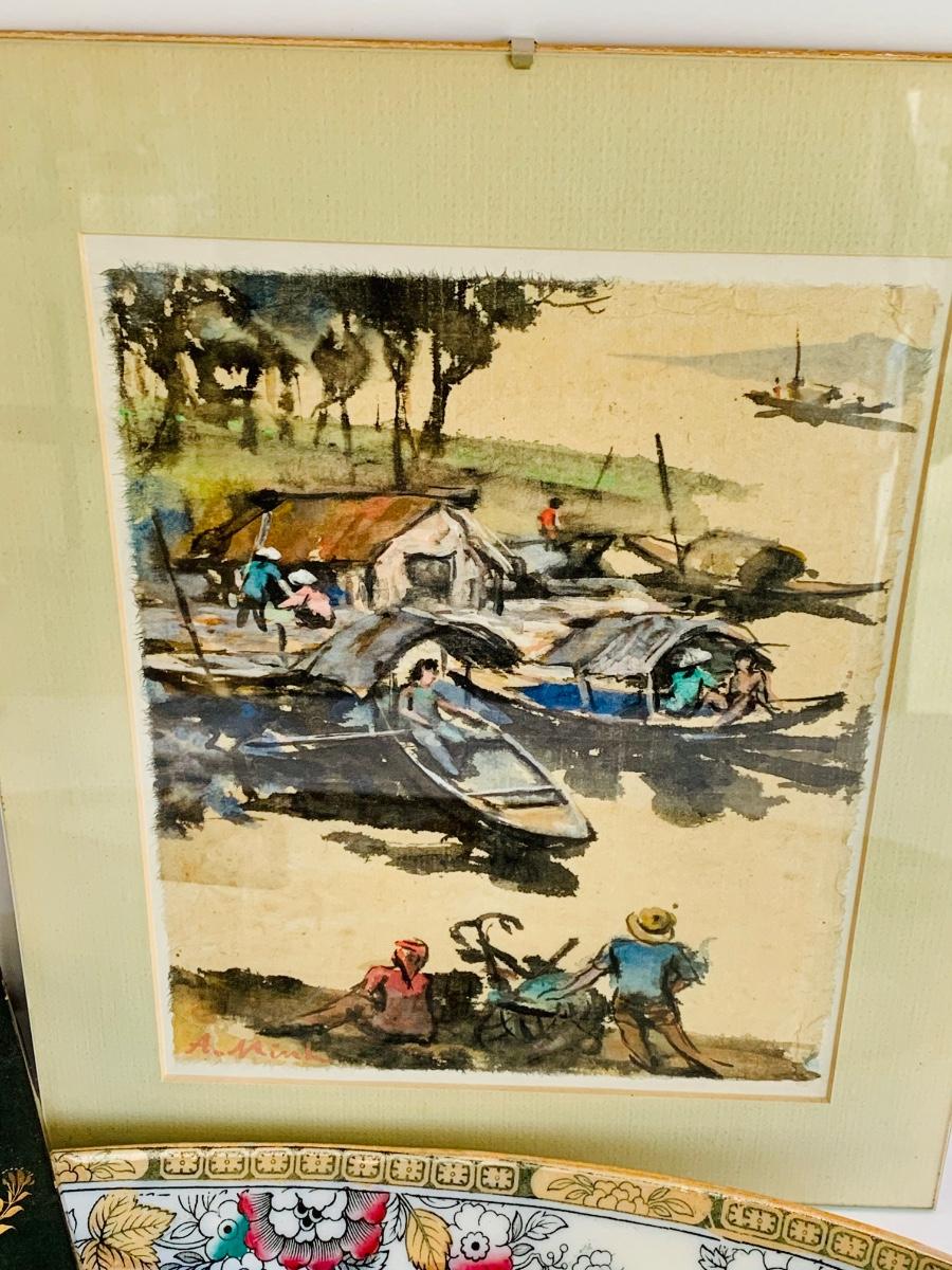 LOT 74R: Vintage Asian Inspired Collection: Sign Art, Platter & Jewerly