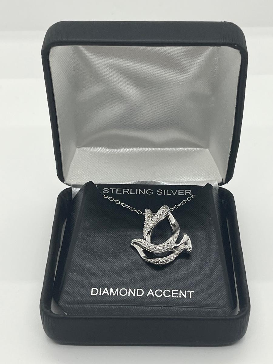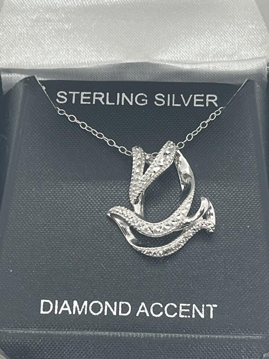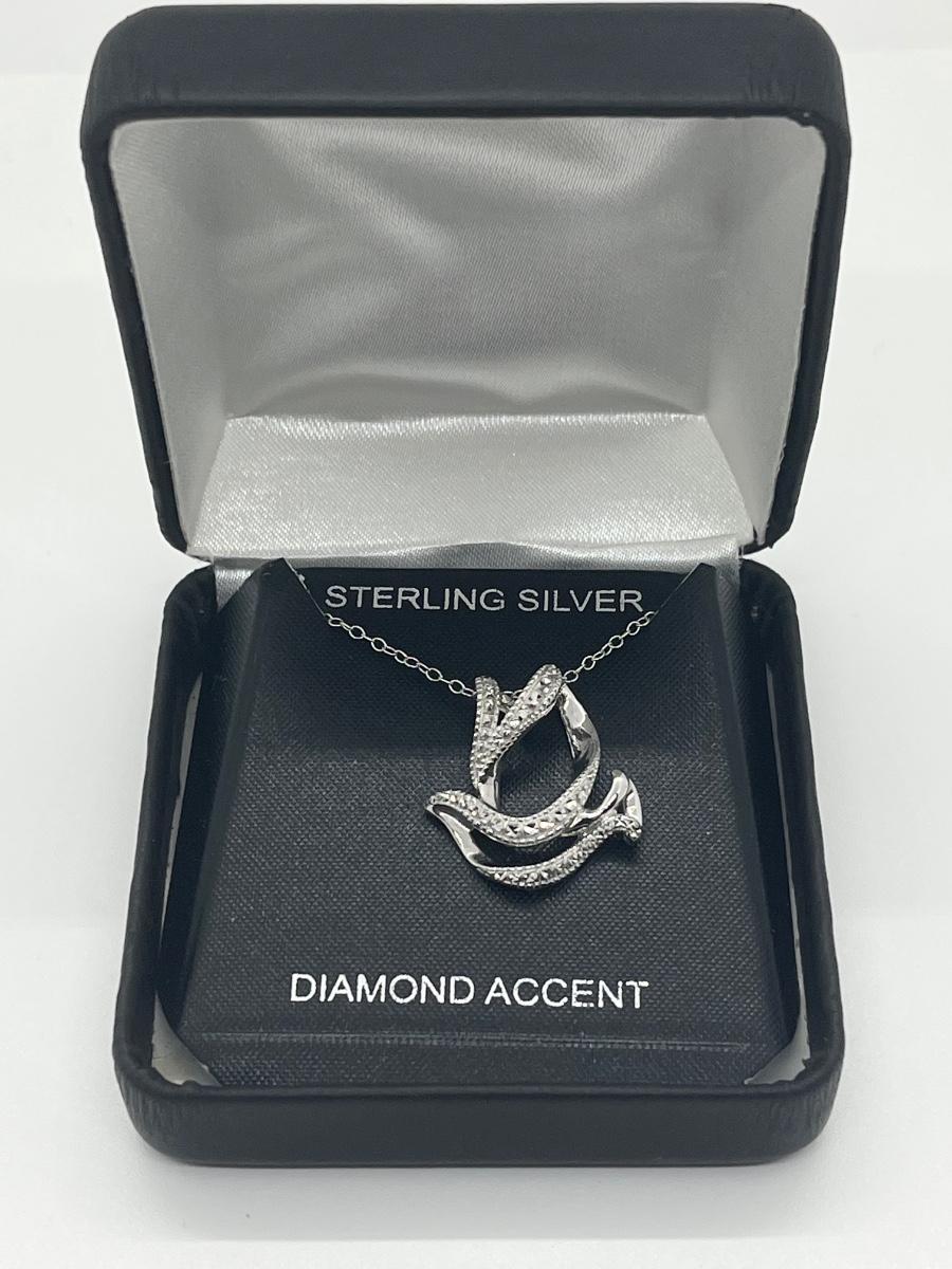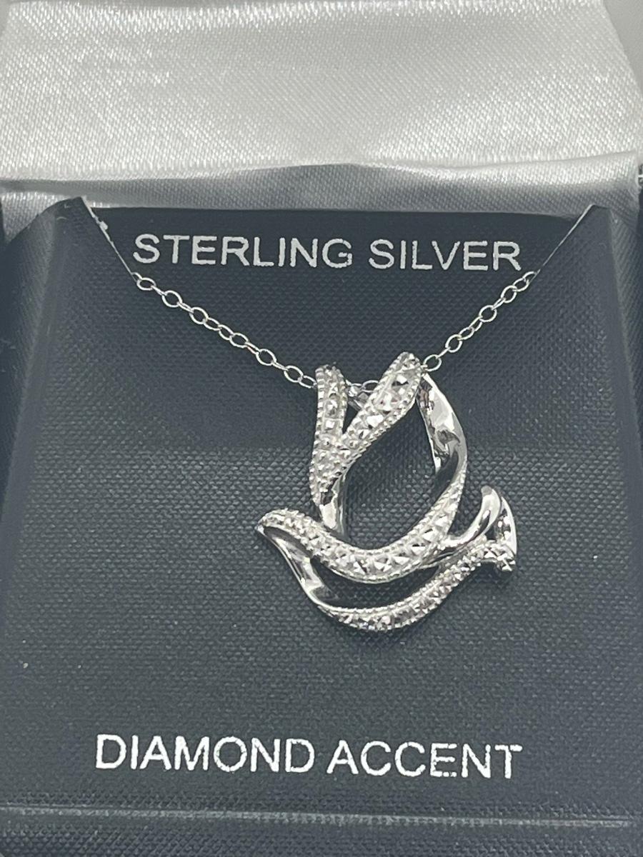 LOT 494C: Sterling Silver and Diamond Accent Dove Pendant with Chain