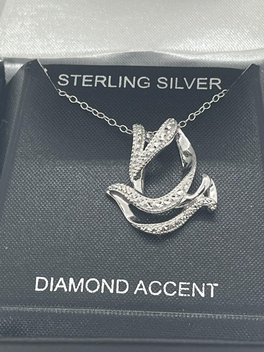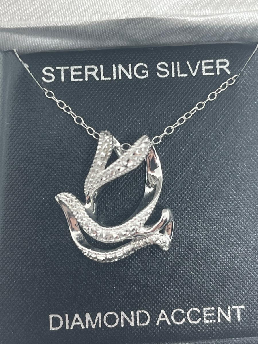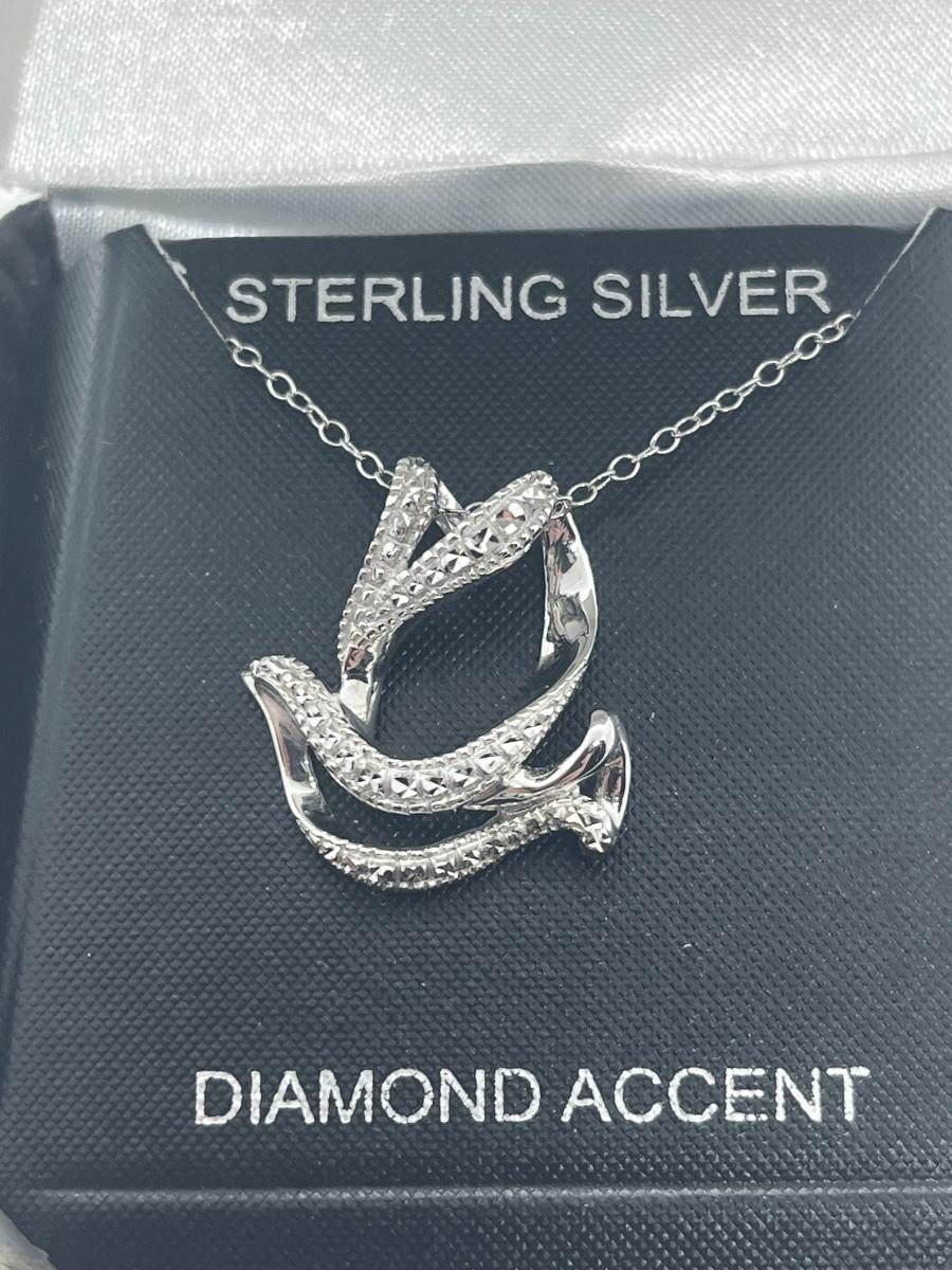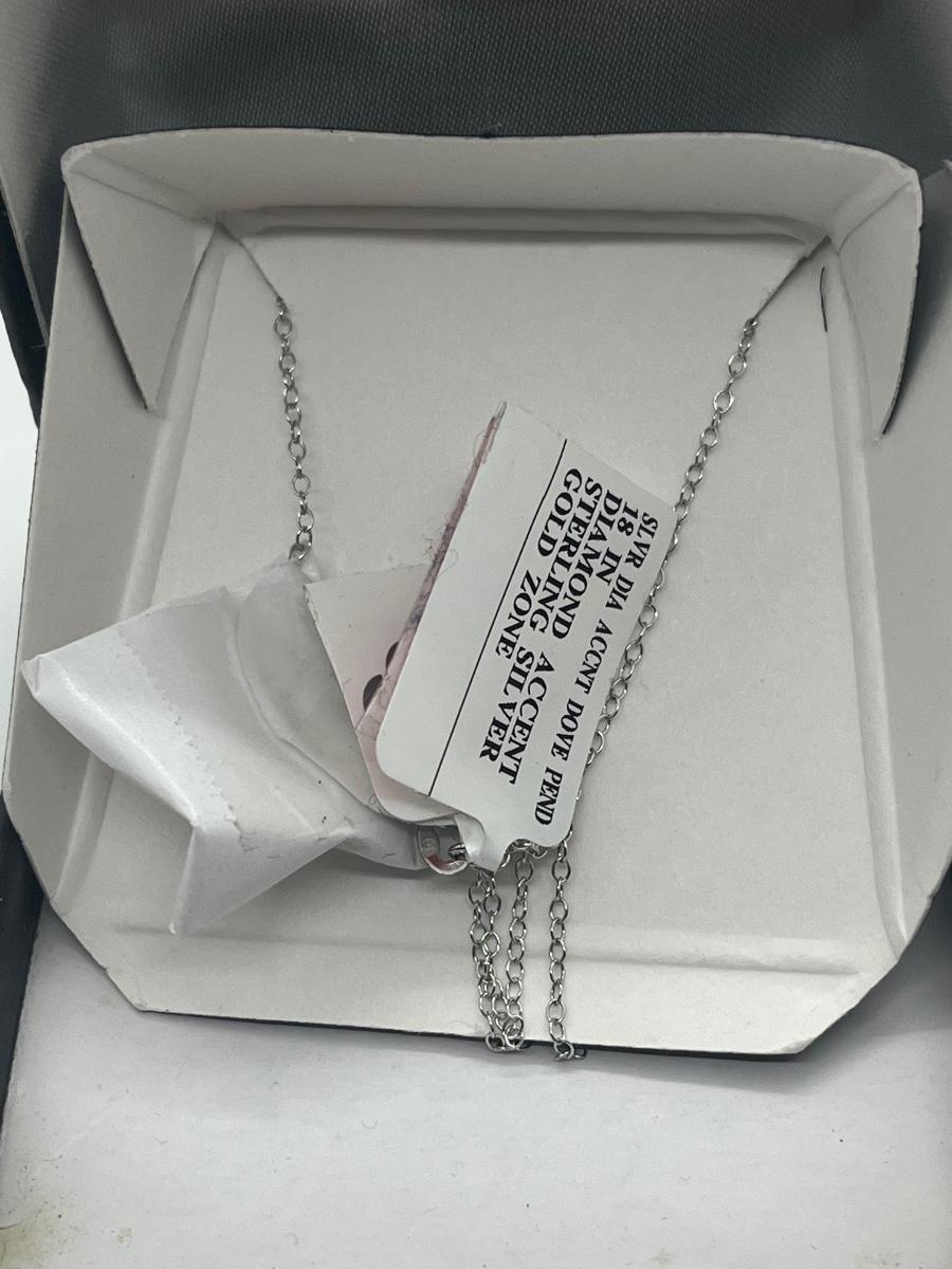 LOT 494C: Sterling Silver and Diamond Accent Dove Pendant with Chain