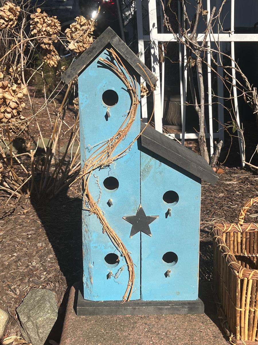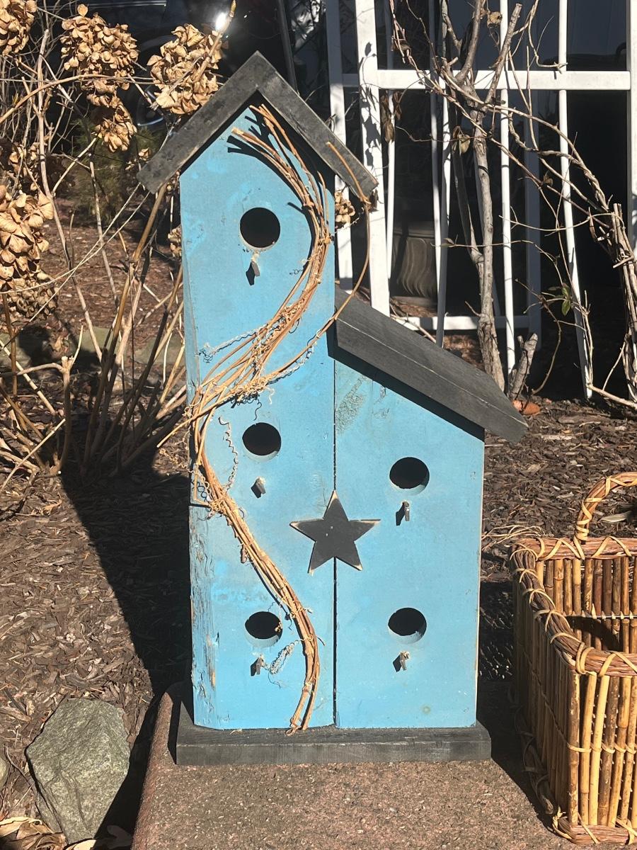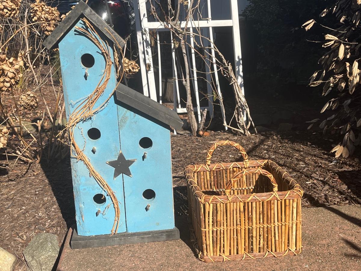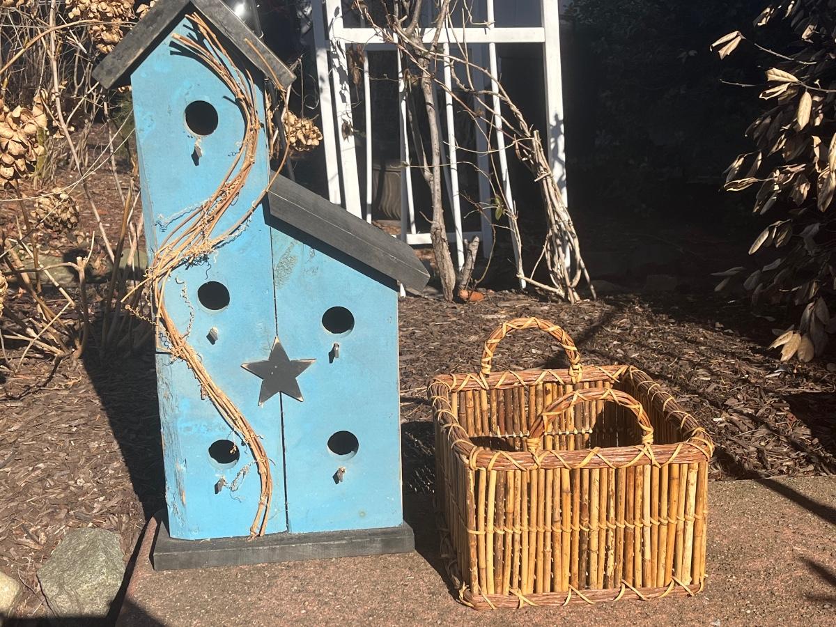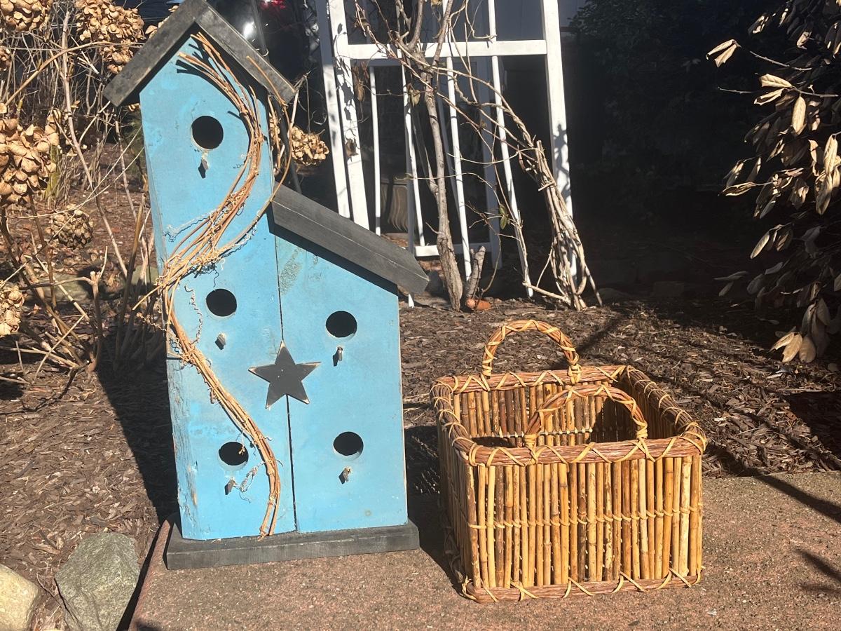 LOT 84C: Primitive Birdhouse and Wicker Basket