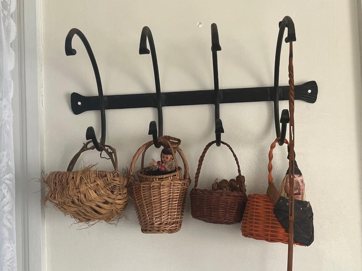 LOT 87C: Primitive Baskets and Metal Wall Hook