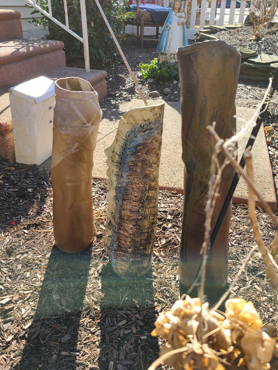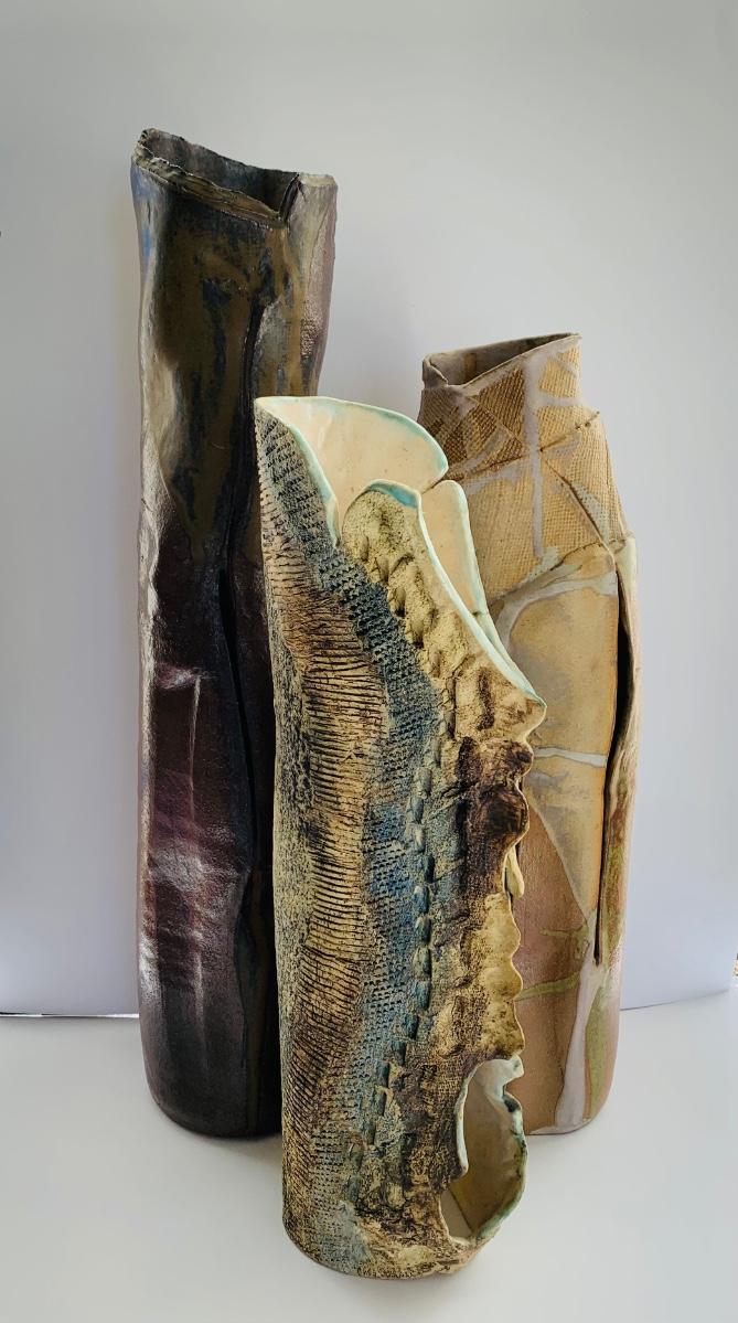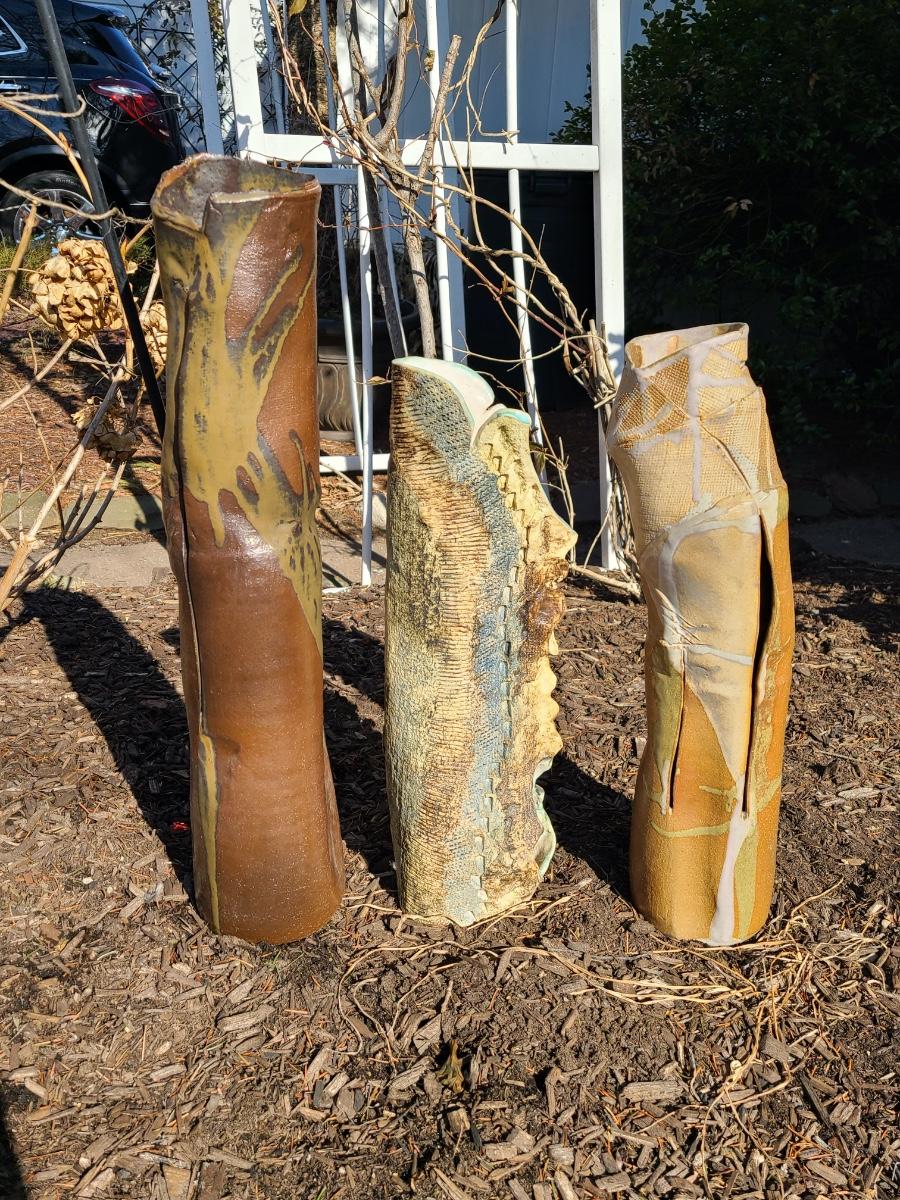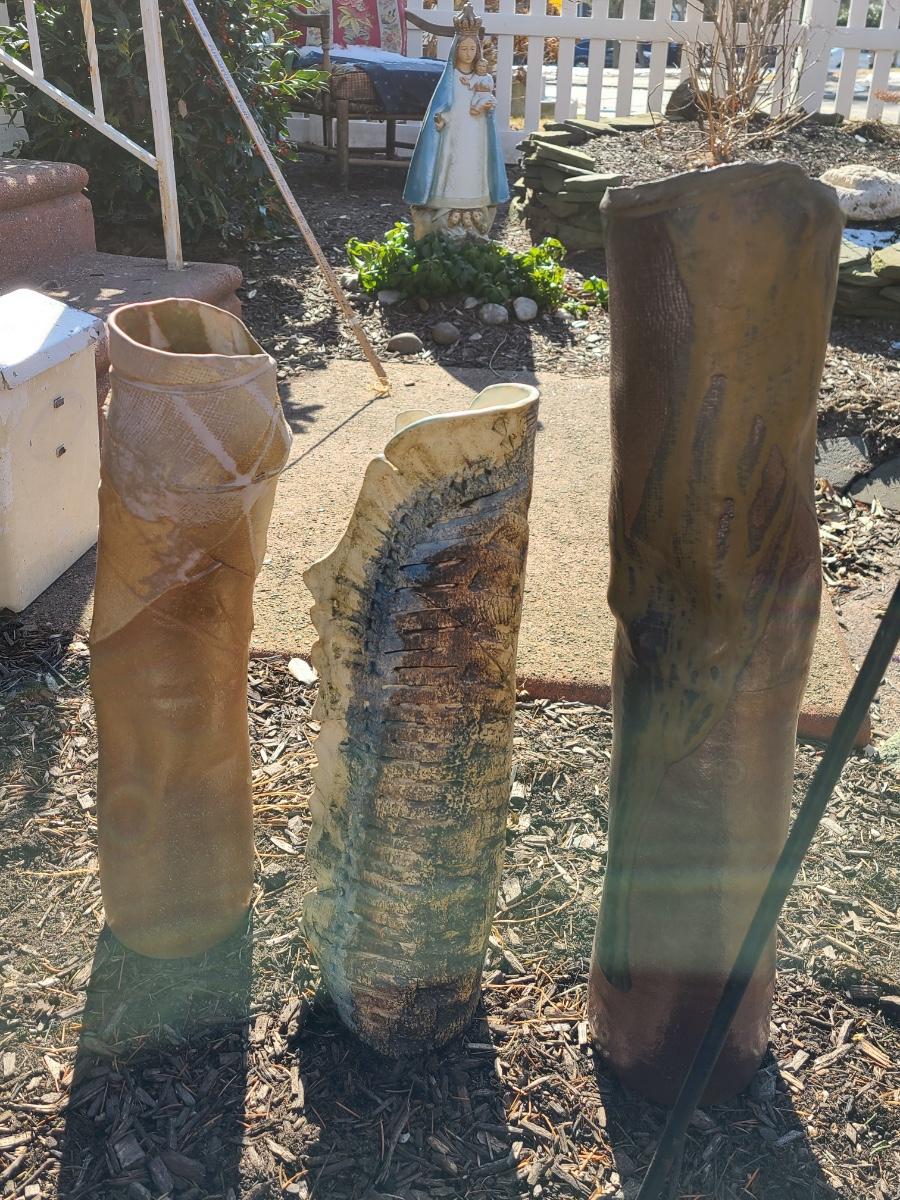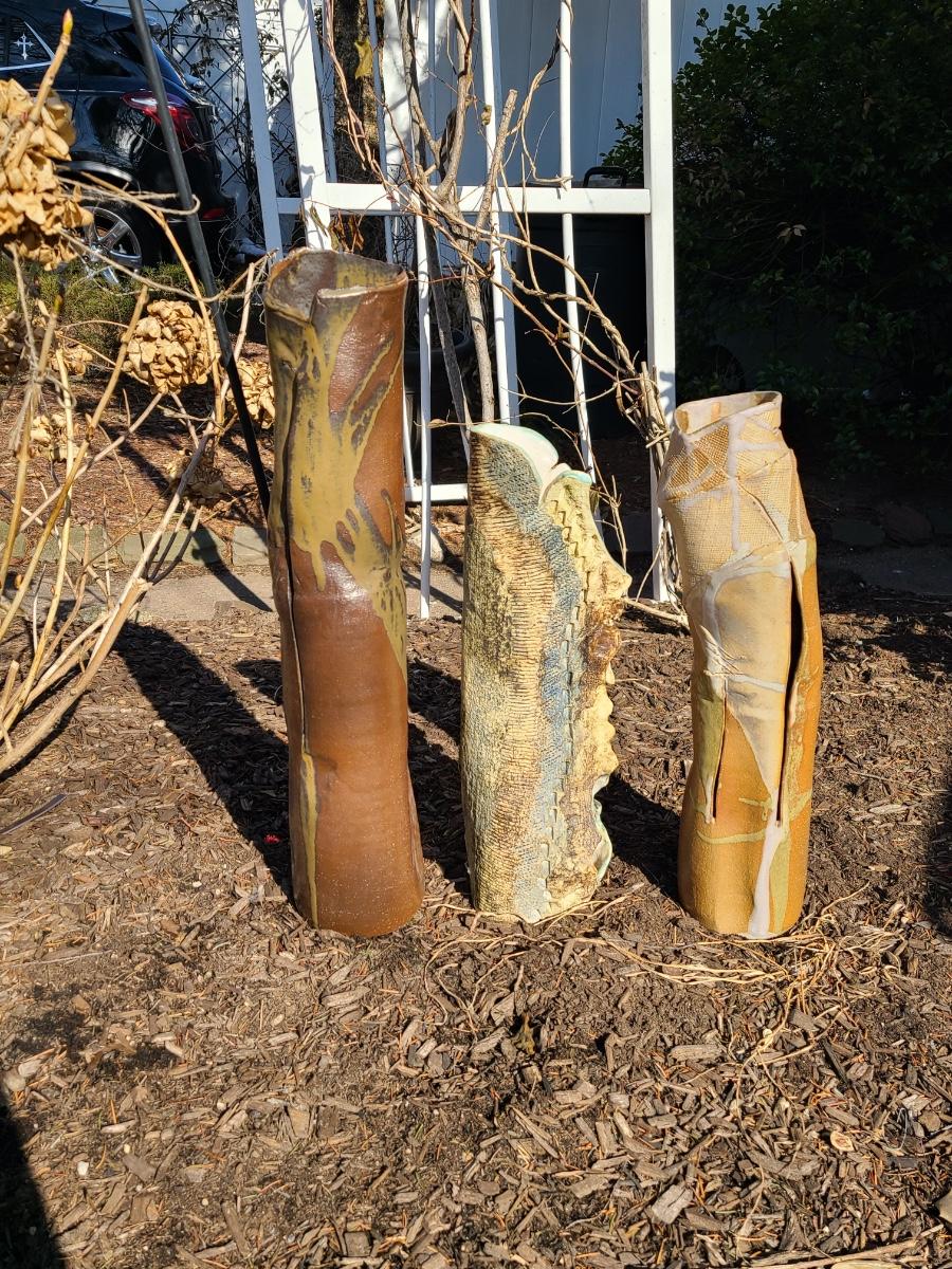Collection of 3 oversized, hand made pottery vases/art pieces.