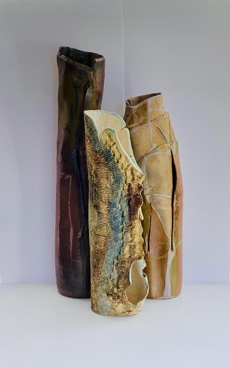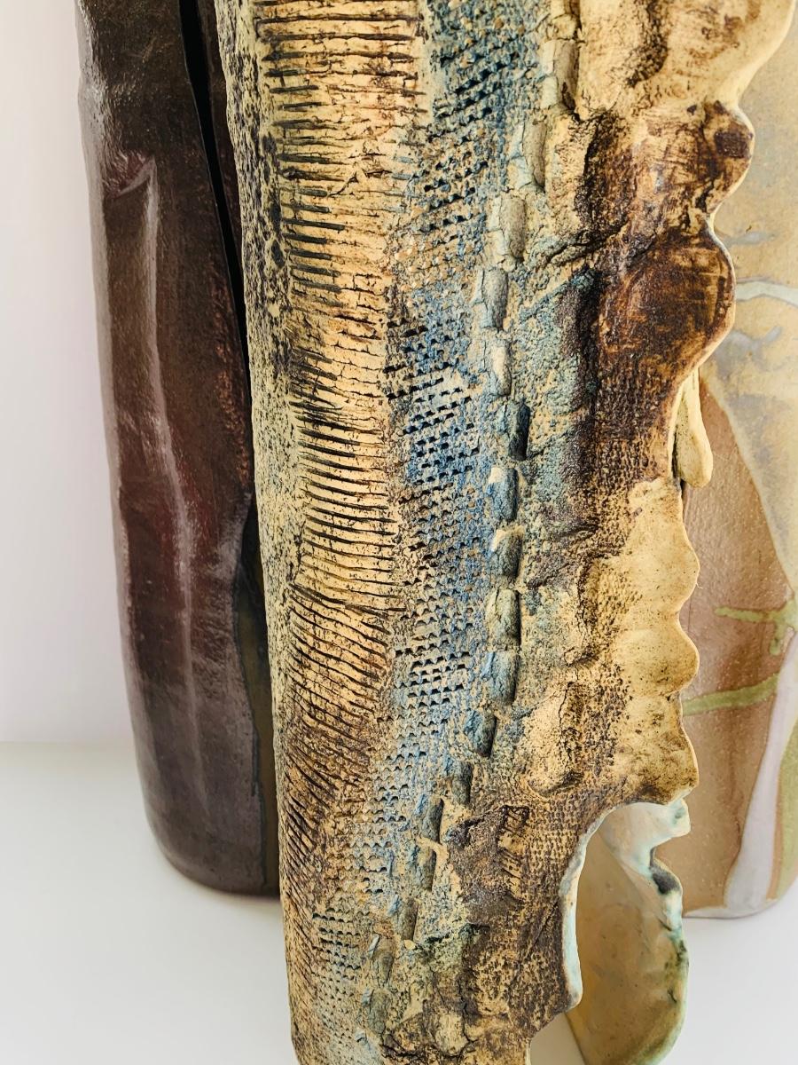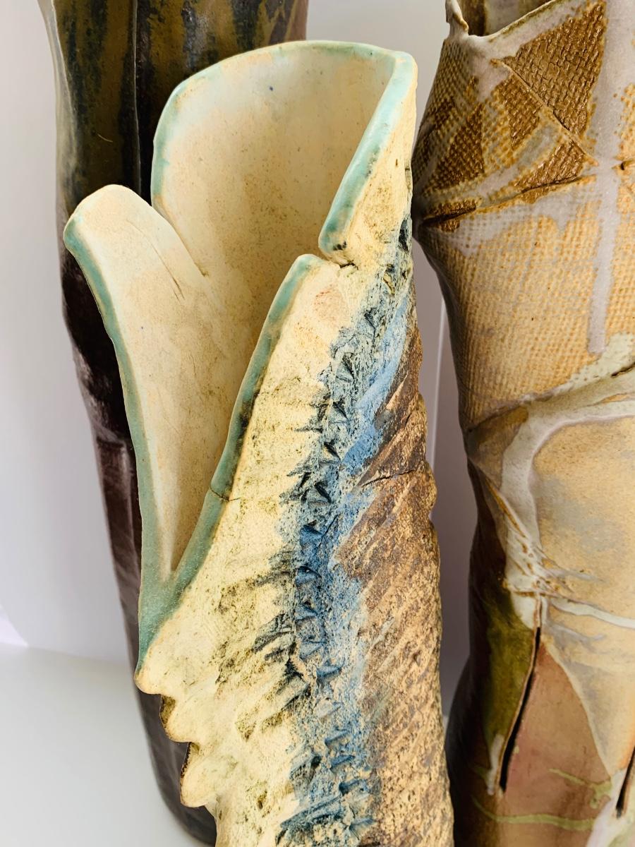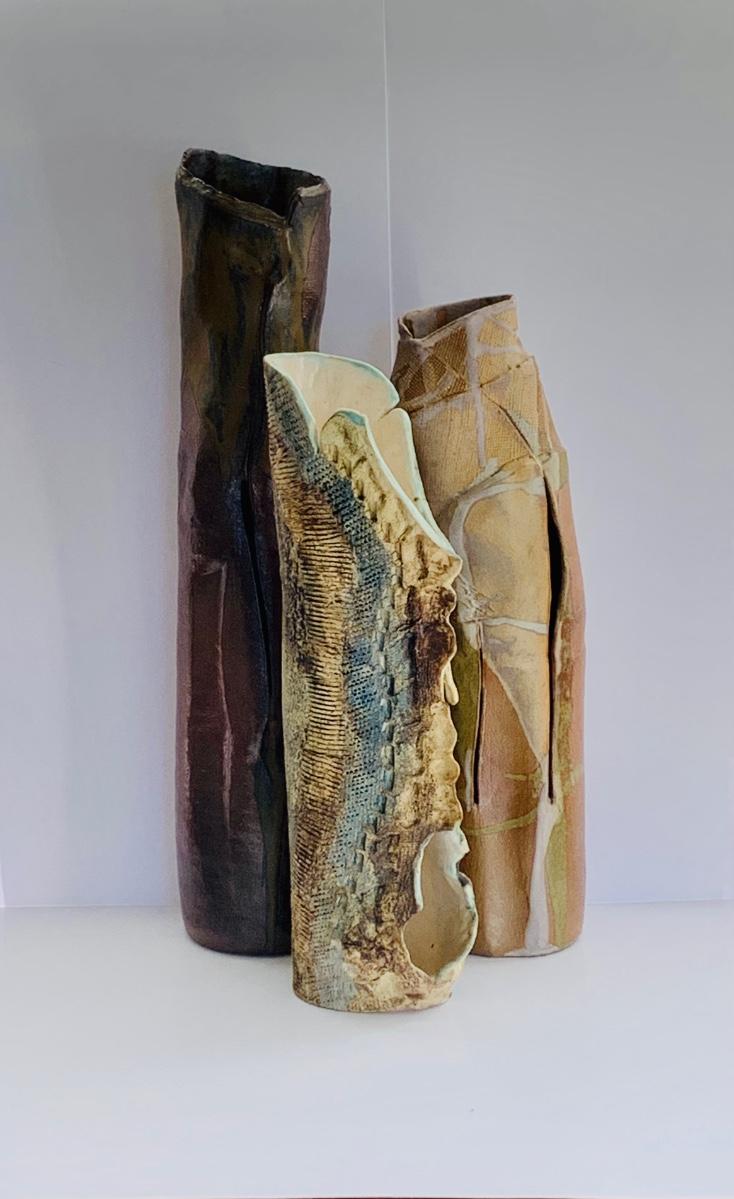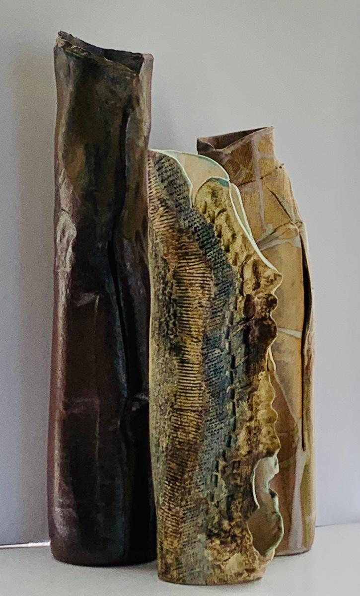 Collection of 3 oversized, hand made pottery vases/art pieces.
