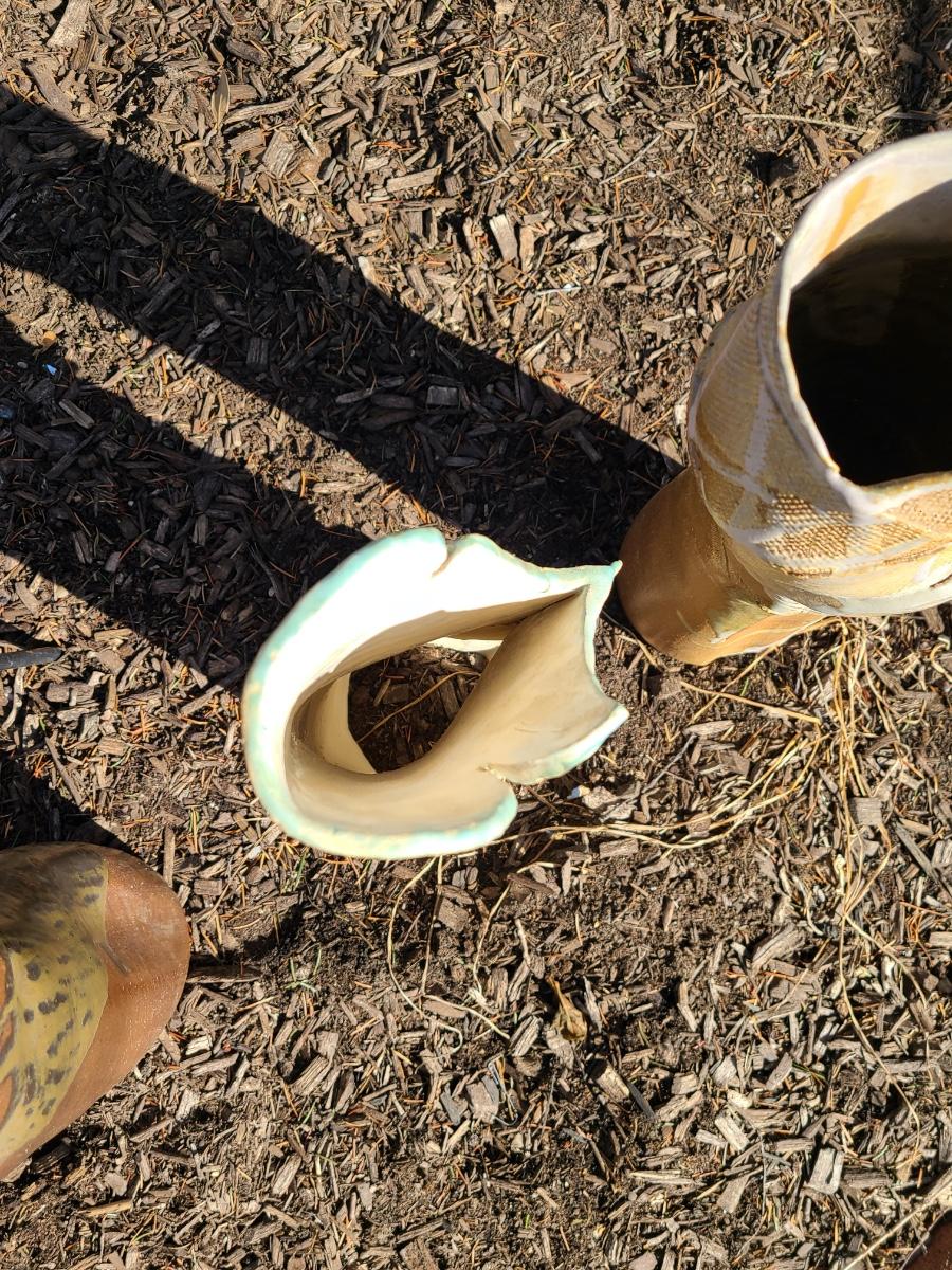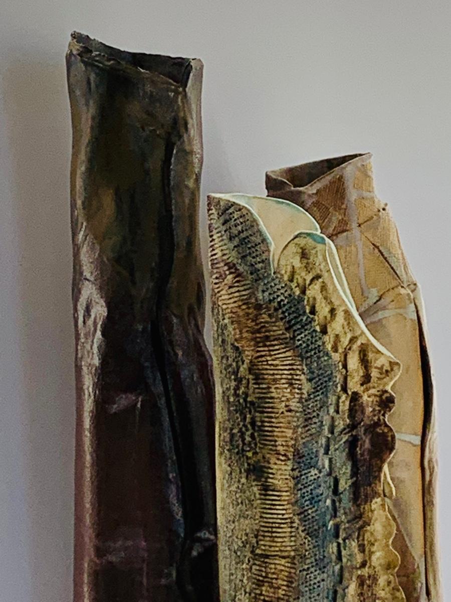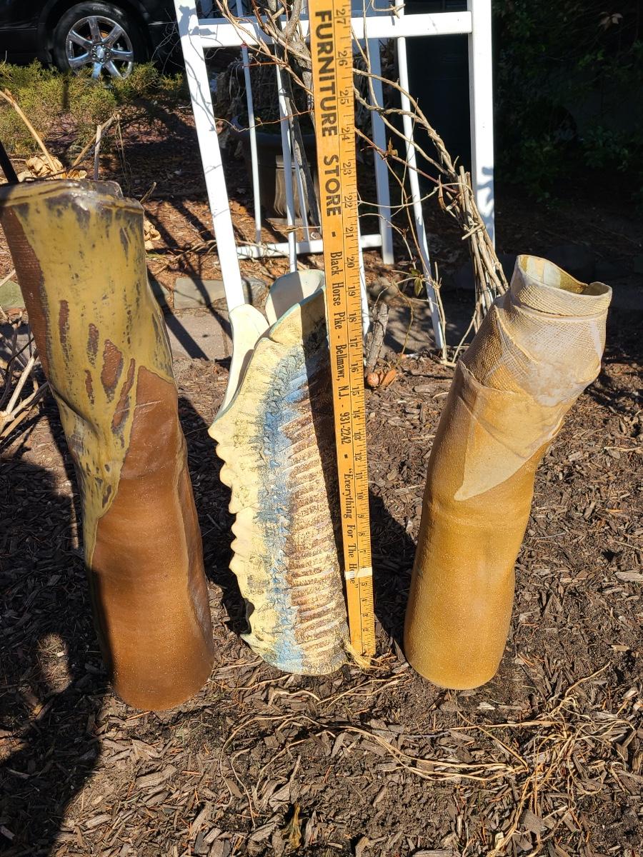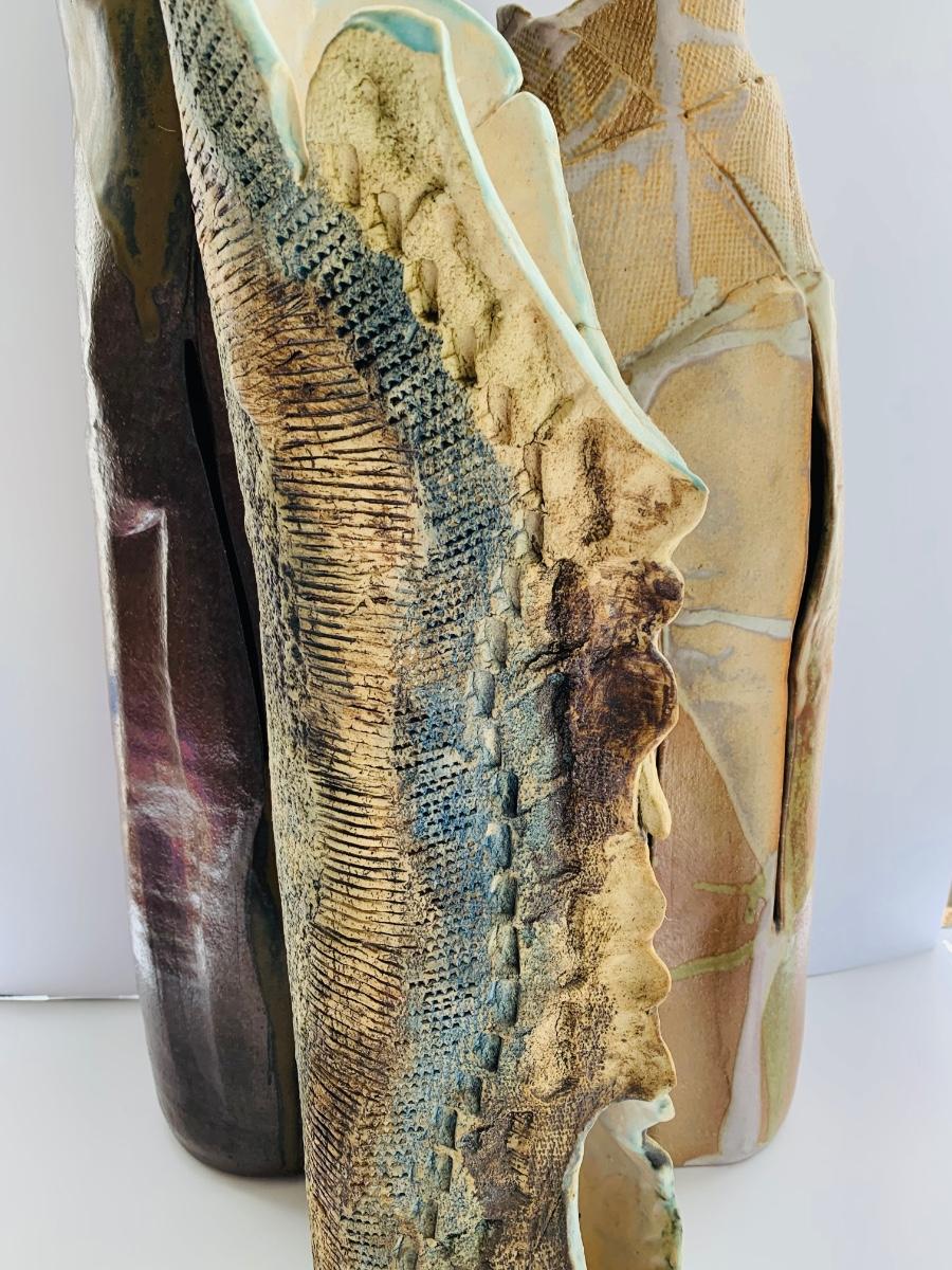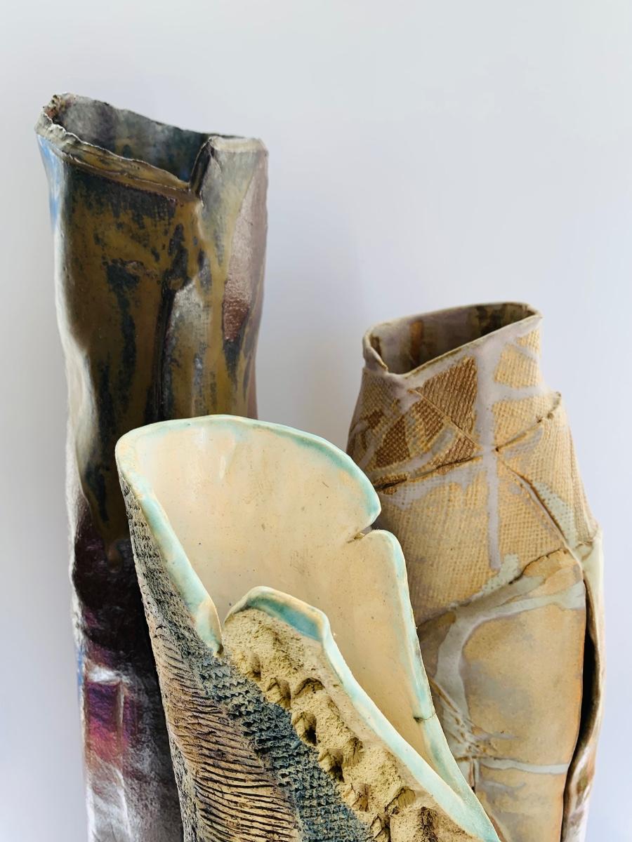 Collection of 3 oversized, hand made pottery vases/art pieces.