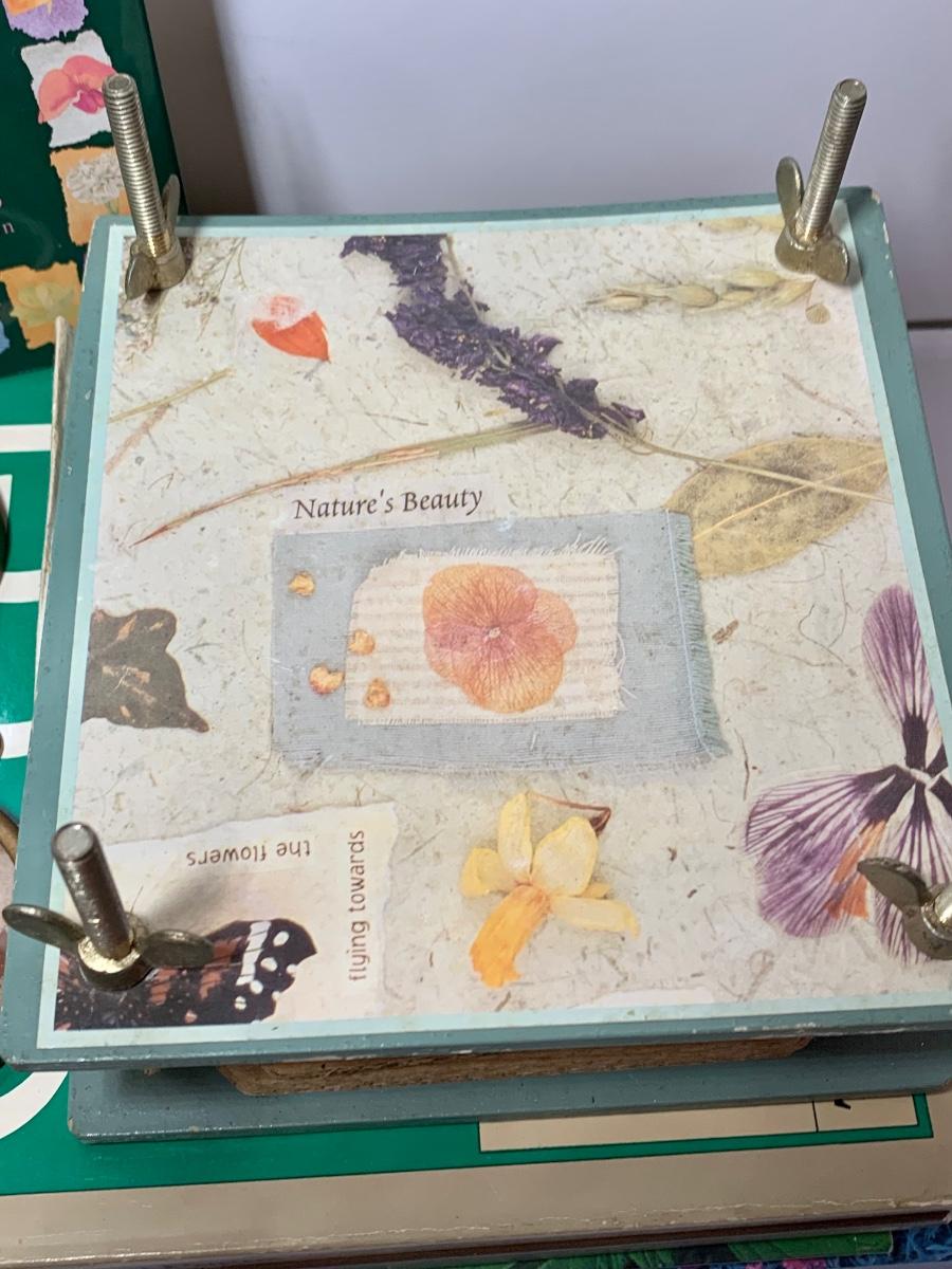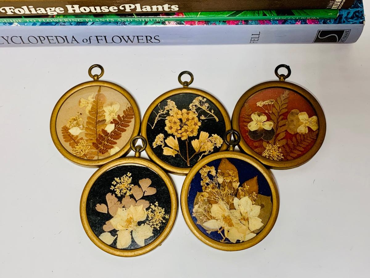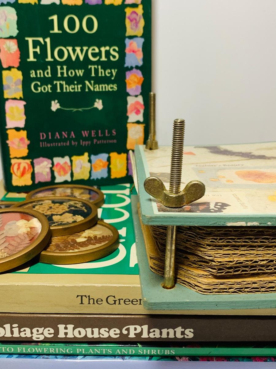 Collection includes gardening & flower books, pressed flower ornaments and a flower .leaf press for drying and preserving..