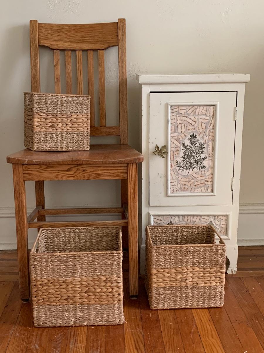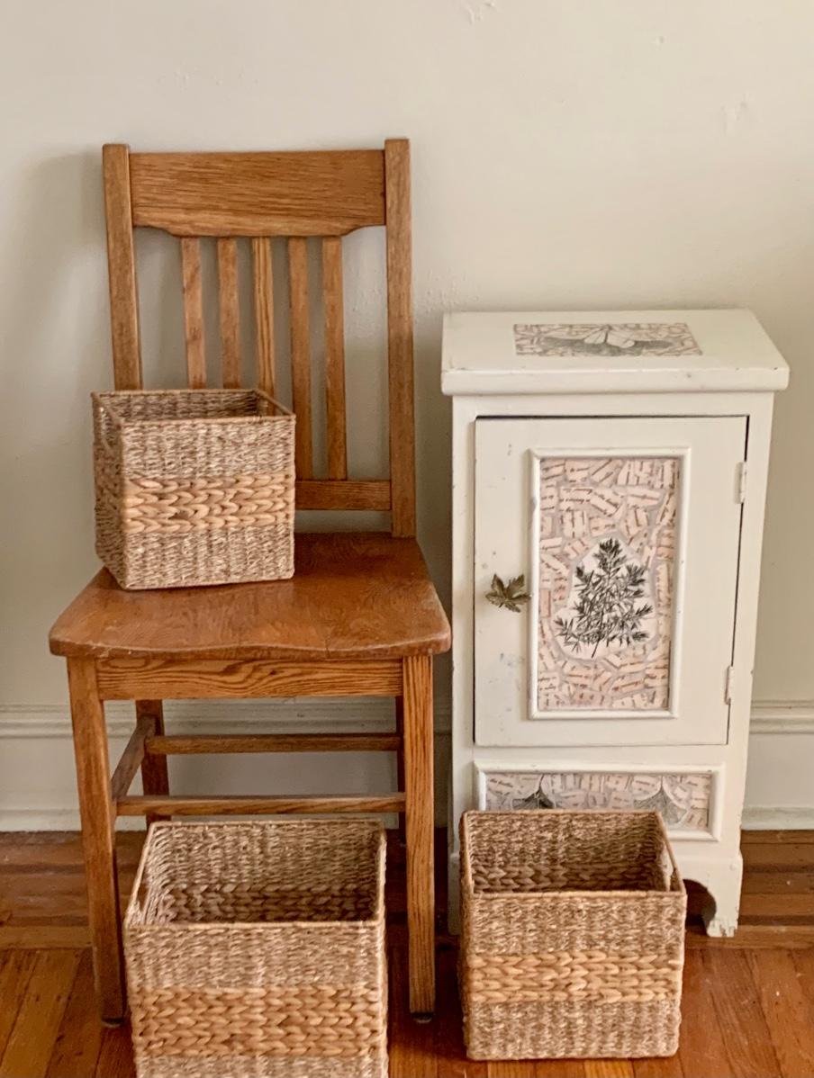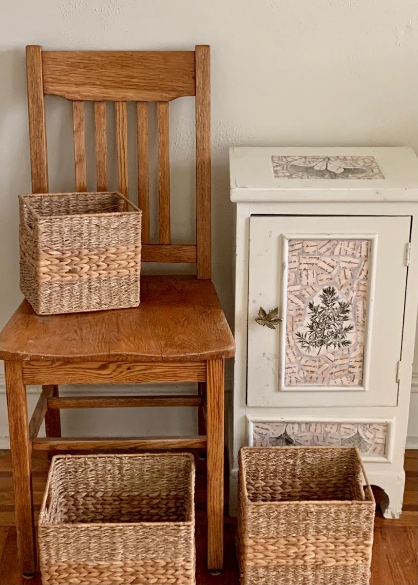 LOT 115R: Vintage Chair, Nesting Baskets & Tiled Cabinet