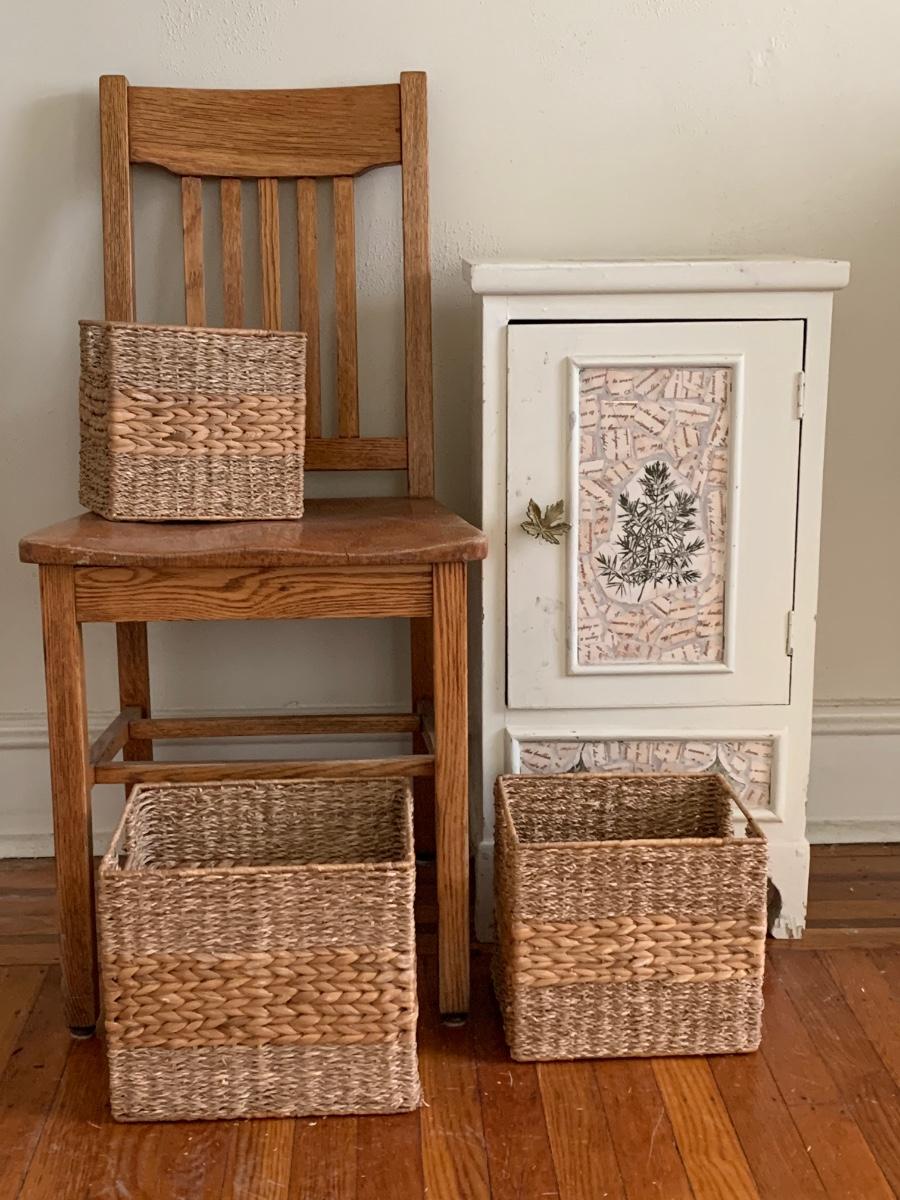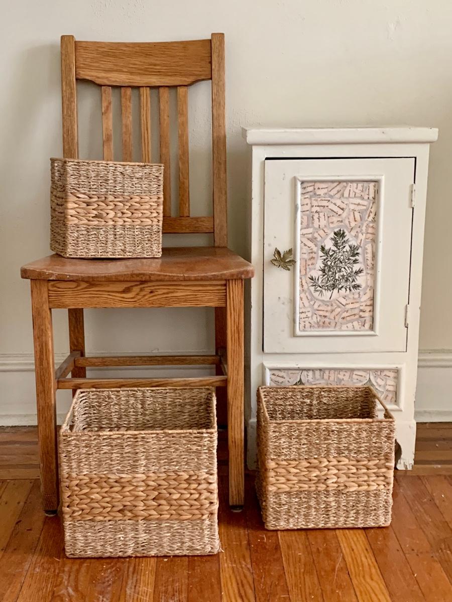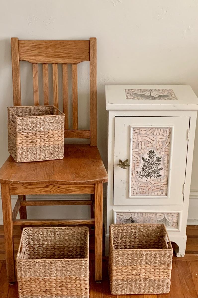 LOT 115R: Vintage Chair, Nesting Baskets & Tiled Cabinet