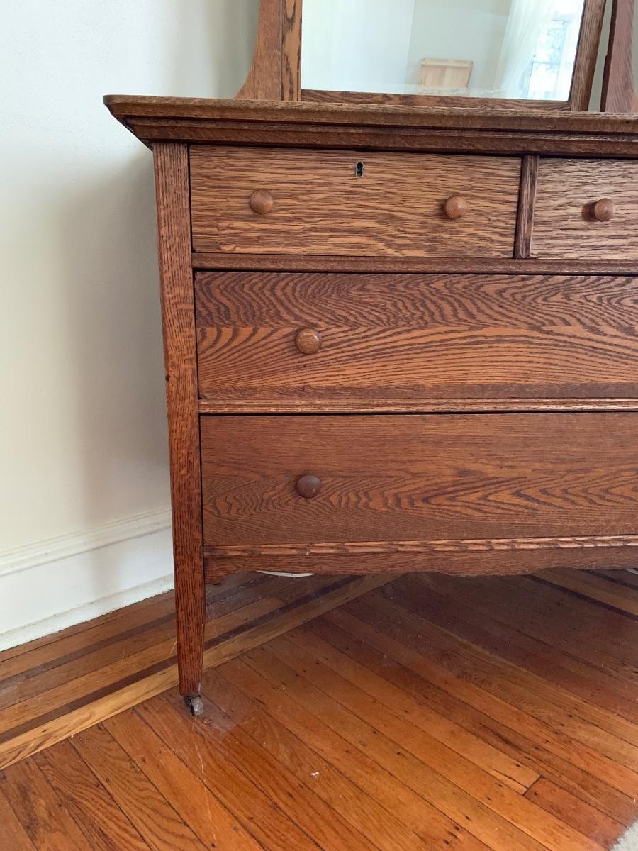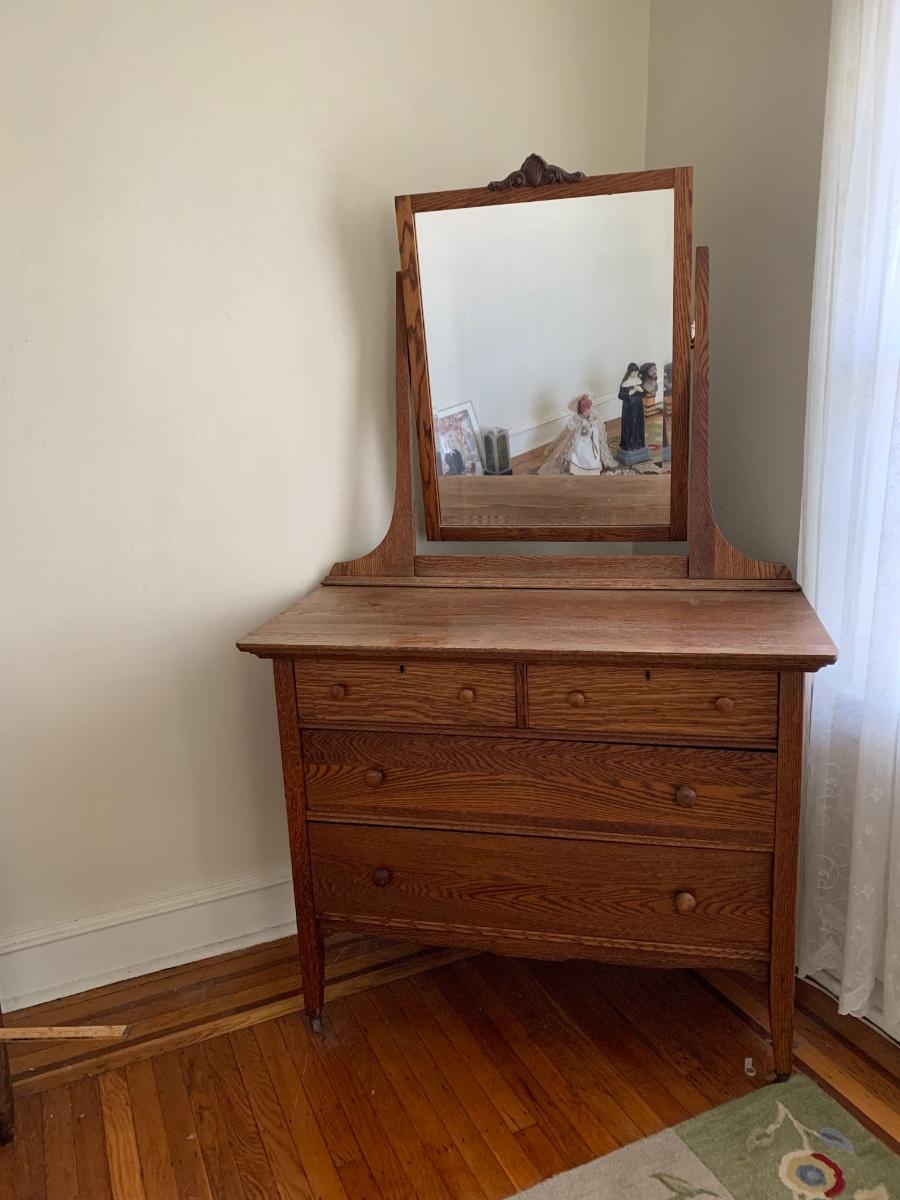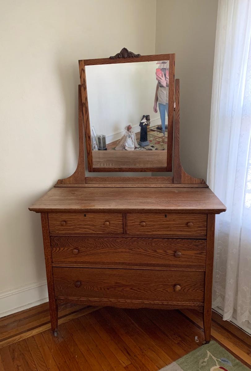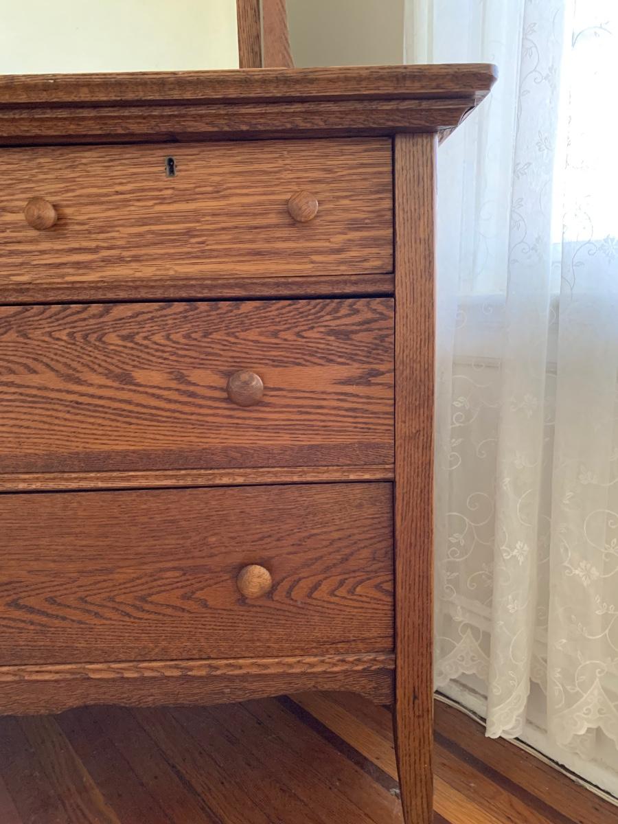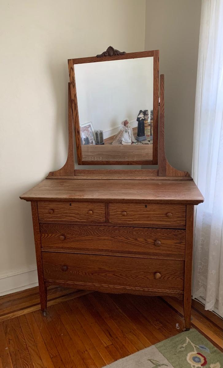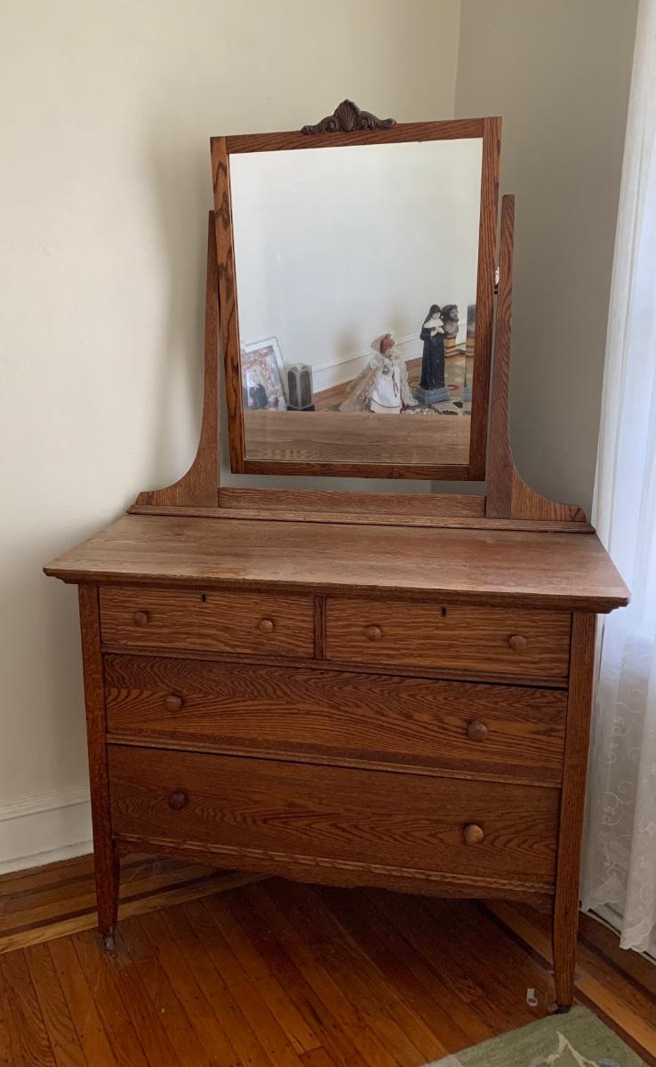 LOT 111R: Vintage Oak Bureau w/Mirror