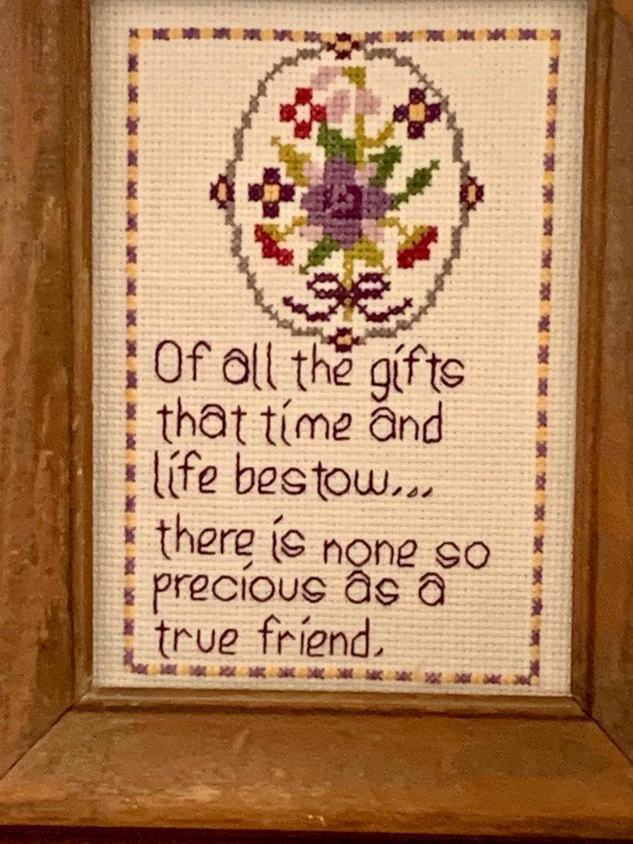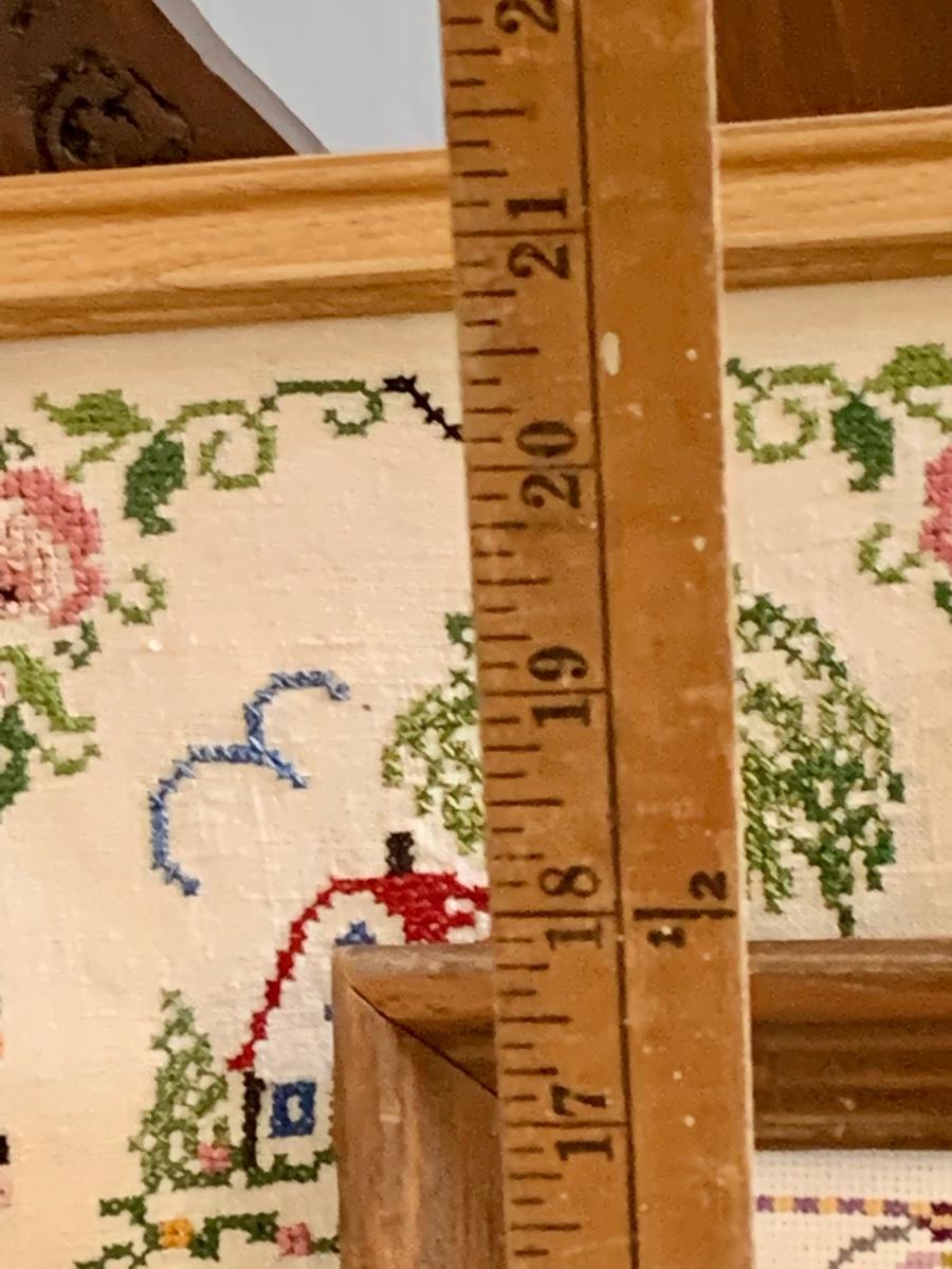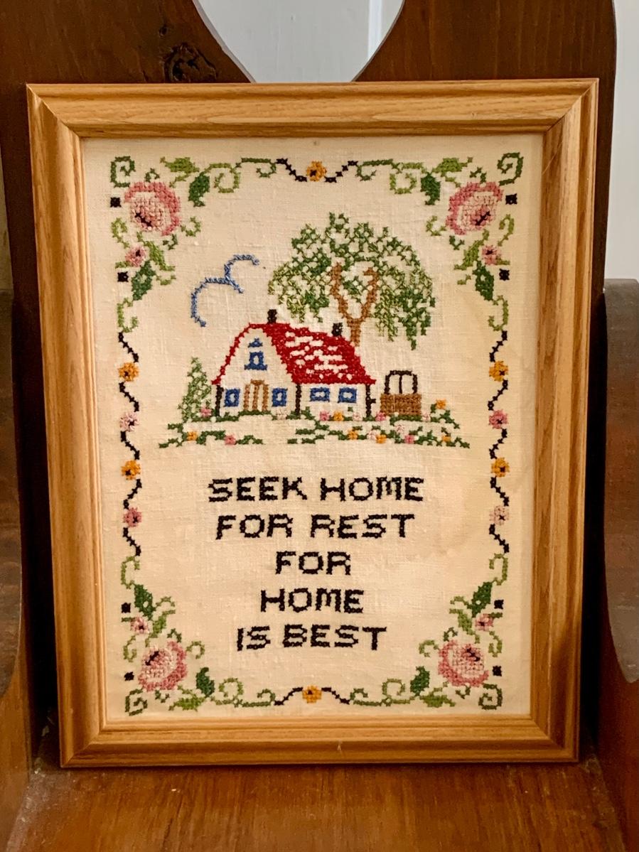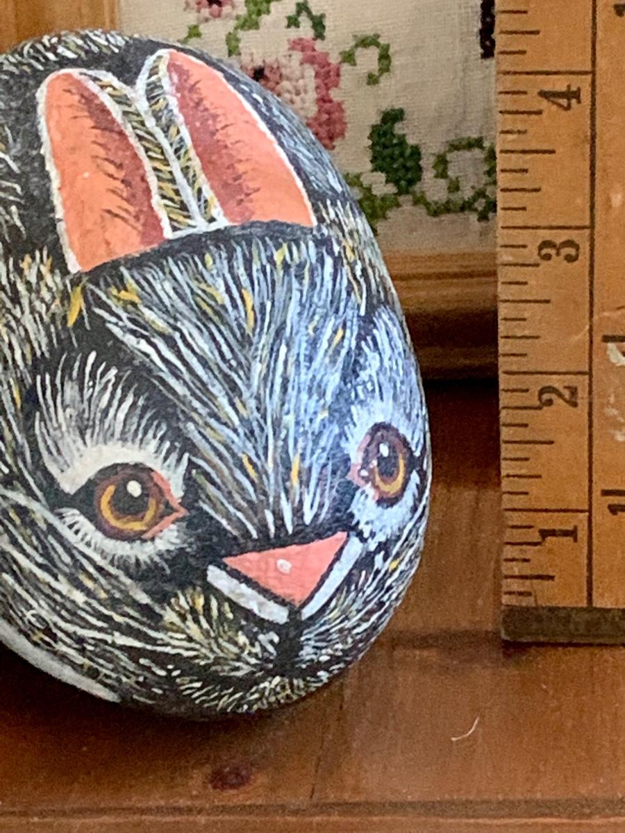 LOT 108R: Vintage Clock, Framed Cross Stich & Hand Painted Rabbit Stone & More