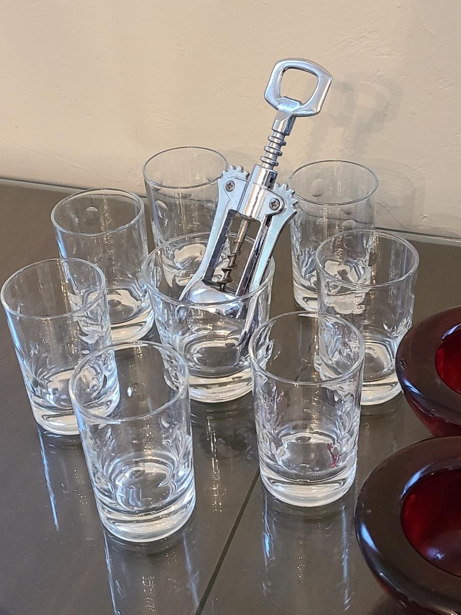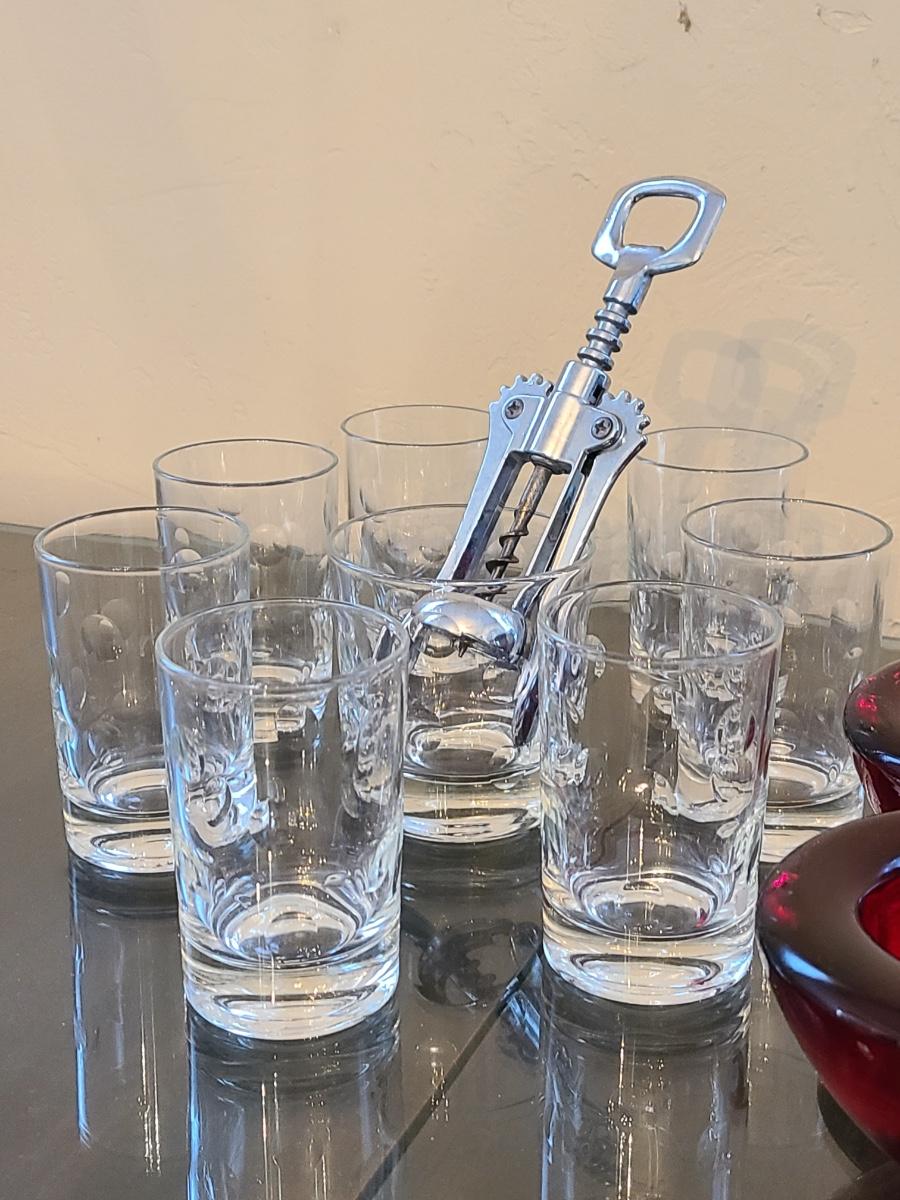 Fun vintage bar items. The glasses are heavier and made well, with circle cut-out decorations. Please see all pictures as they are the best representation of the items. The pictures show condition, measurements if taken, and what is included in the lot. Due to the large amount that we photograph and the time frame, we are not always able to take measurements. All items unless noted, are pre-owned and have been used. If you purchased furniture, you must bring help. We do not allow one person to carry large furniture out on their own. Bring help, tools and a truck for the safety of our client’s homes, and your personal safety. Any damages that result to the property including walls, and floors due to moving of the furniture will be charged to the buyer. Company policy. Thank you.