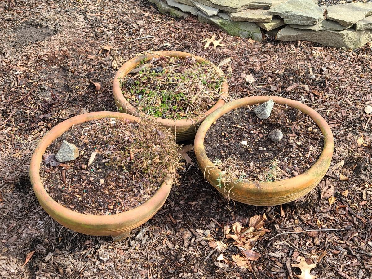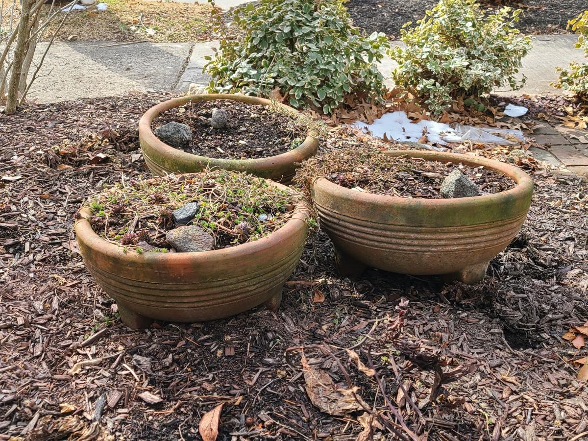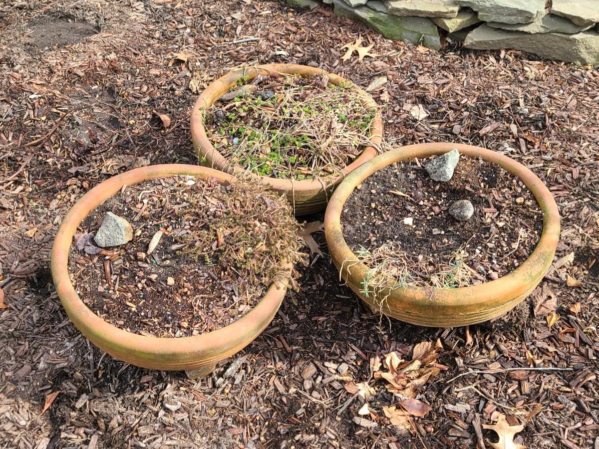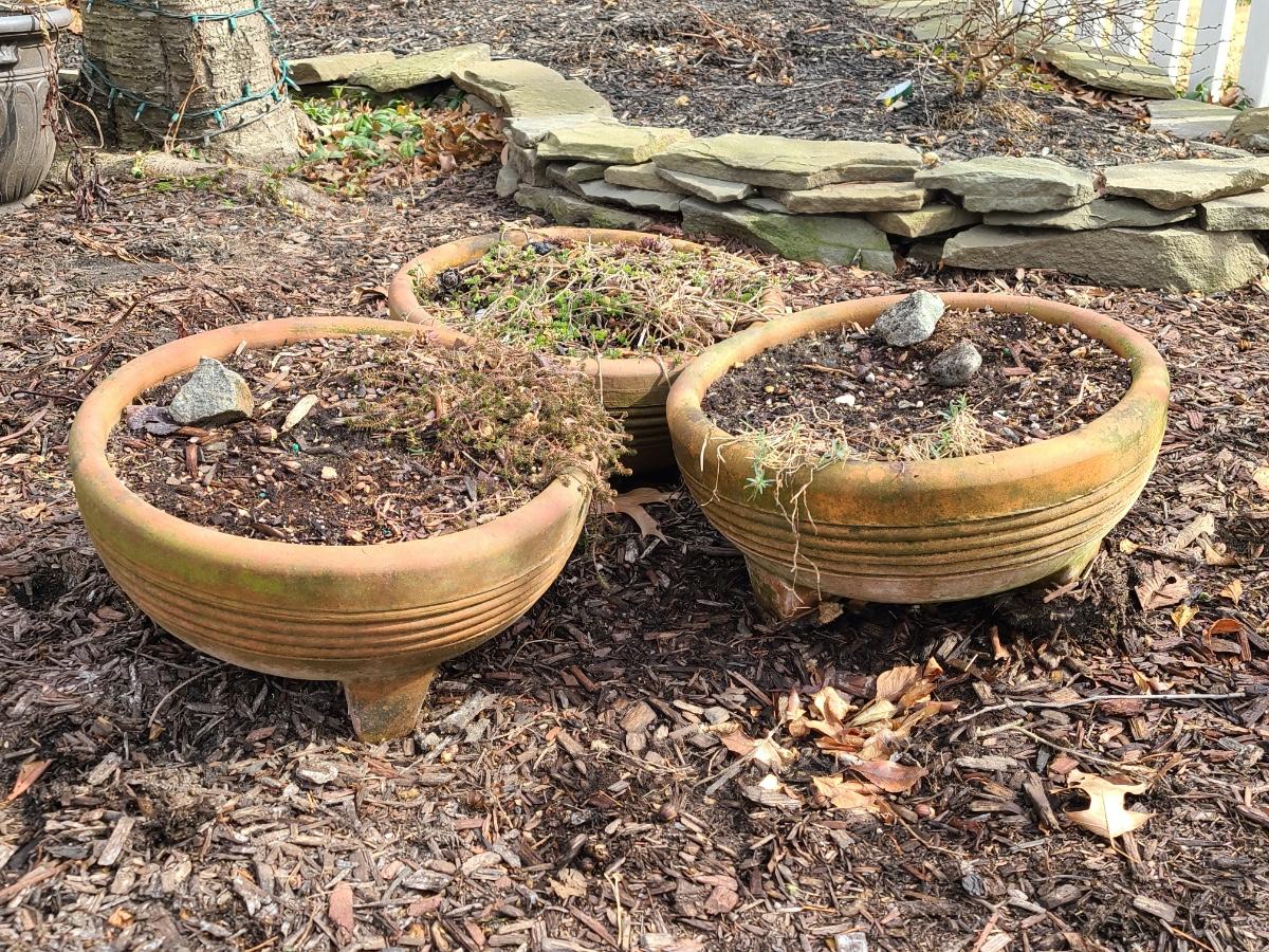 LOT 501: Terra Cotta Planters (Set of three with plants/soil)