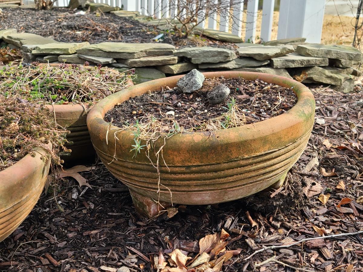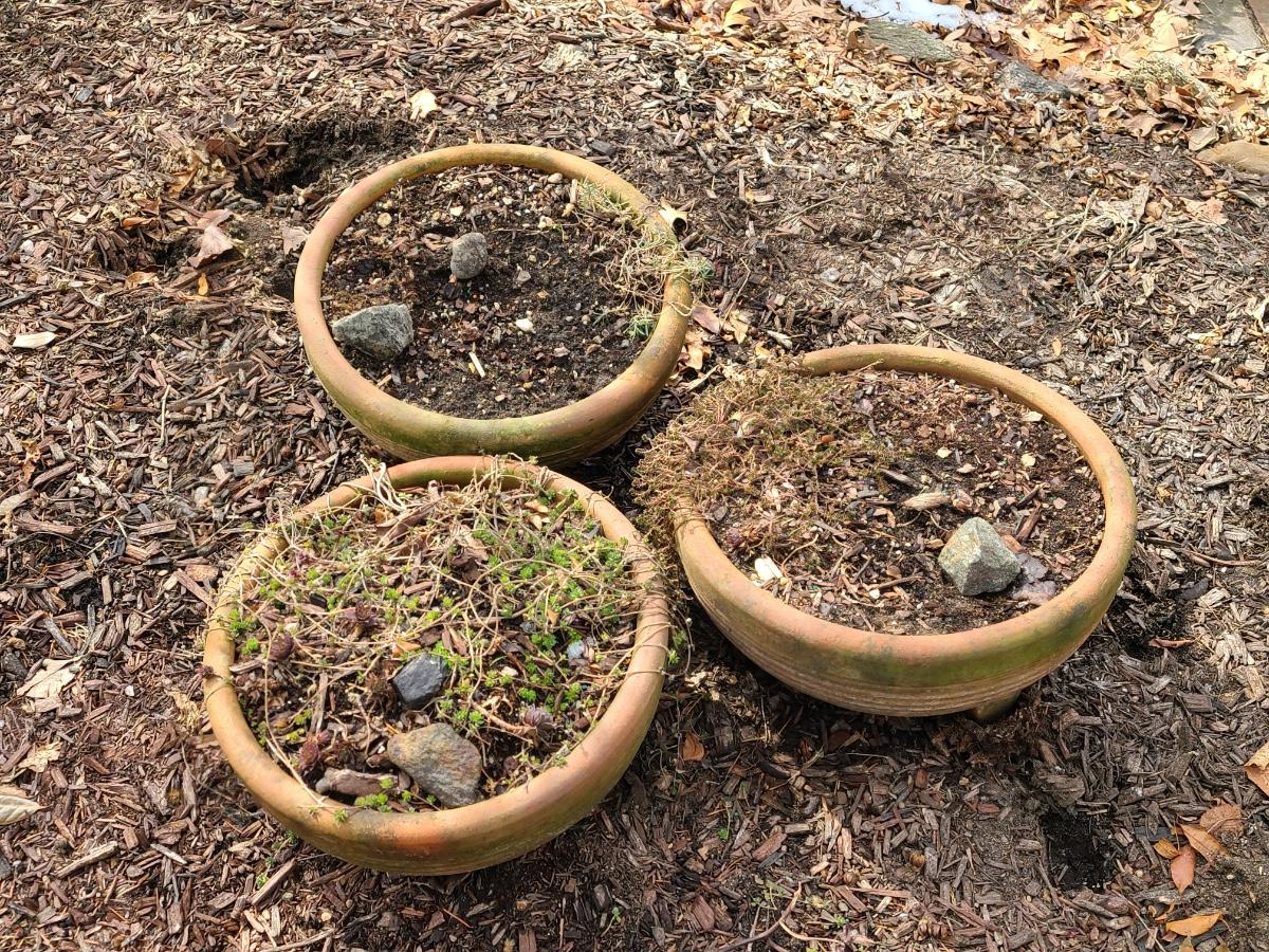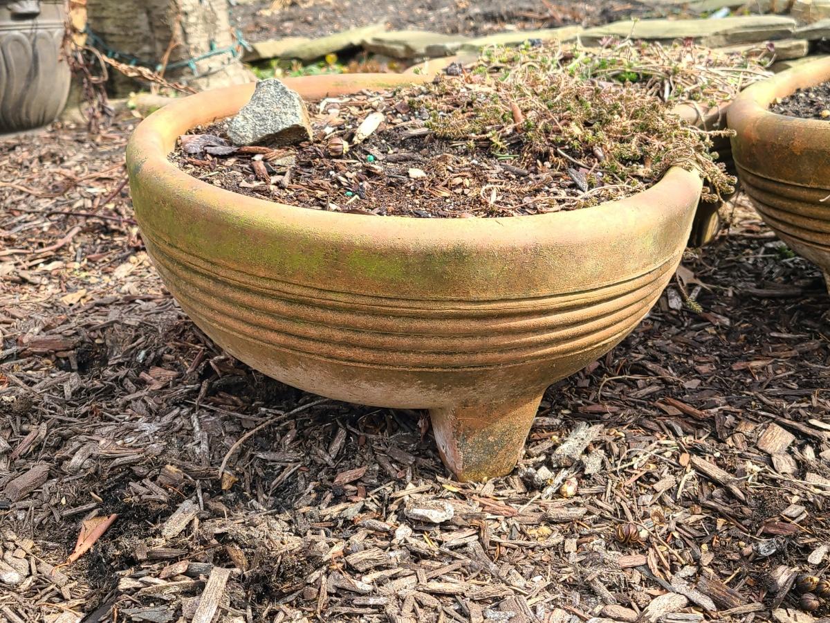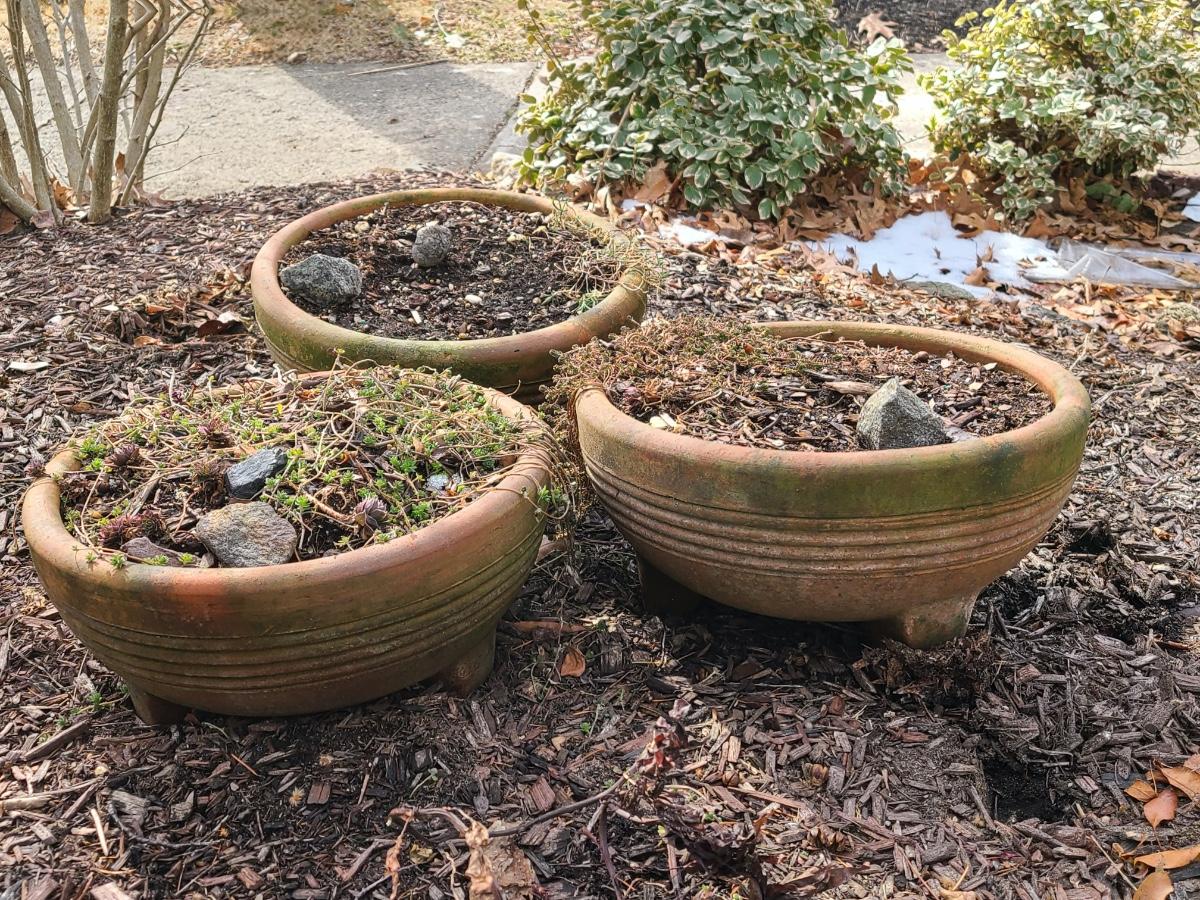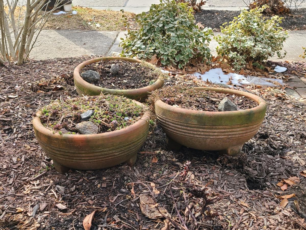 LOT 501: Terra Cotta Planters (Set of three with plants/soil)