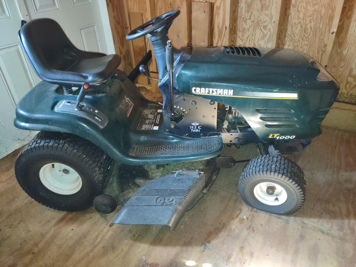 Craftsman Riding Mower. Will Not Start. Needs a New Battery. Please see all pictures as they are the best representation of the items. The pictures show condition, measurements if taken, and what is included in the lot. Due to the large amount that we photograph and the time frame, we are not always able to take measurements. All items unless noted, are pre-owned and have been used. If you purchased furniture, you must bring help. We do not allow one person to carry large furniture out on their own. Bring help, tools and a truck for the safety of our client’s homes, and your personal safety. Any damages that result to the property including walls, and floors due to moving of the furniture will be charged to the buyer. Company policy. Thank you.