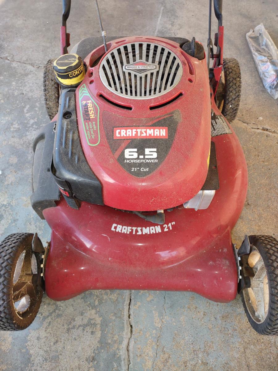 Craftsman 21" Gas Mower. Needs Gas But Pulls Freely. Please see all pictures as they are the best representation of the items. The pictures show condition, measurements if taken, and what is included in the lot. Due to the large amount that we photograph and the time frame, we are not always able to take measurements. All items unless noted, are pre-owned and have been used. If you purchased furniture, you must bring help. We do not allow one person to carry large furniture out on their own. Bring help, tools and a truck for the safety of our client’s homes, and your personal safety. Any damages that result to the property including walls, and floors due to moving of the furniture will be charged to the buyer. Company policy. Thank you.
