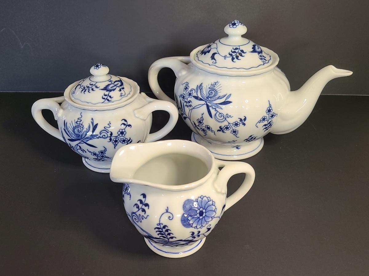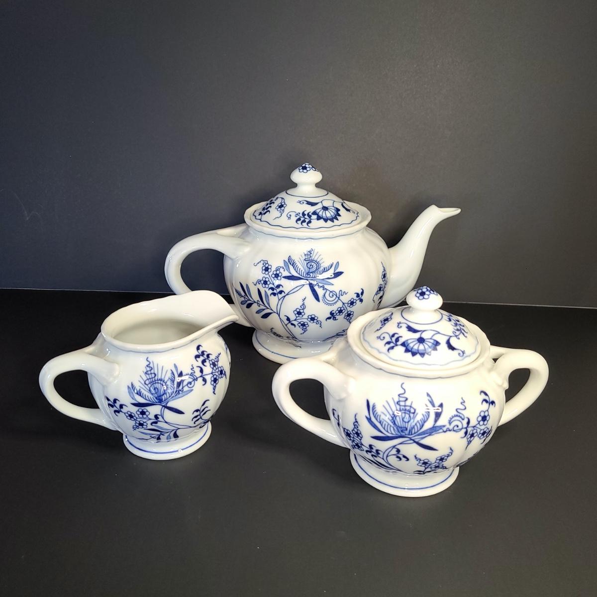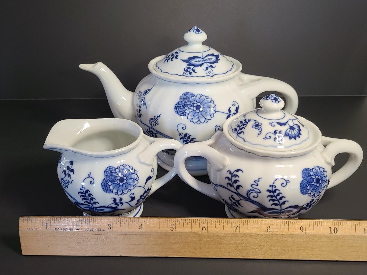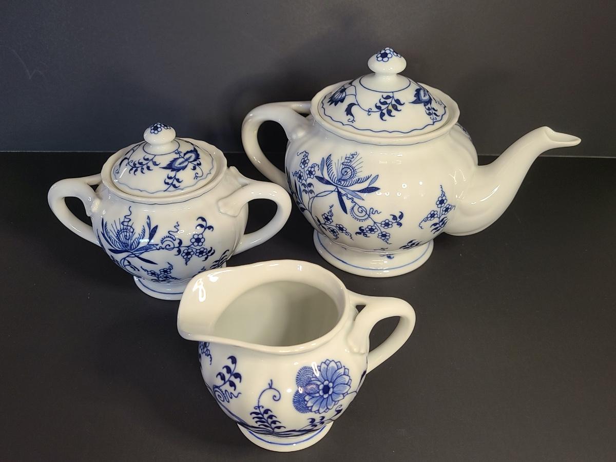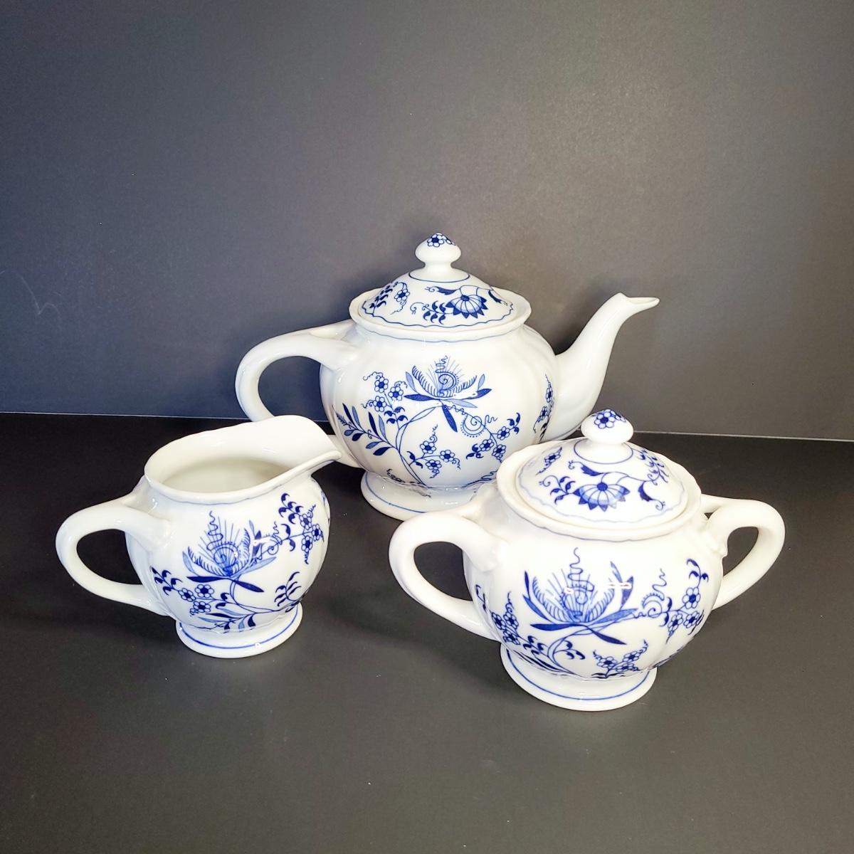LOT 5S: Blue Danube, Blue Onion Teapot, Sugar & Creamer Set