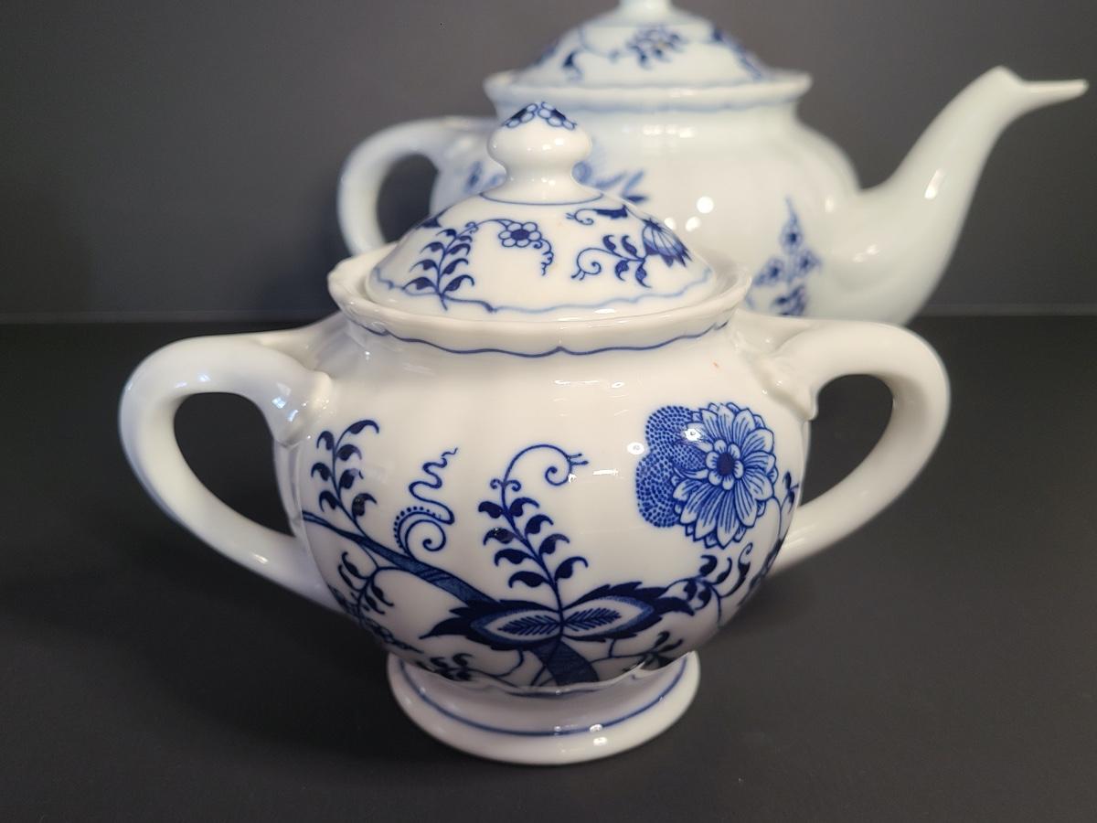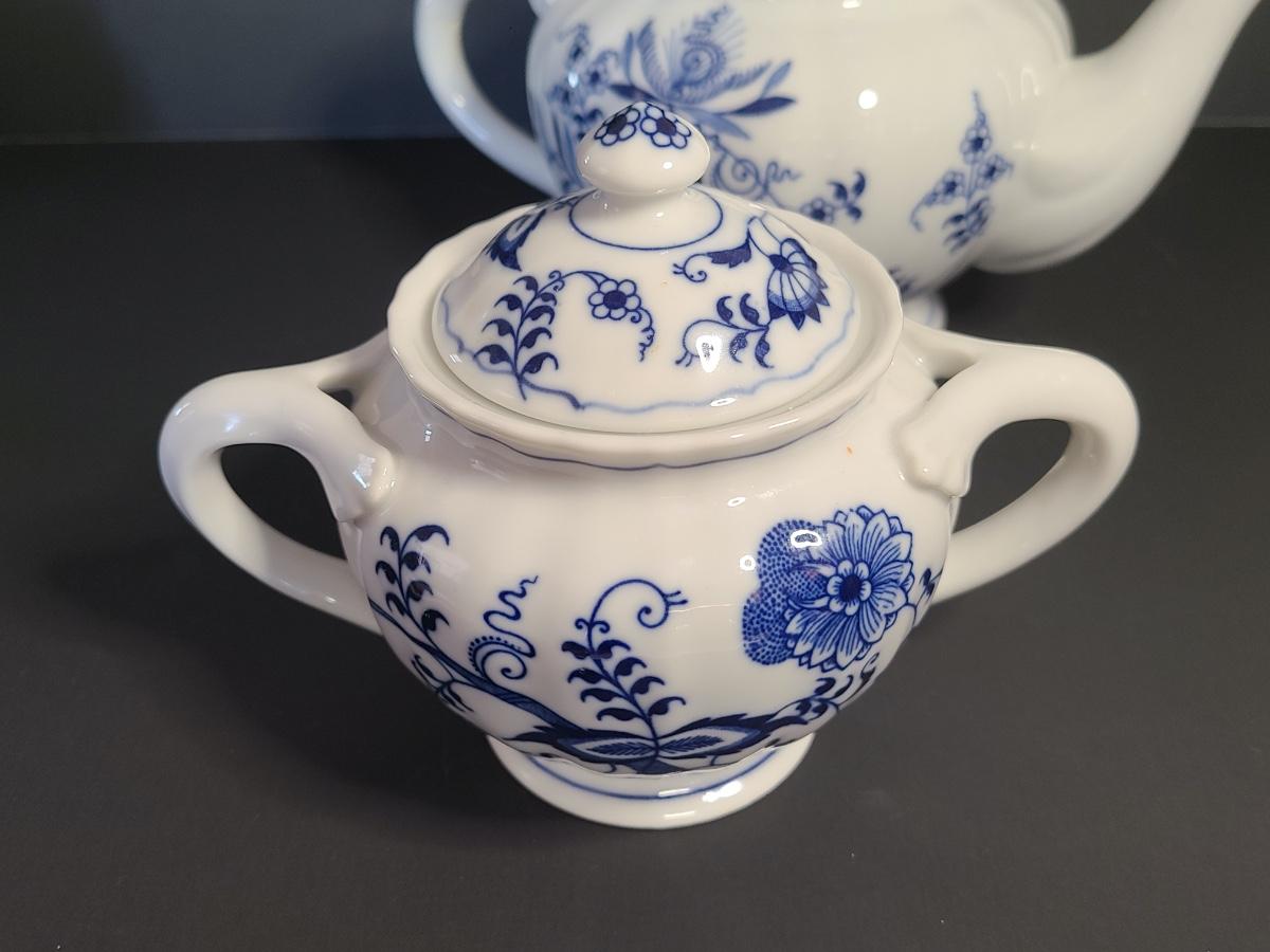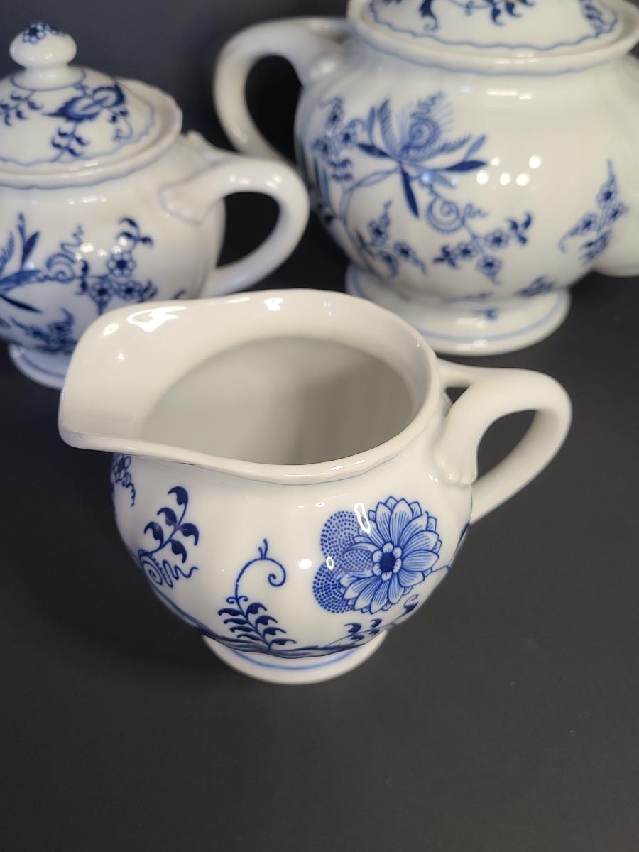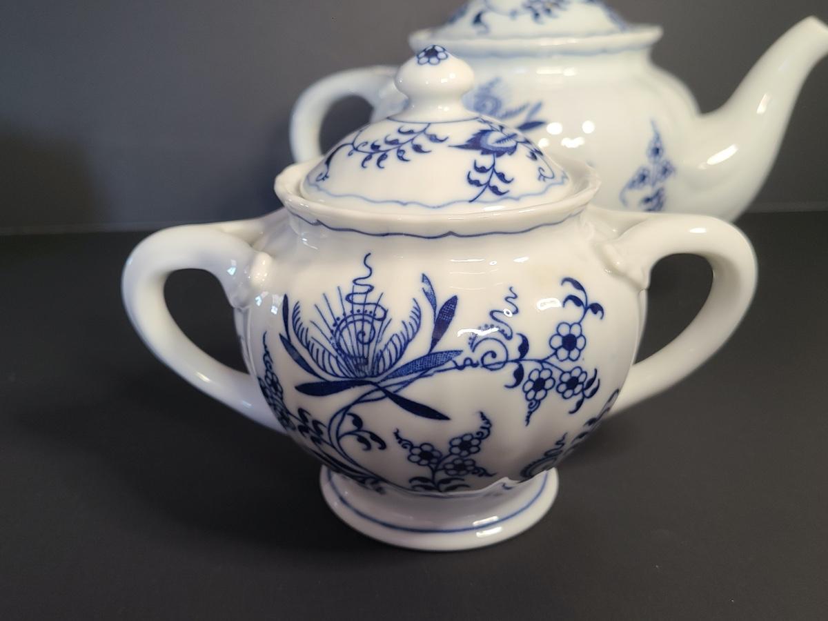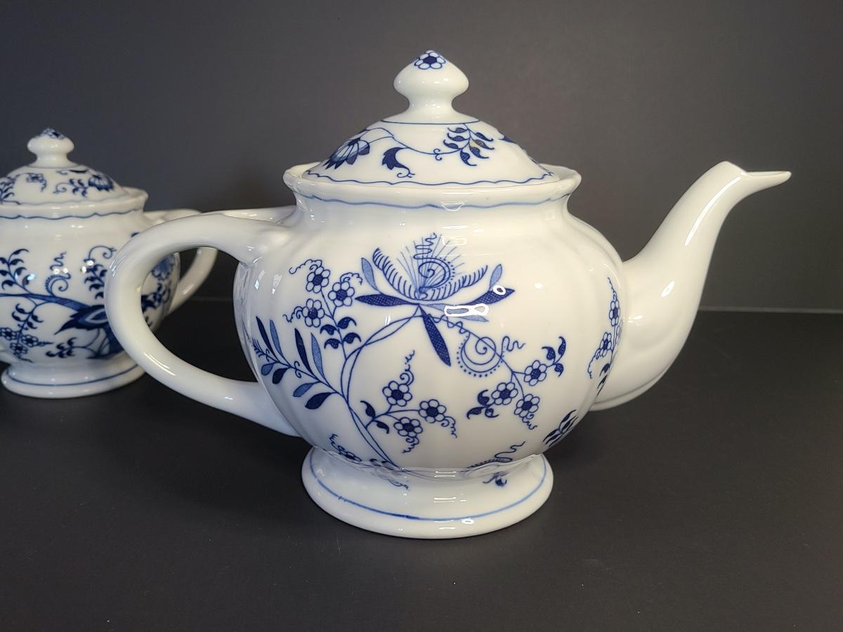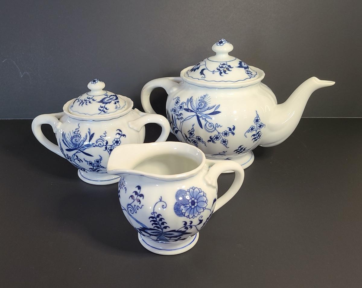 LOT 5S: Blue Danube, Blue Onion Teapot, Sugar & Creamer Set