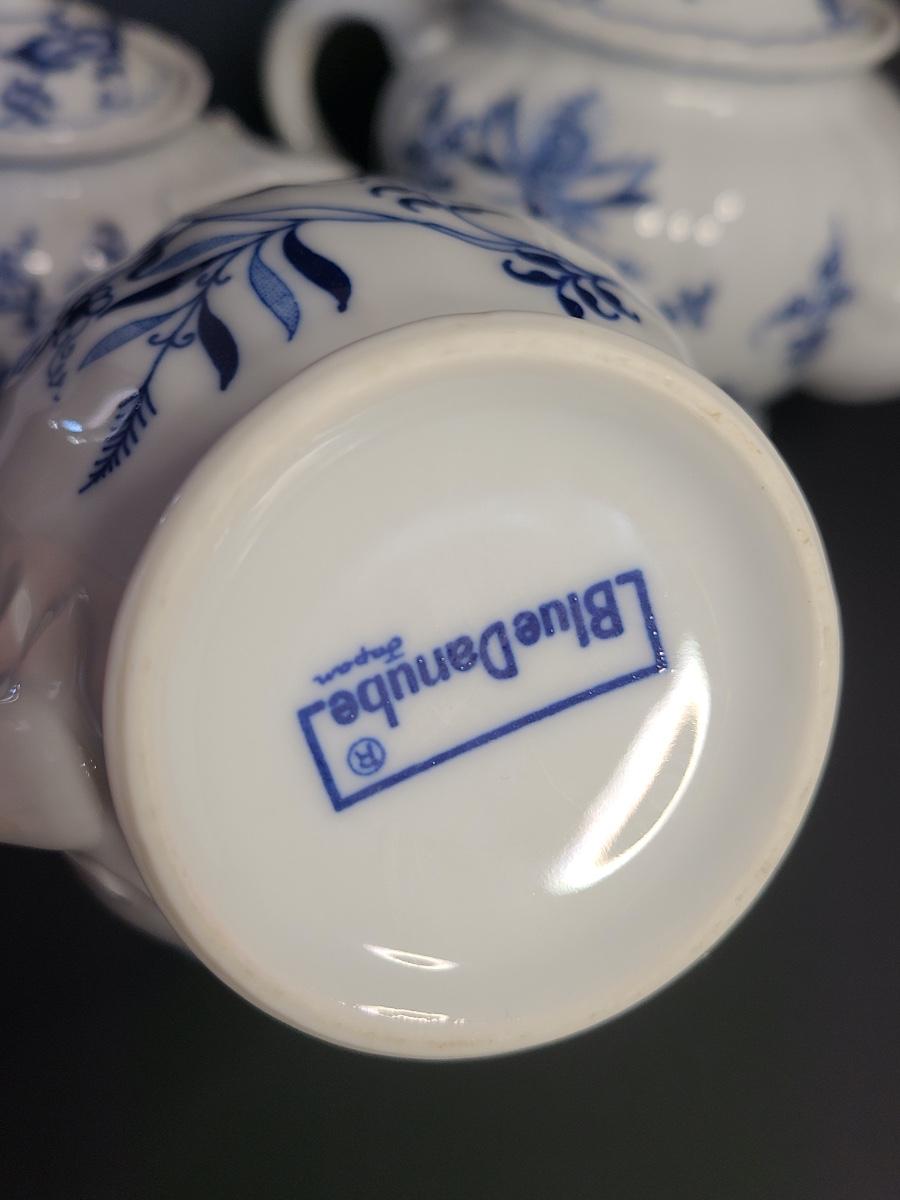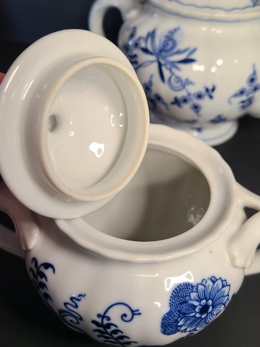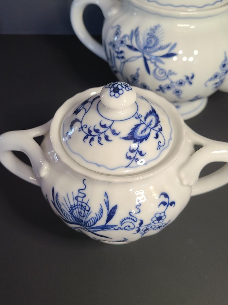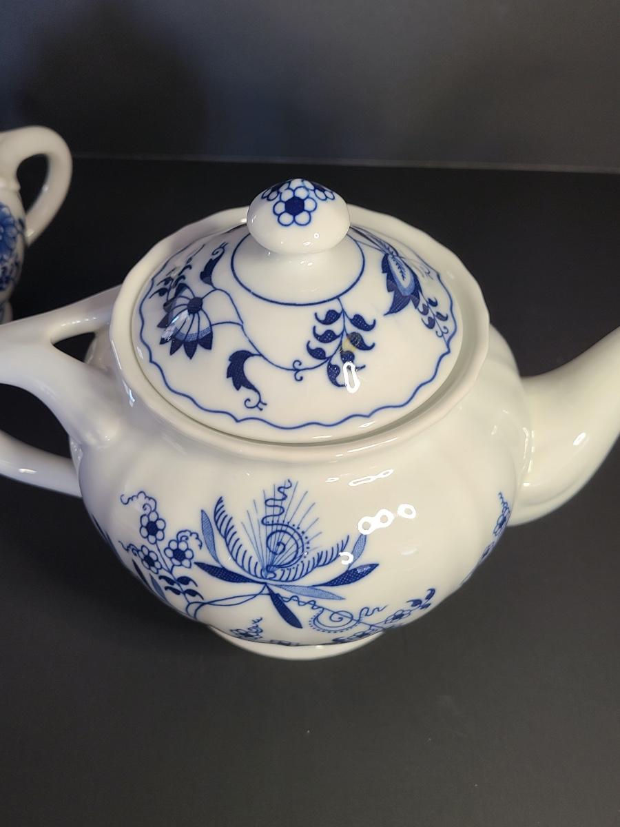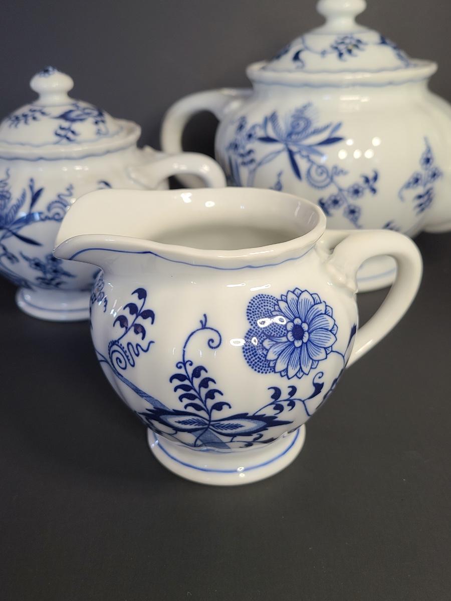 LOT 5S: Blue Danube, Blue Onion Teapot, Sugar & Creamer Set