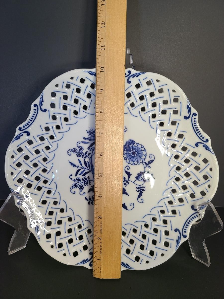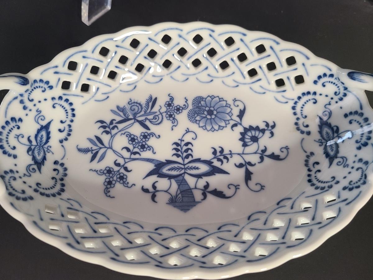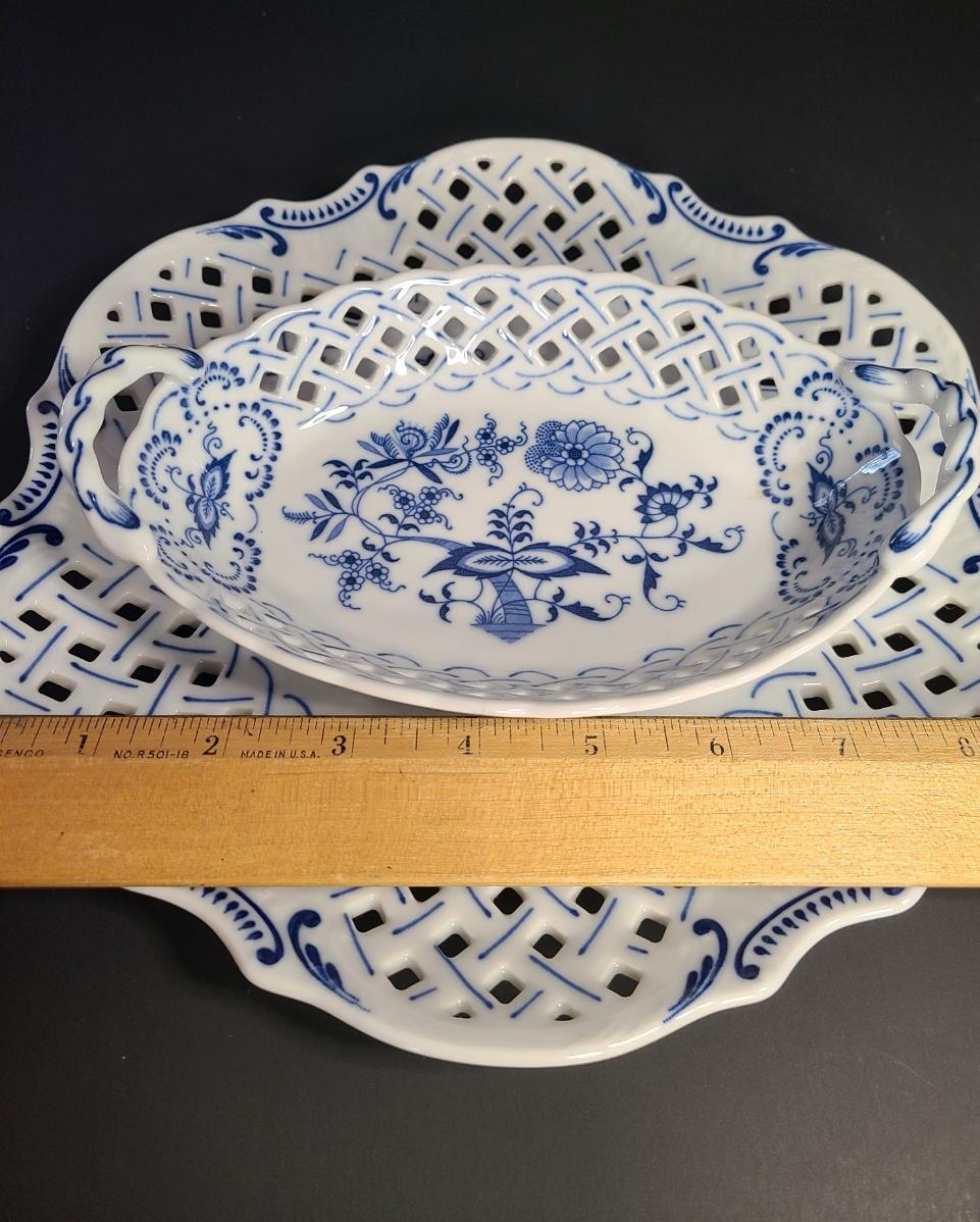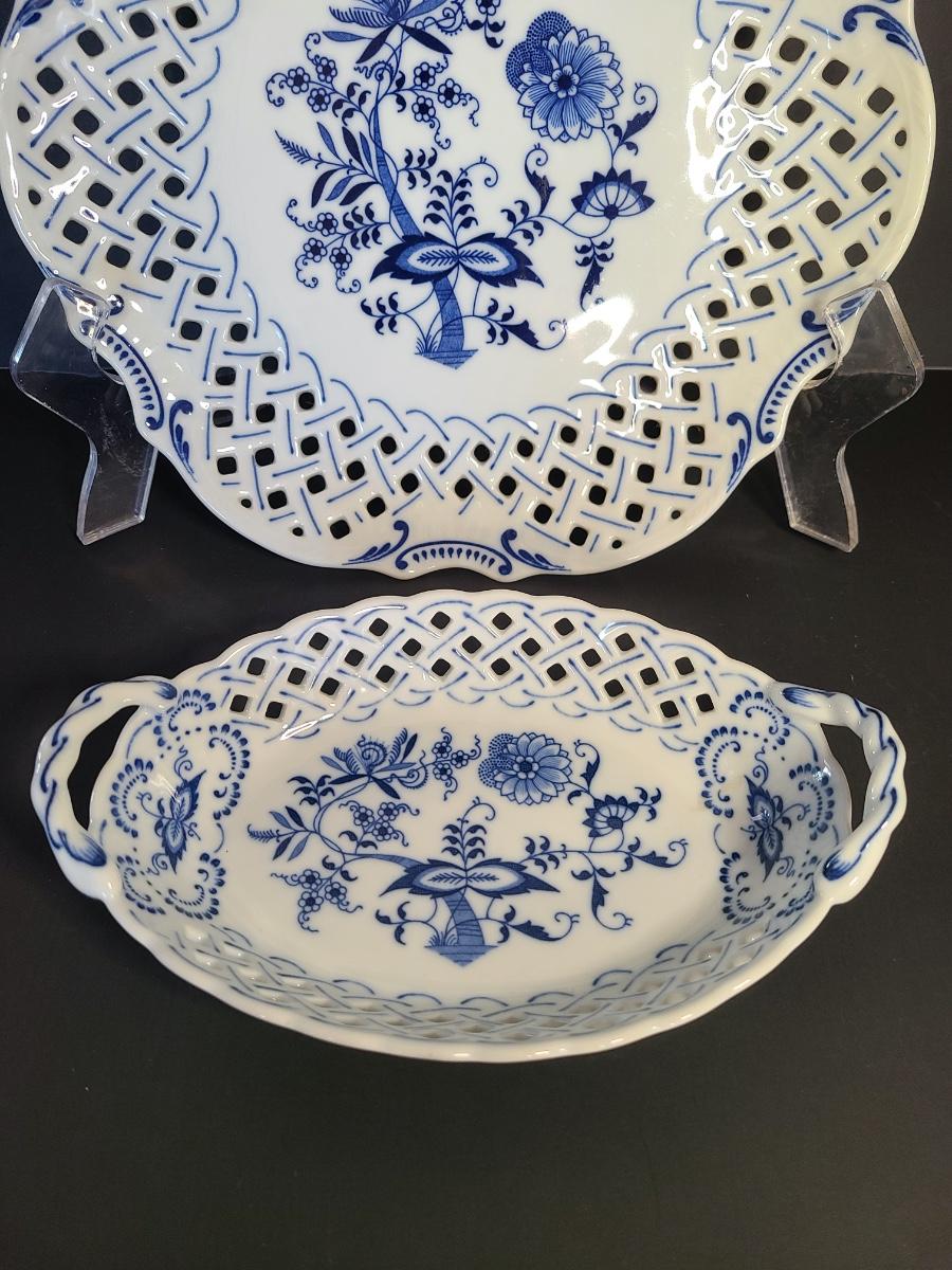 LOT 6S: Blue Danube, Blue Onion Lace Edge Serving Plate & Vegetable Dish