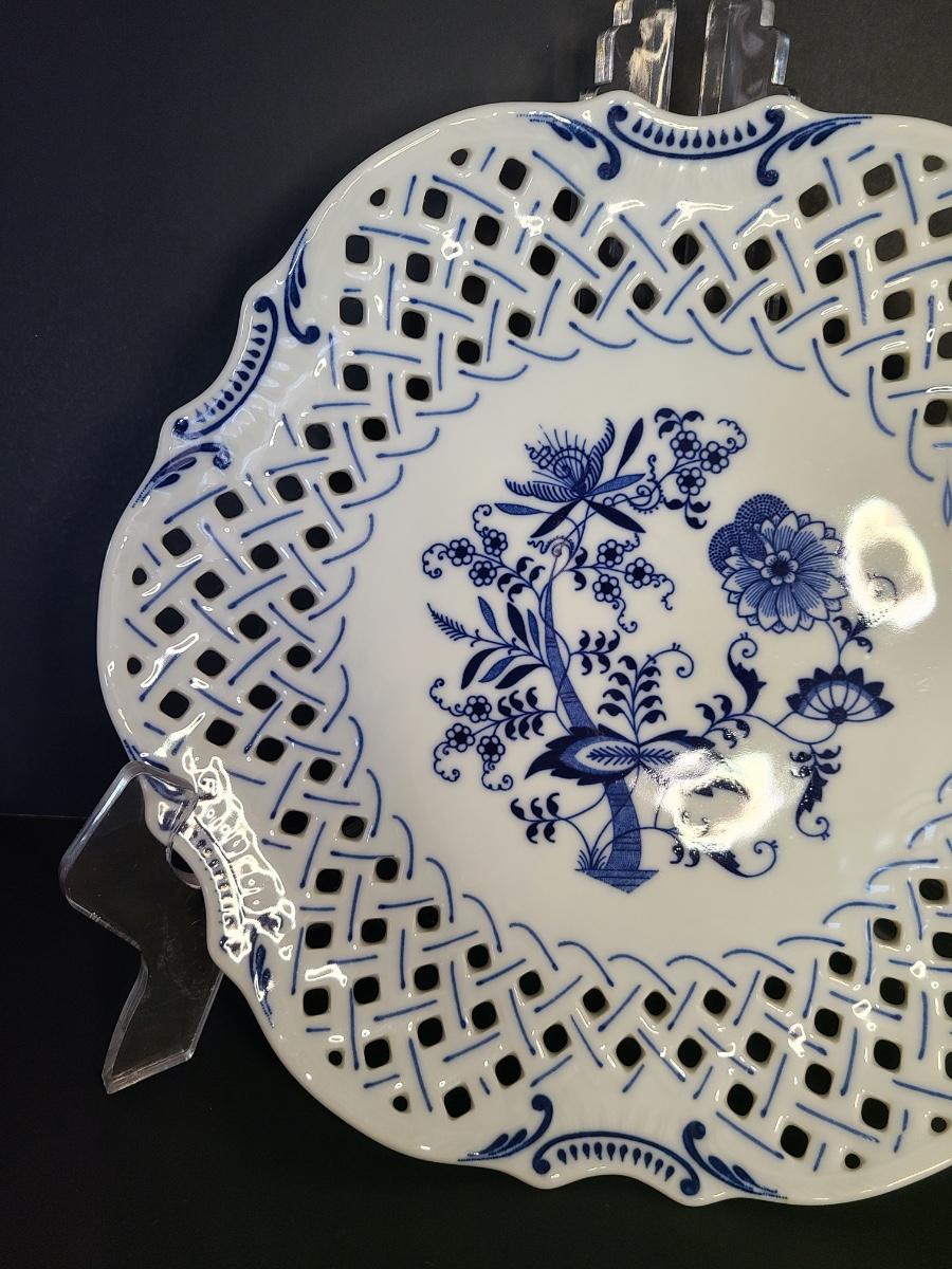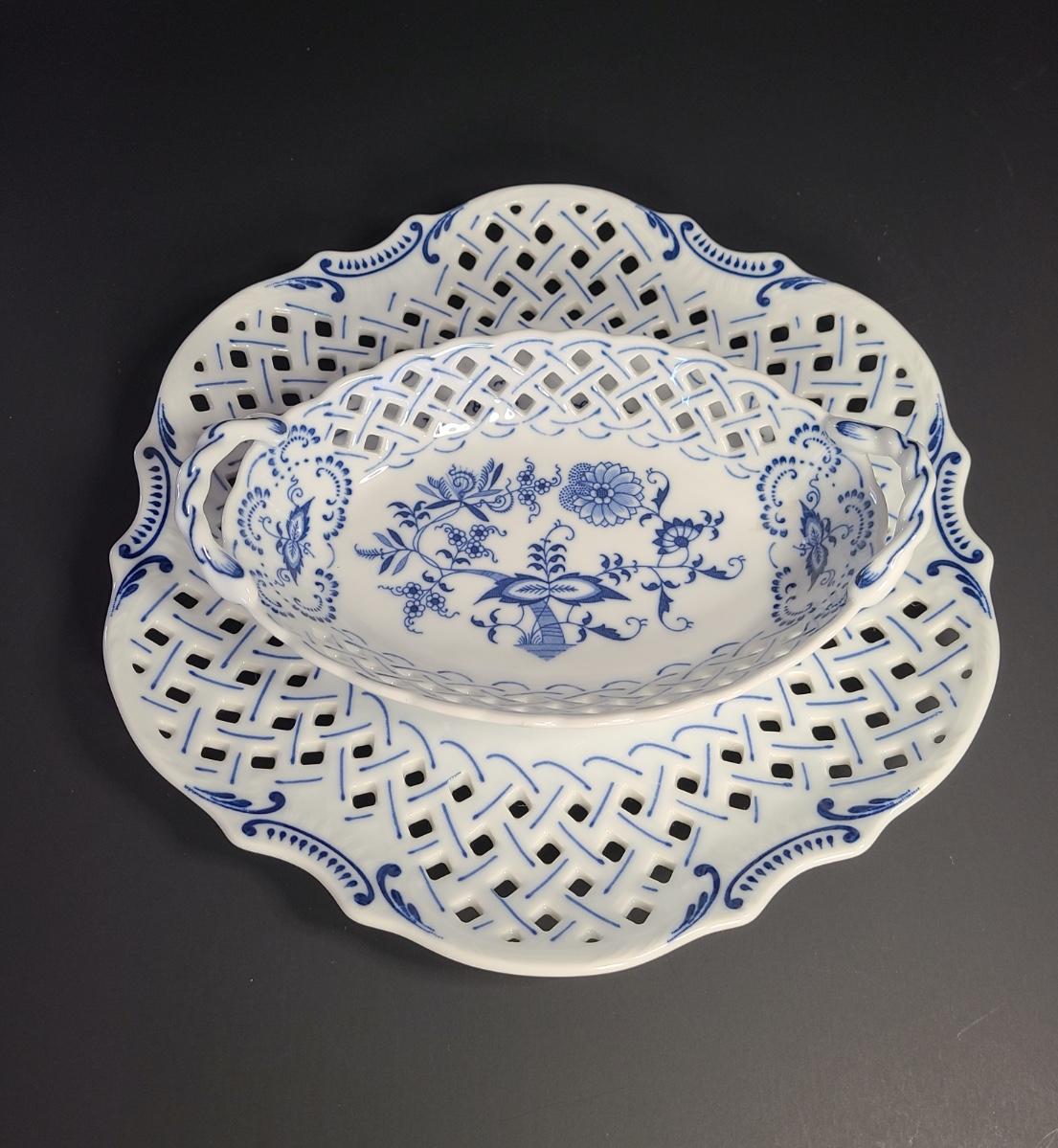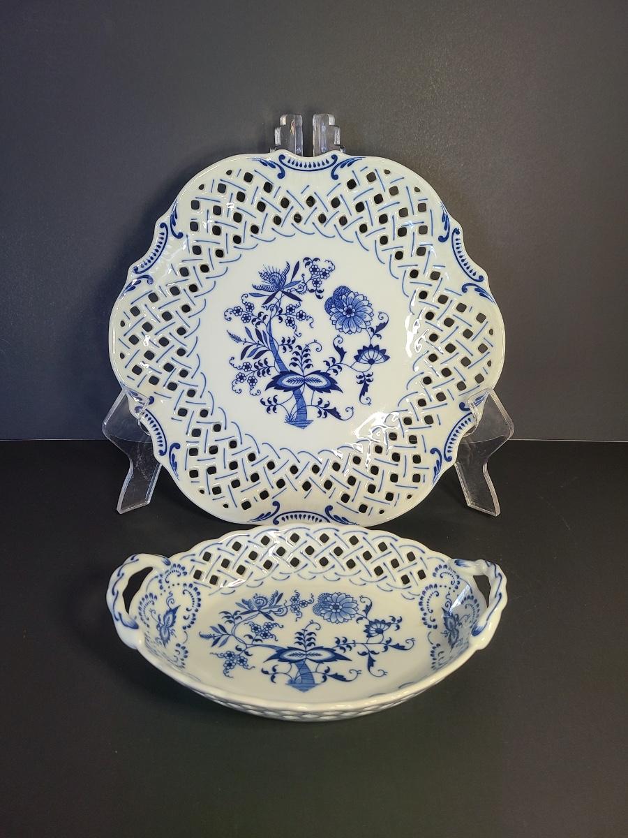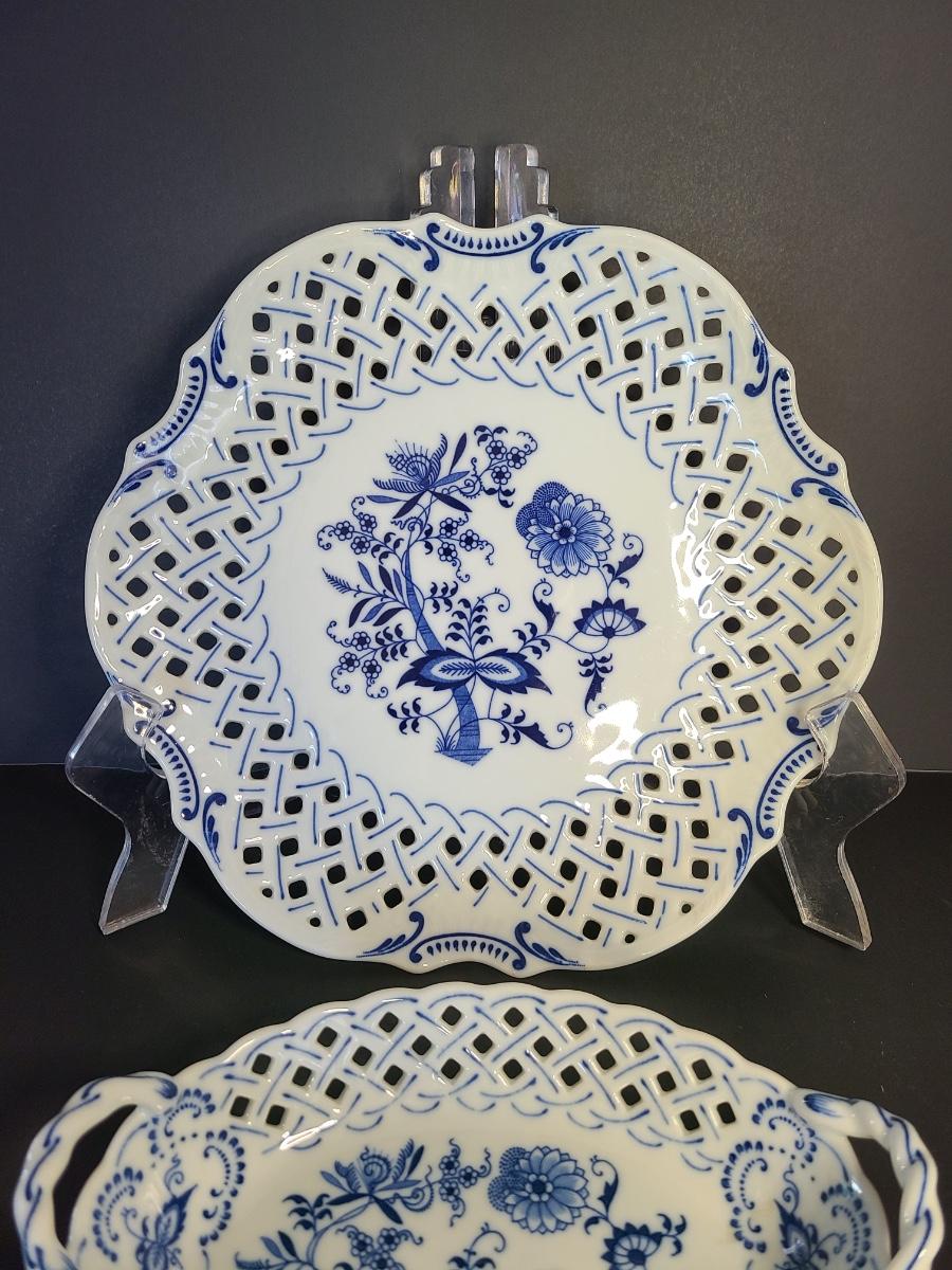 LOT 6S: Blue Danube, Blue Onion Lace Edge Serving Plate & Vegetable Dish