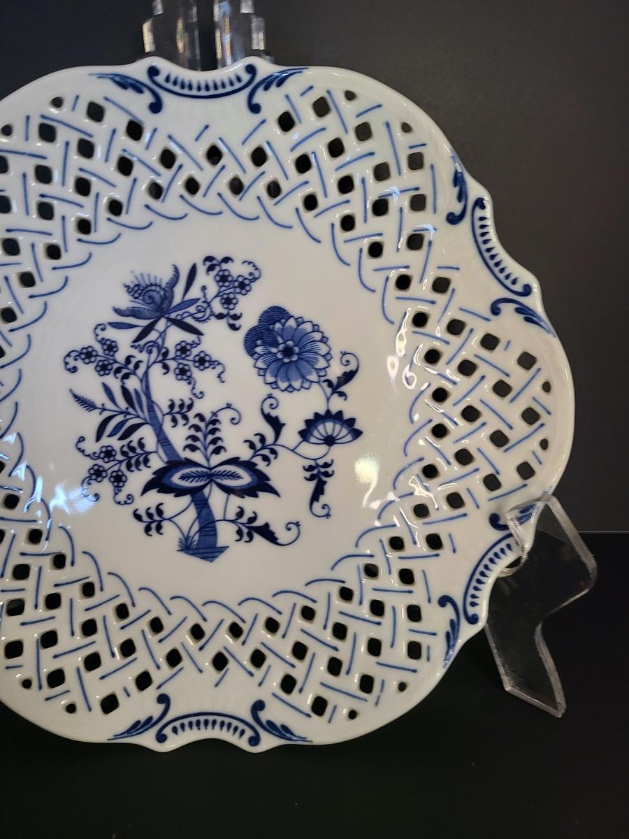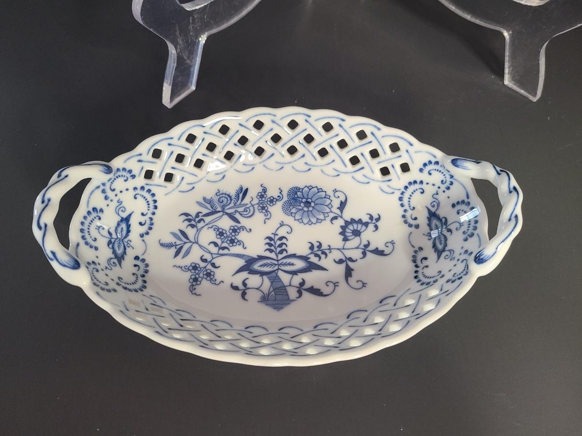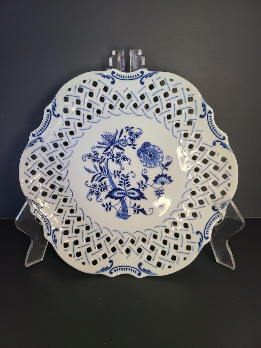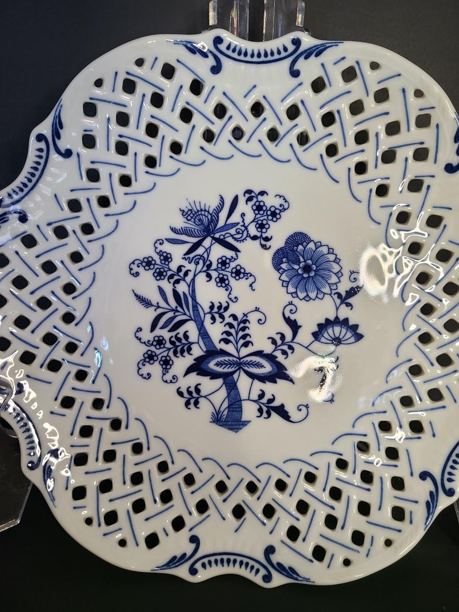 LOT 6S: Blue Danube, Blue Onion Lace Edge Serving Plate & Vegetable Dish