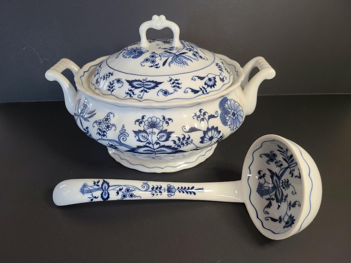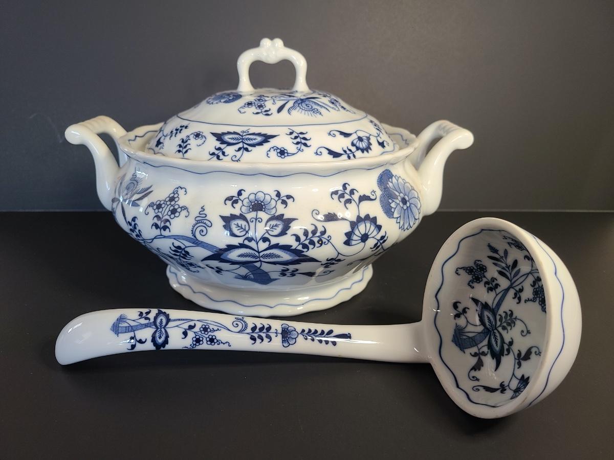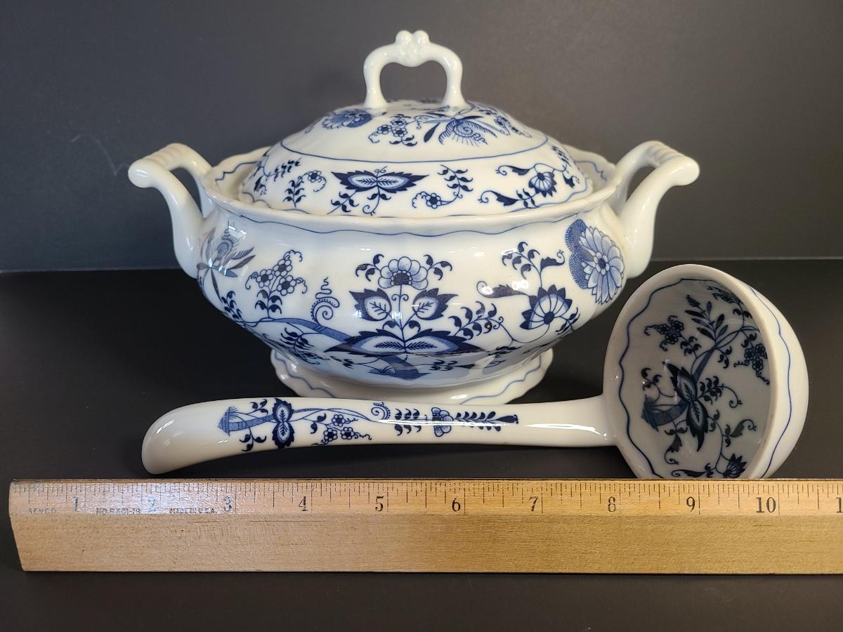 LOT 8S: Blue Danube, Blue Onion Soup Tureen and Ladle