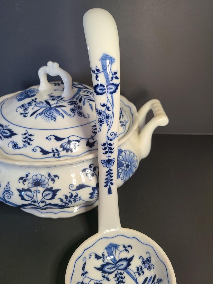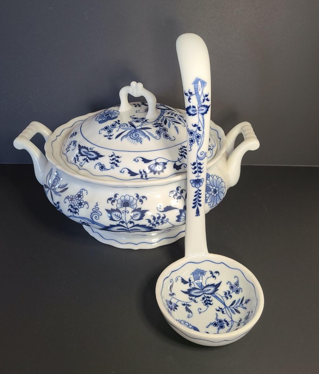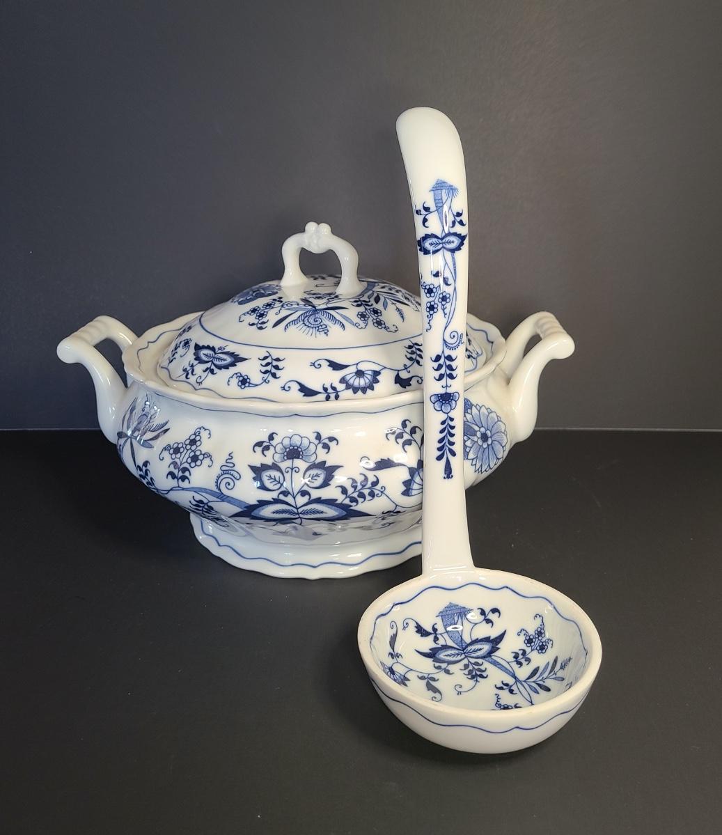 LOT 8S: Blue Danube, Blue Onion Soup Tureen and Ladle