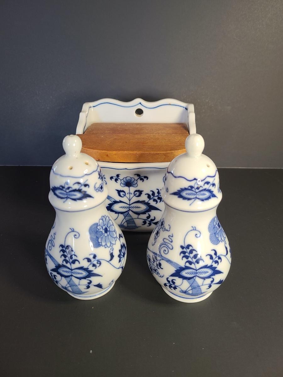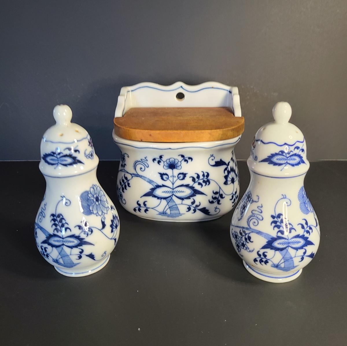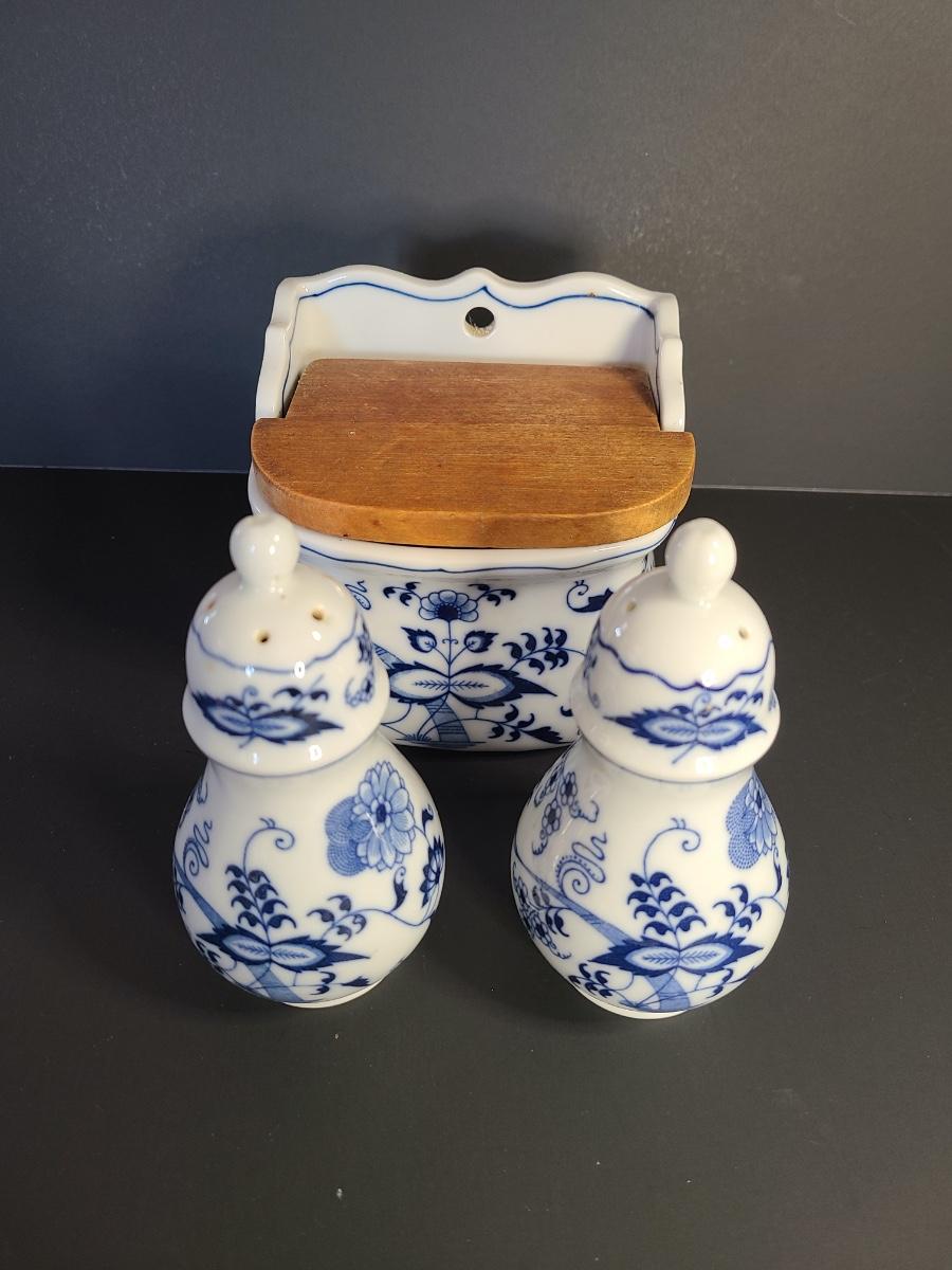 LOT 12S: Blue Danube, Blue Onion Salt Wall Well, and Salt/Pepper Set