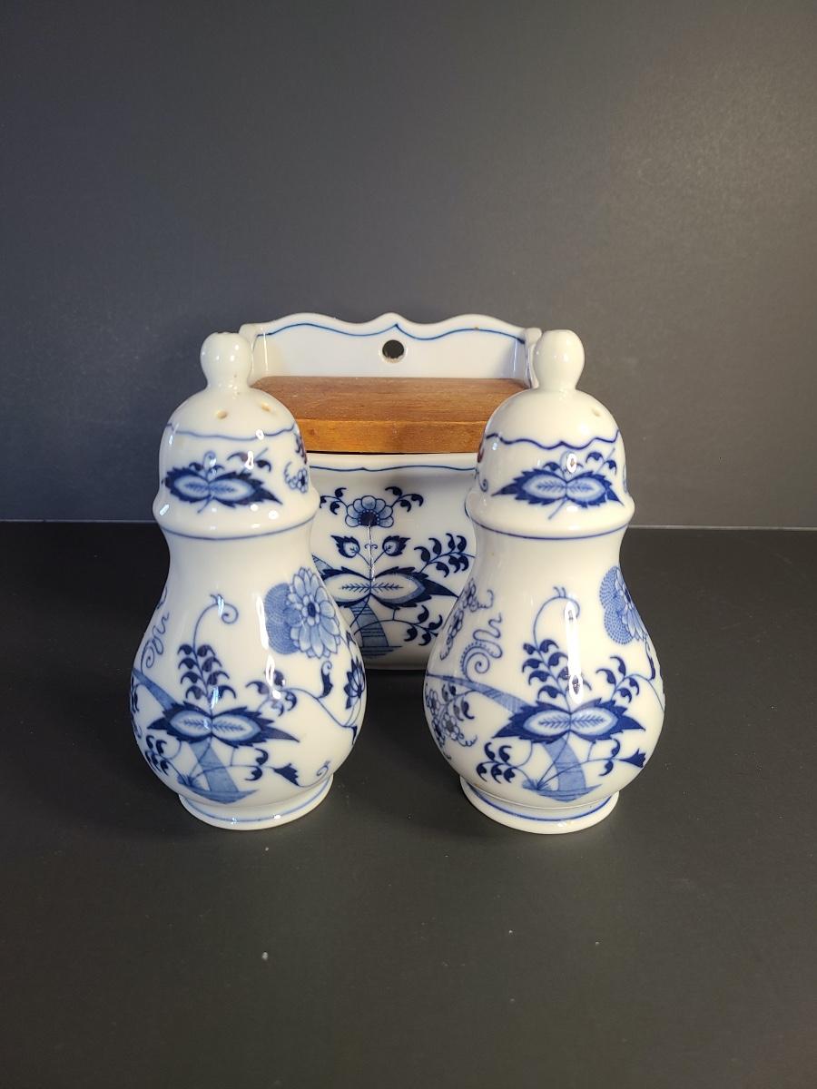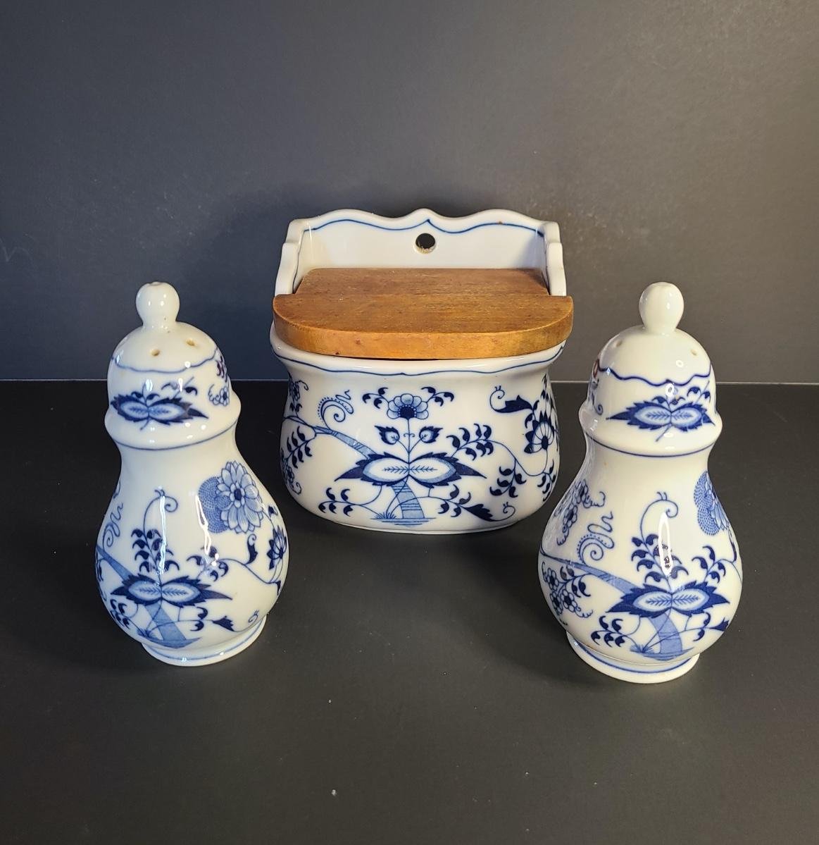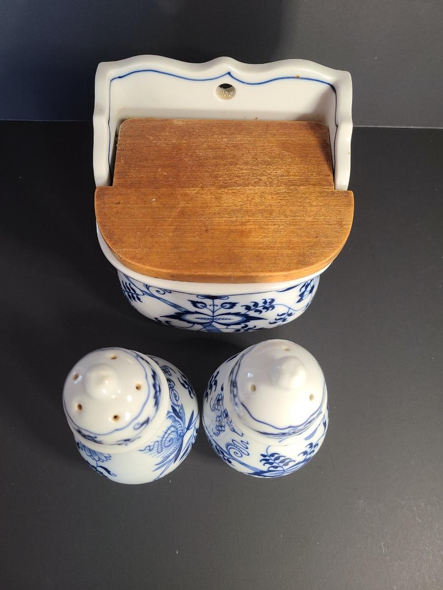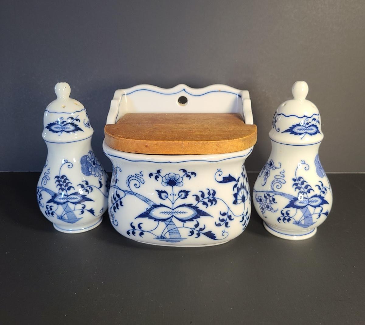 LOT 12S: Blue Danube, Blue Onion Salt Wall Well, and Salt/Pepper Set