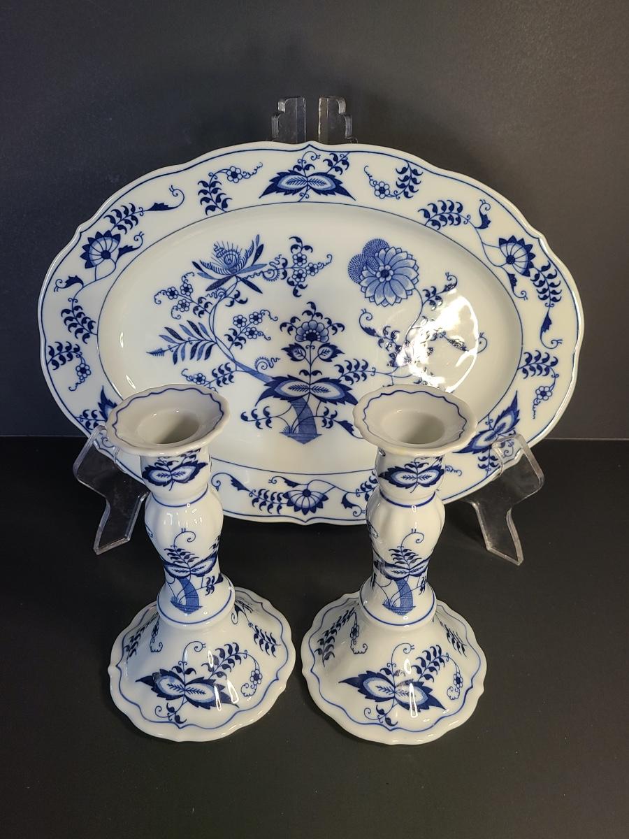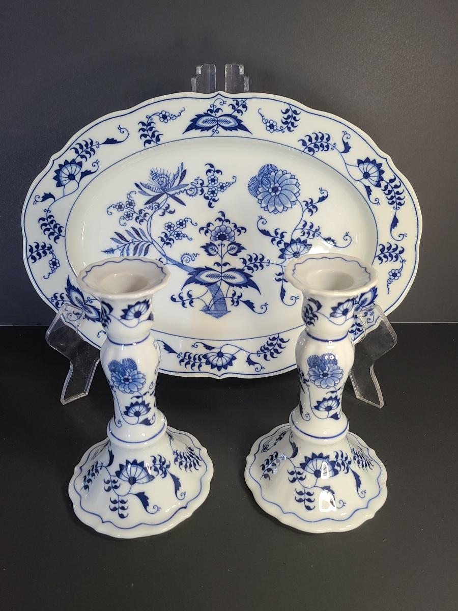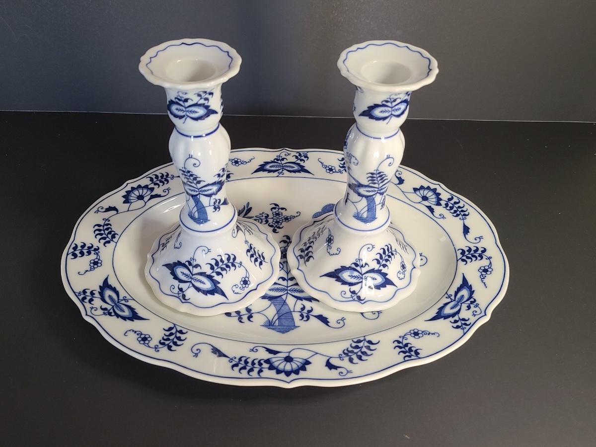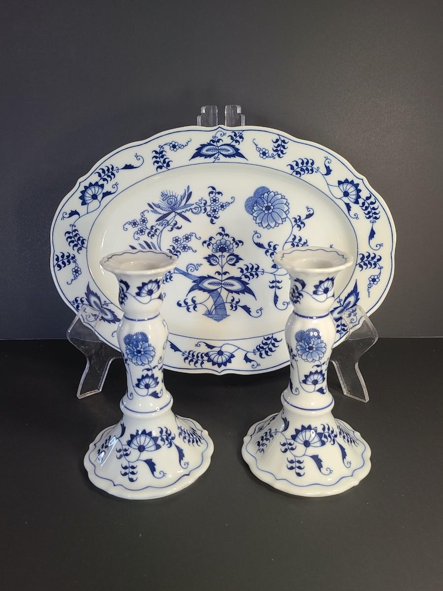 LOT 15S: Blue Danube, Blue Onion Serving Platter and Candlesticks
