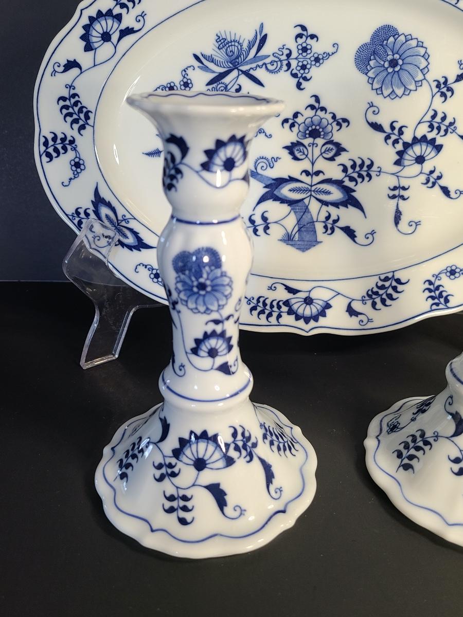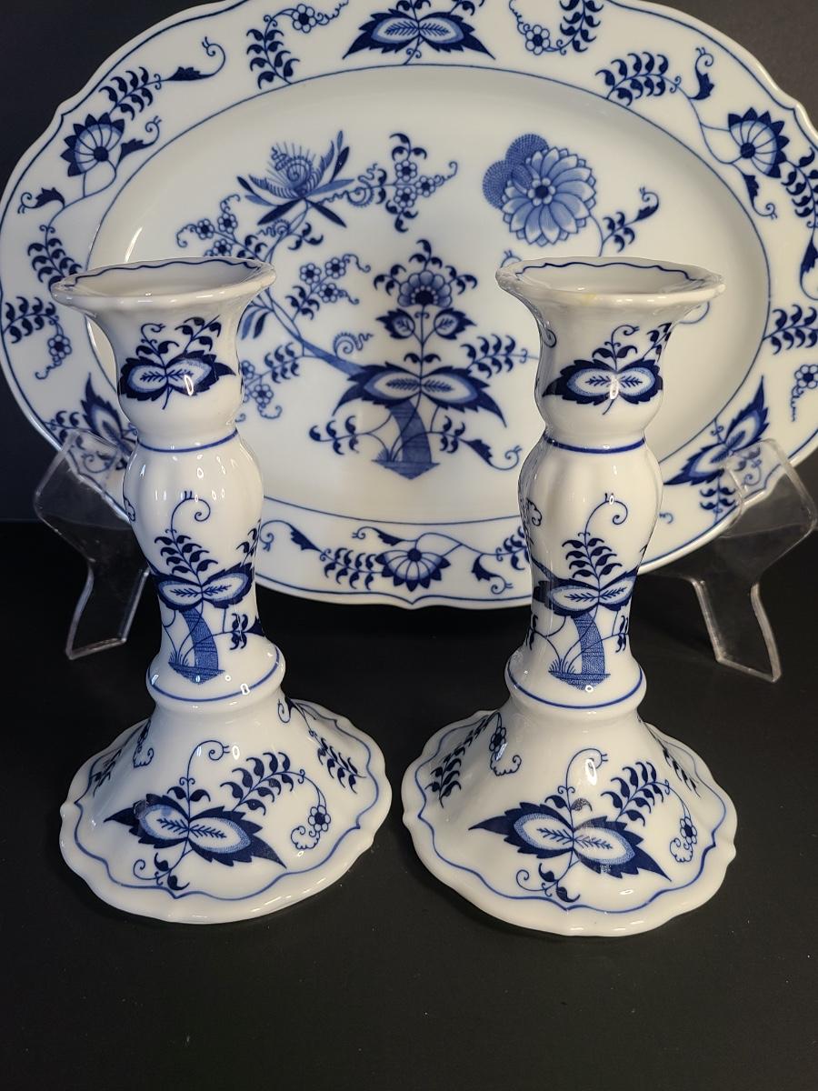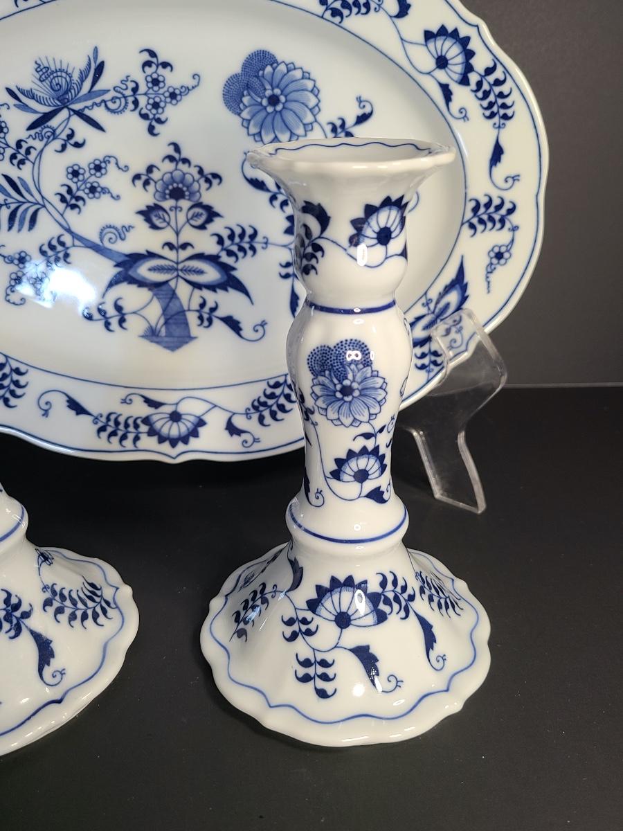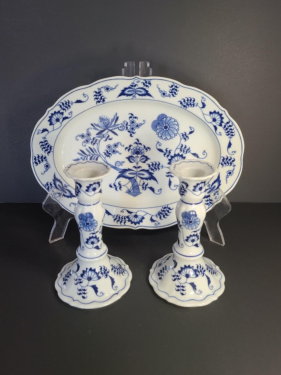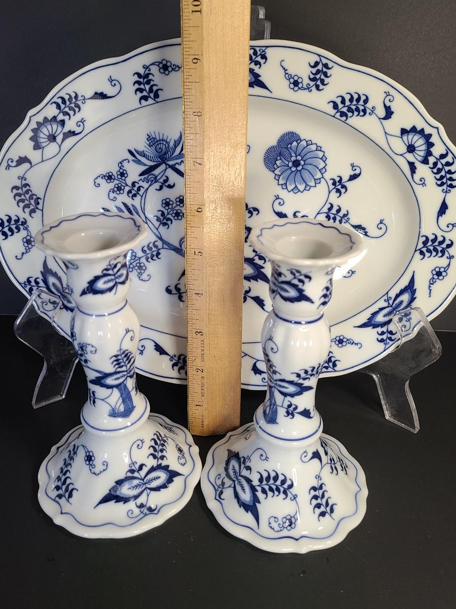 LOT 15S: Blue Danube, Blue Onion Serving Platter and Candlesticks