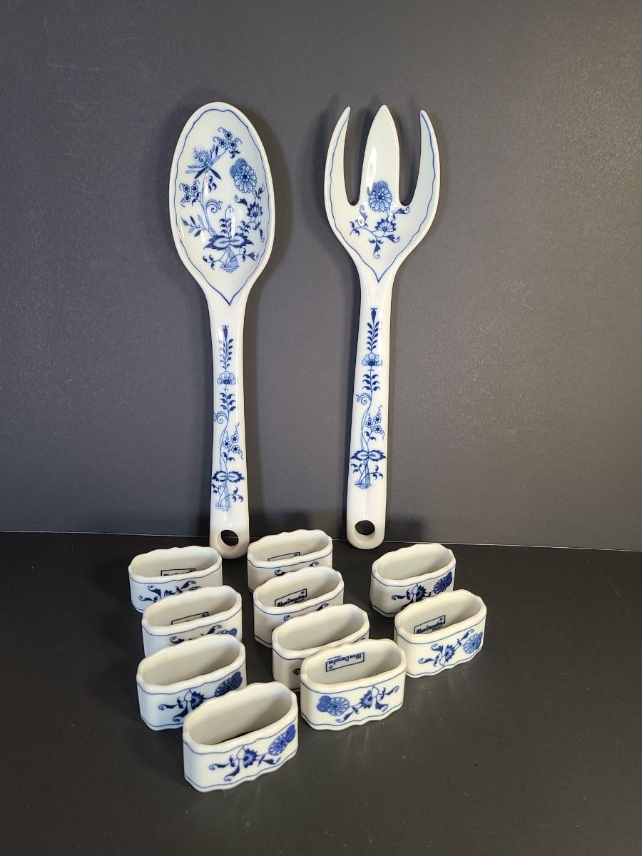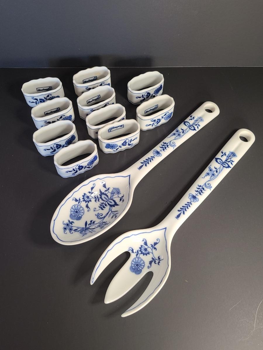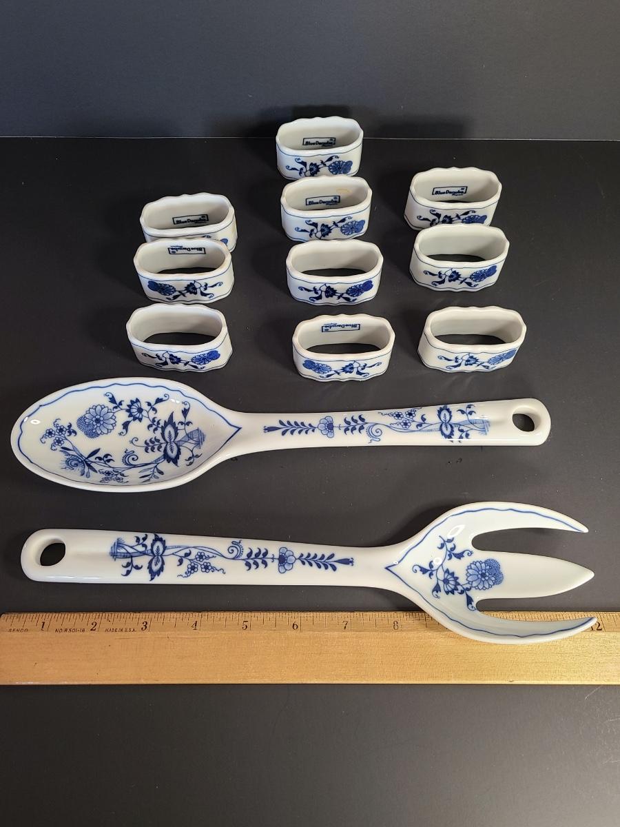LOT 16S: Blue Danube Napkin Rings and Serving Fork/Spoon
