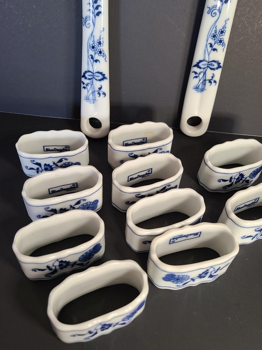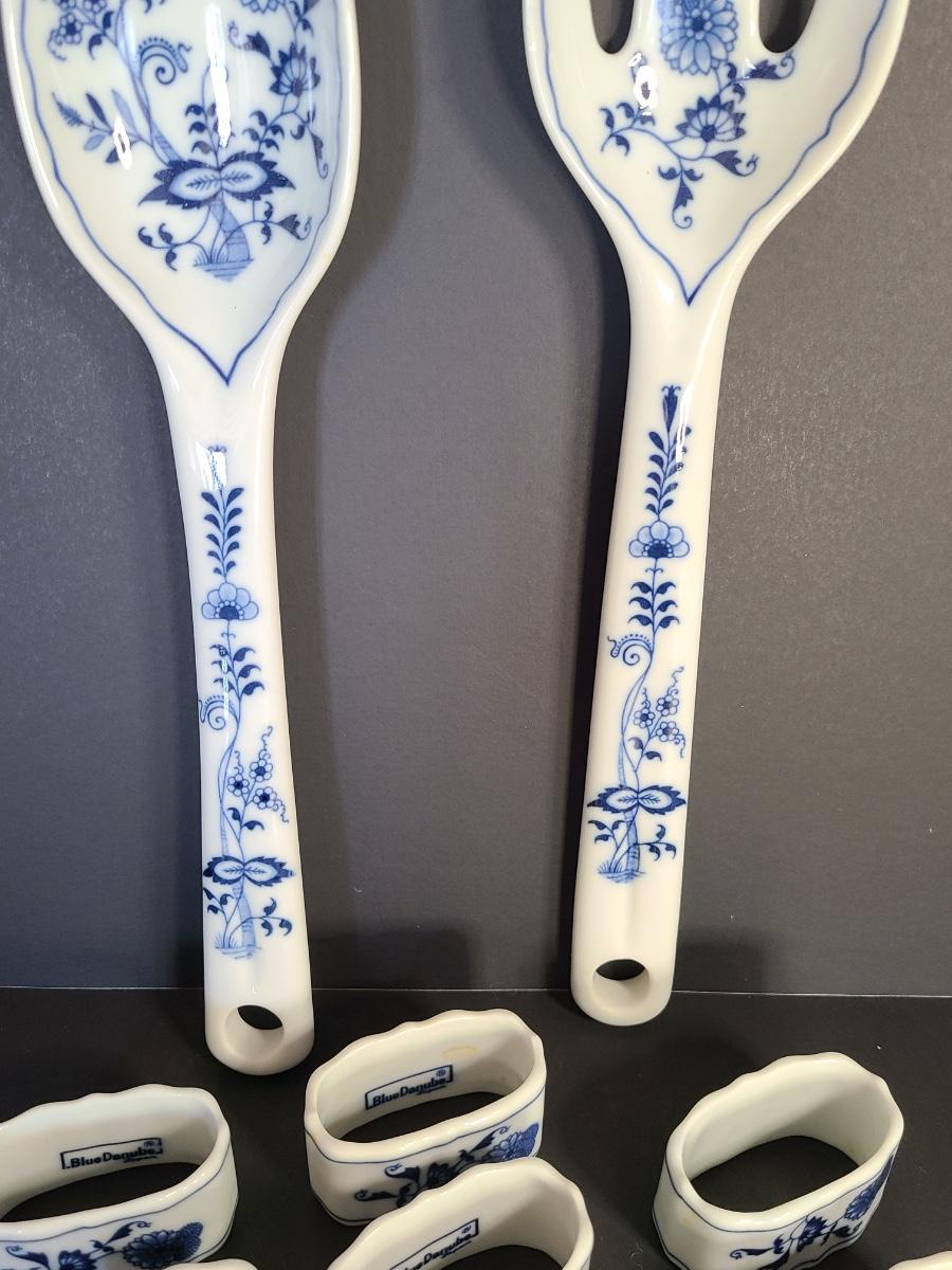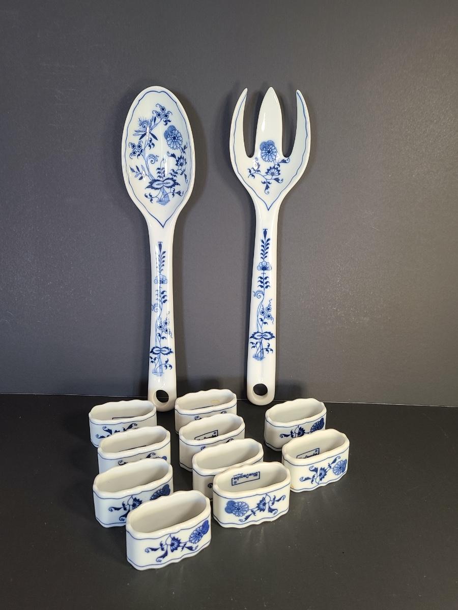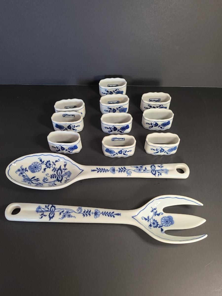 LOT 16S: Blue Danube Napkin Rings and Serving Fork/Spoon