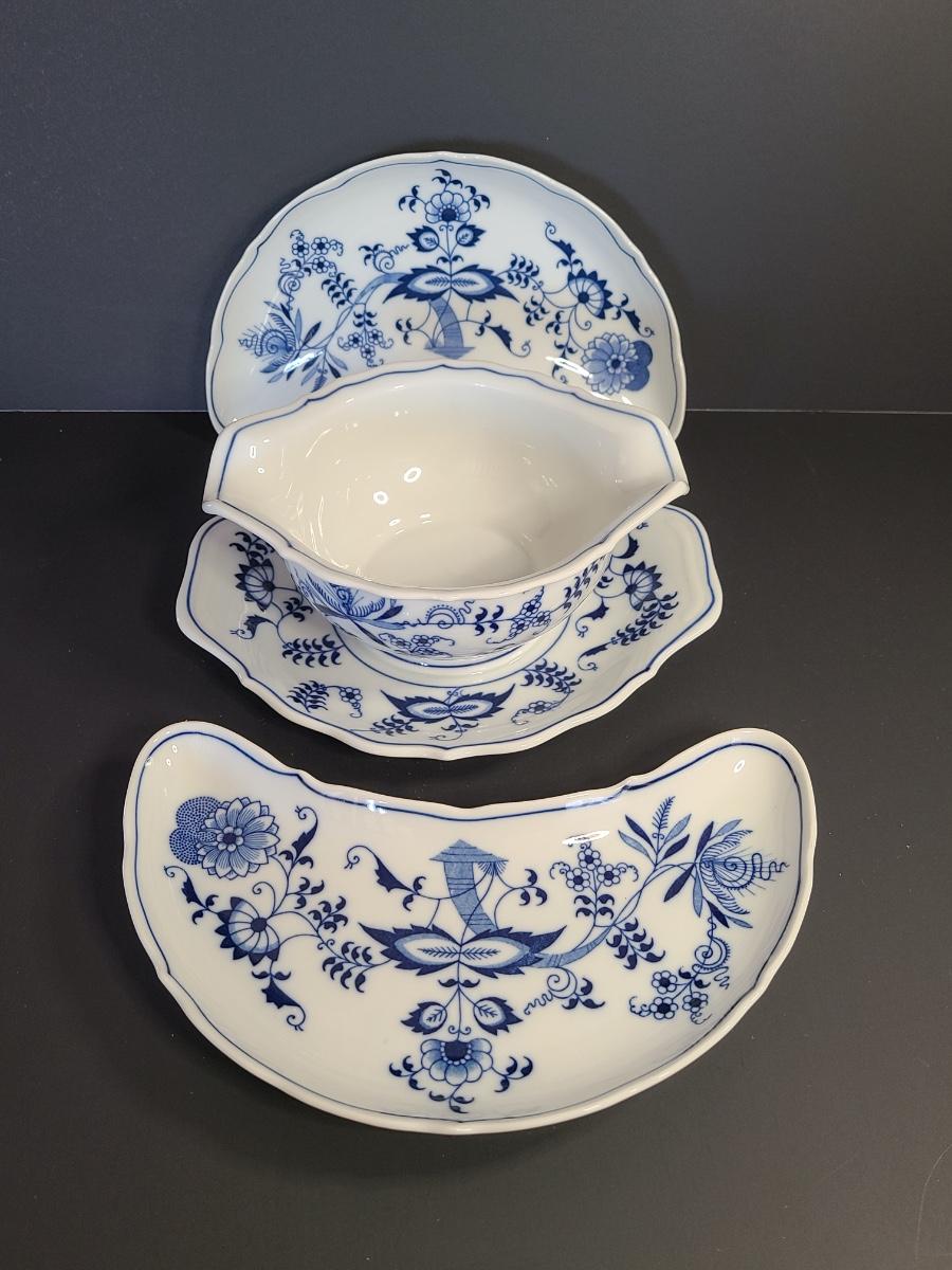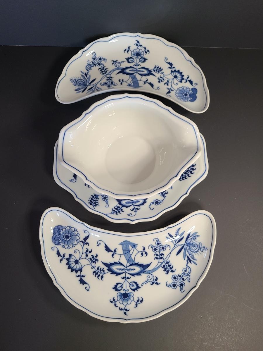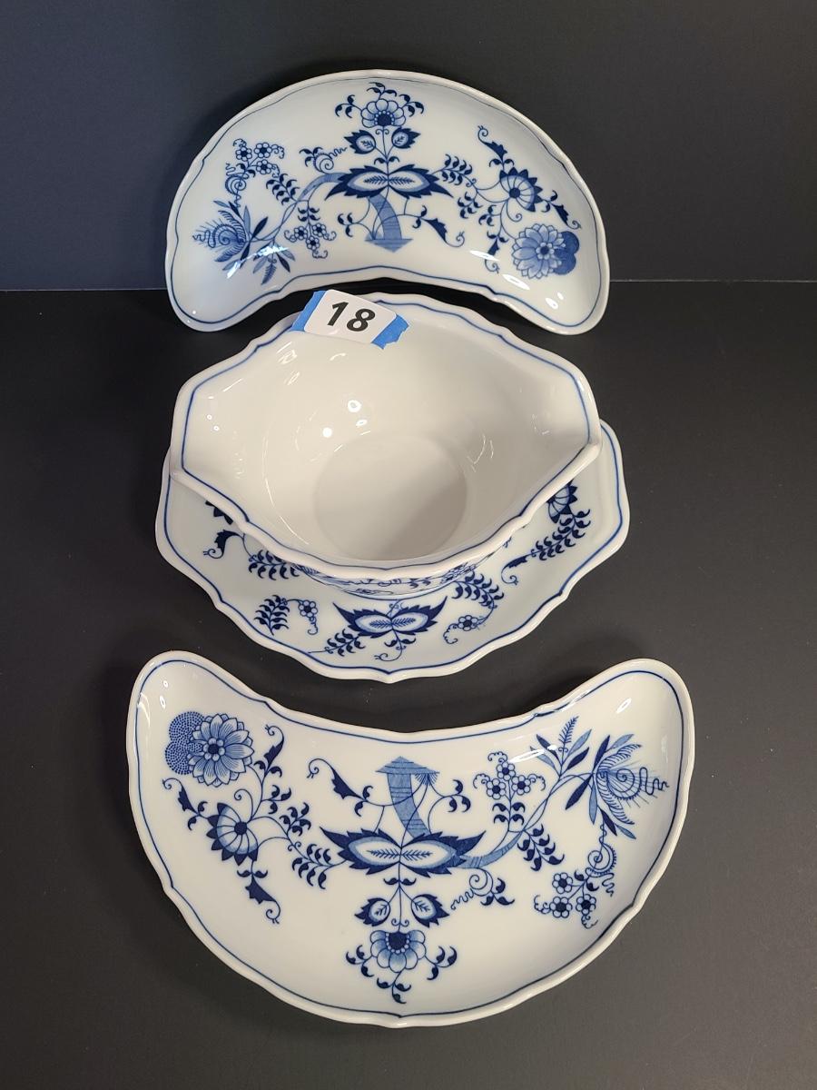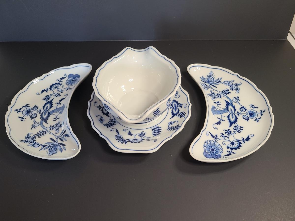 LOT 18S: Blue Danube, Blue Onion Gravy Boat and Crescent Trays