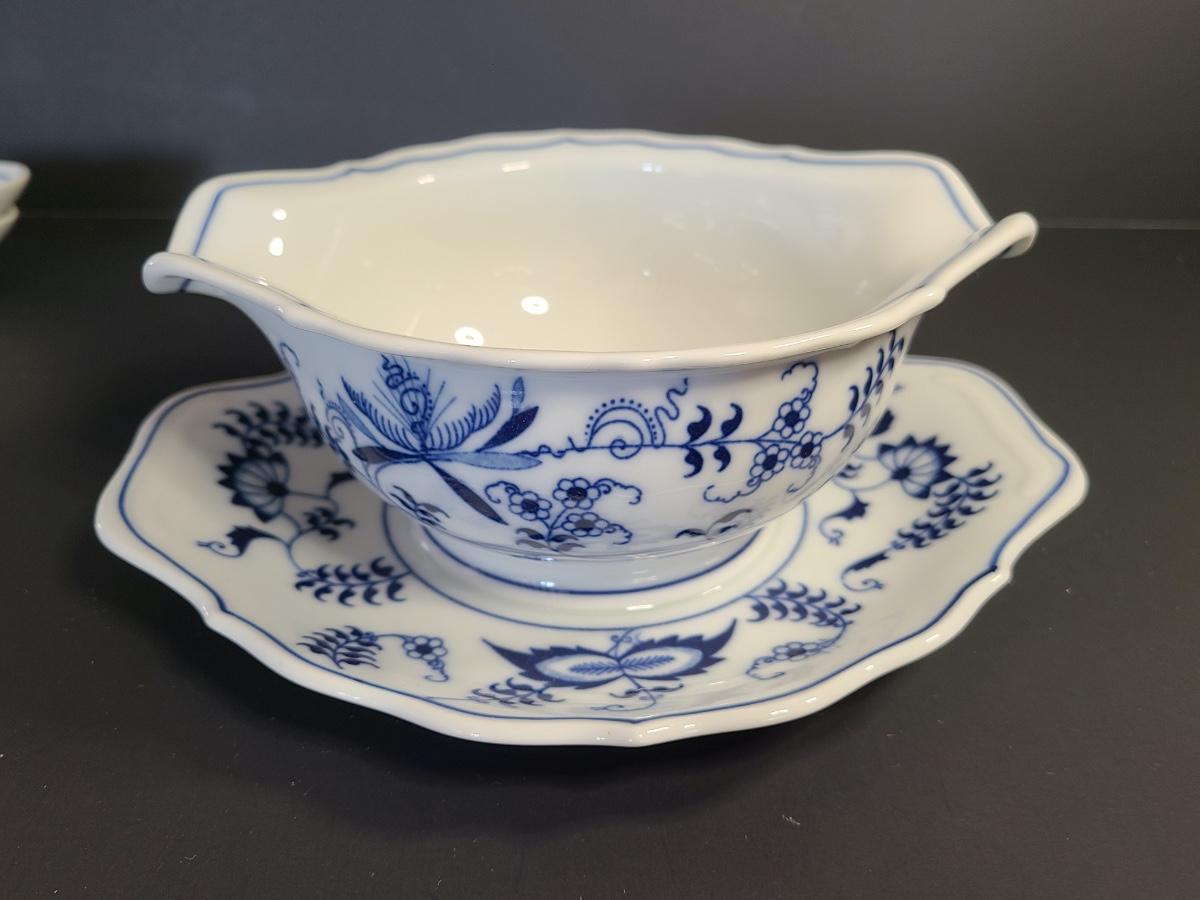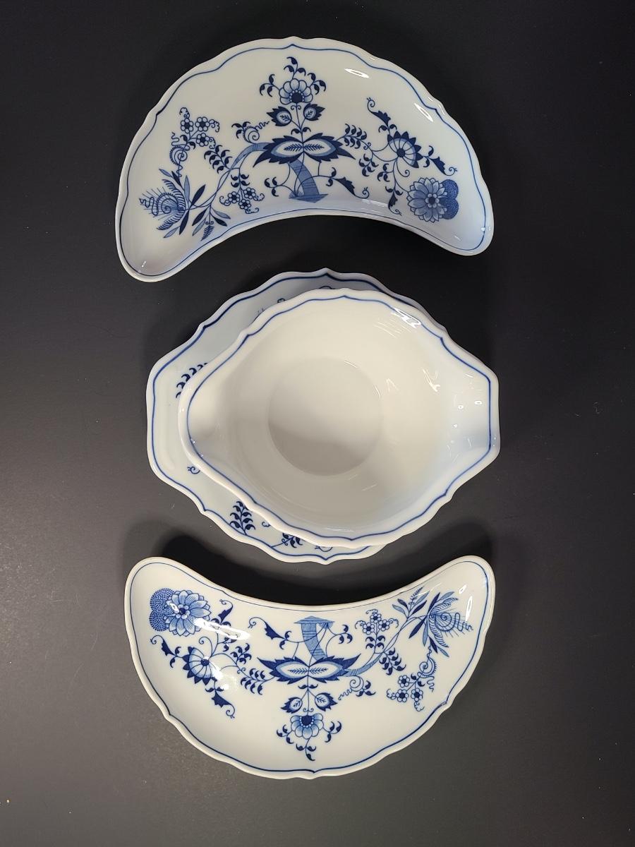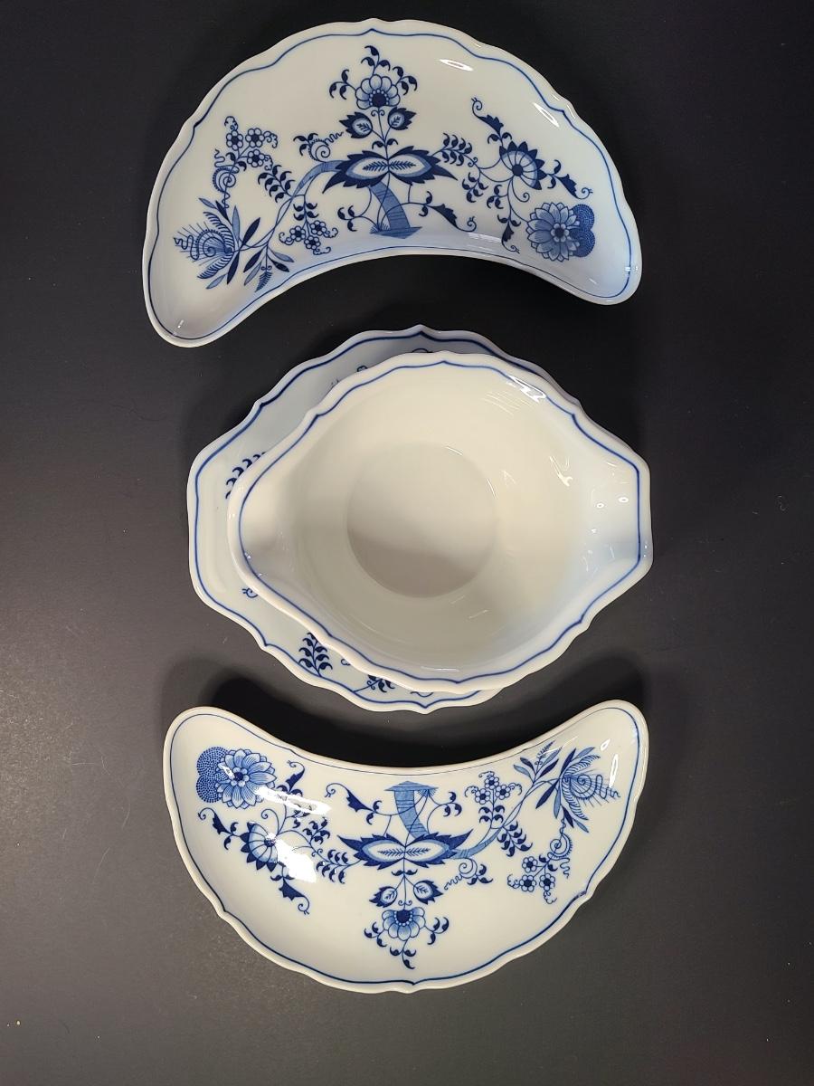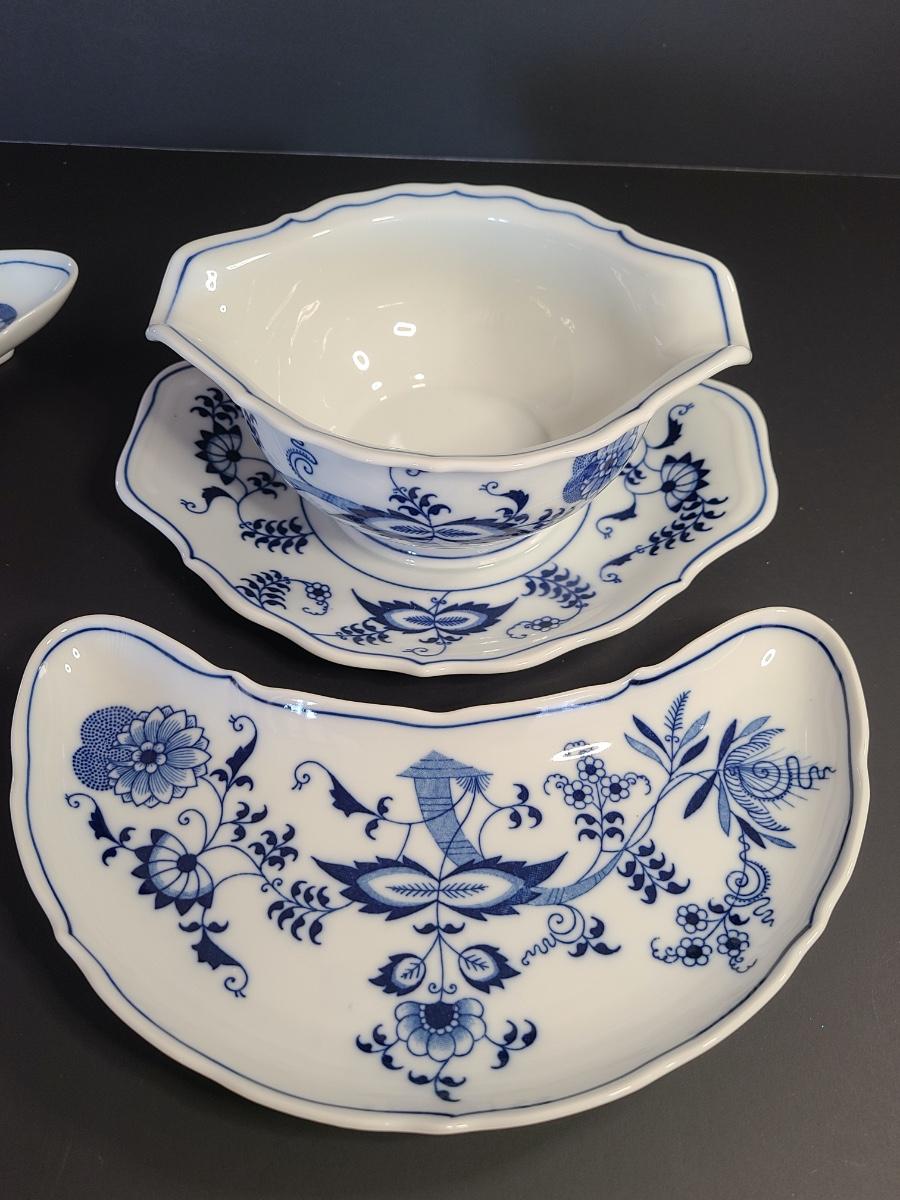 LOT 18S: Blue Danube, Blue Onion Gravy Boat and Crescent Trays