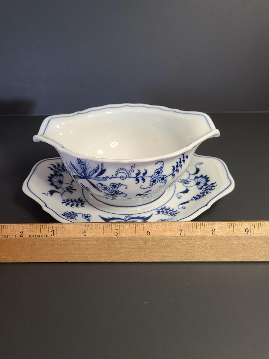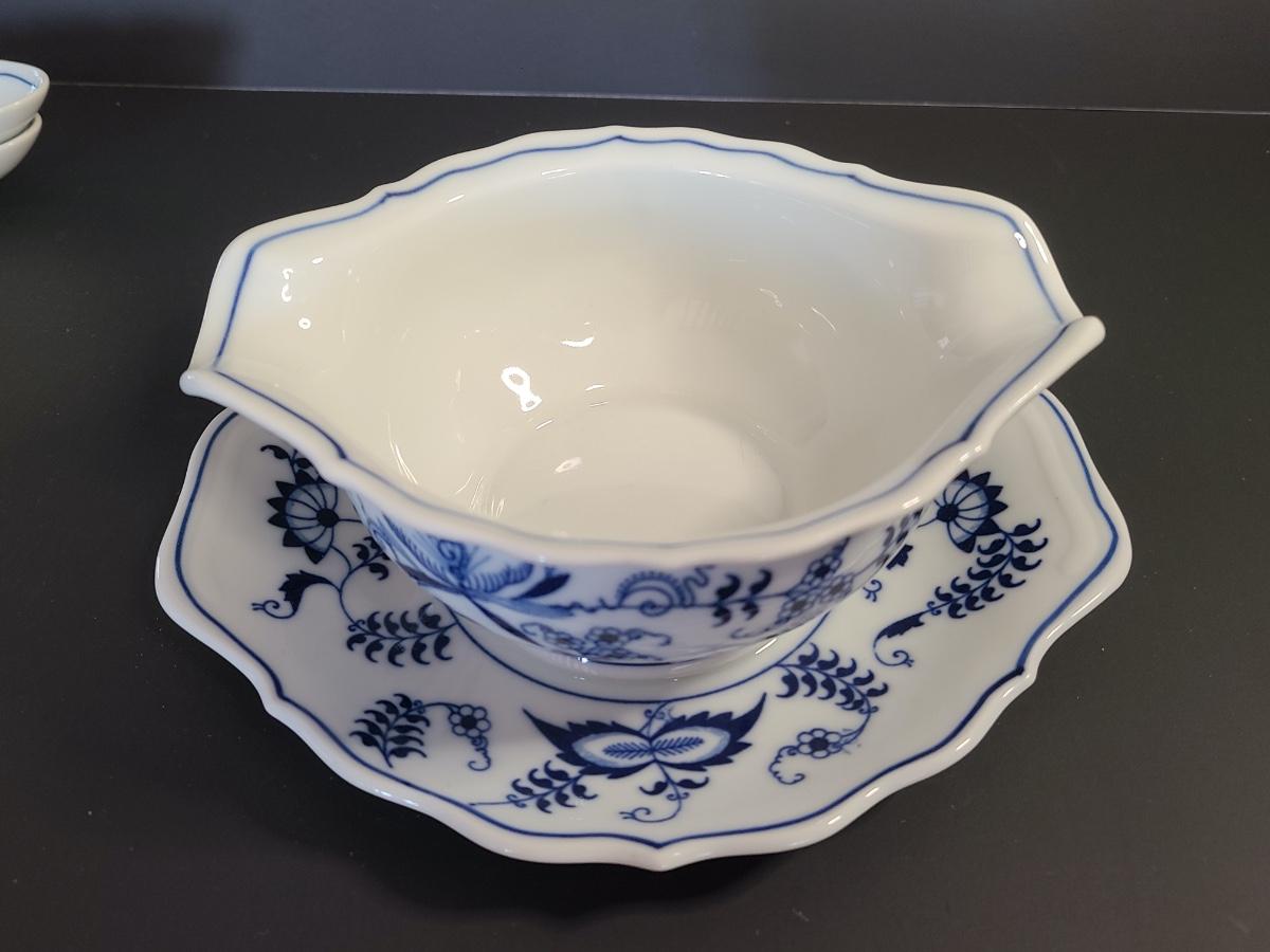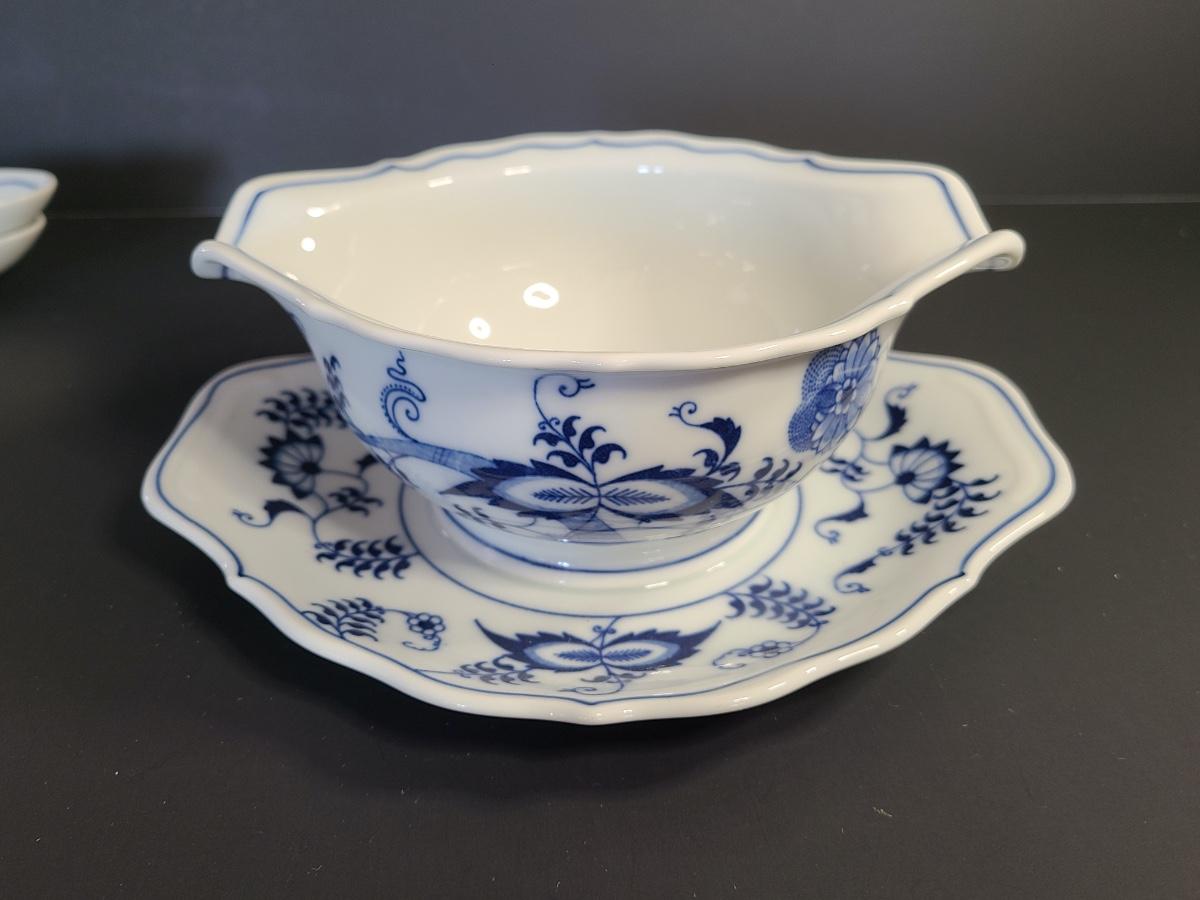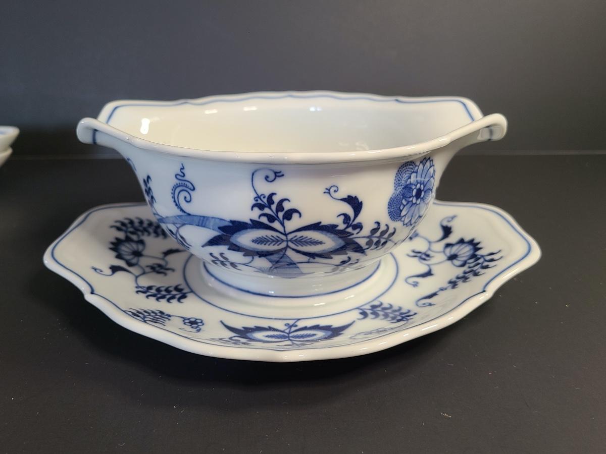 LOT 18S: Blue Danube, Blue Onion Gravy Boat and Crescent Trays